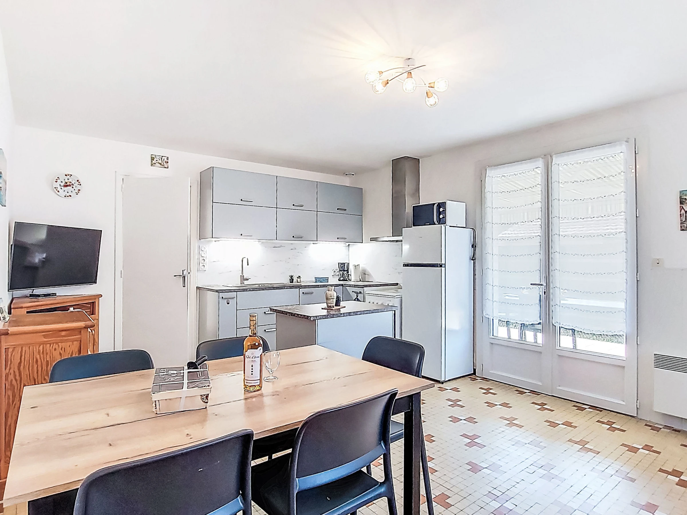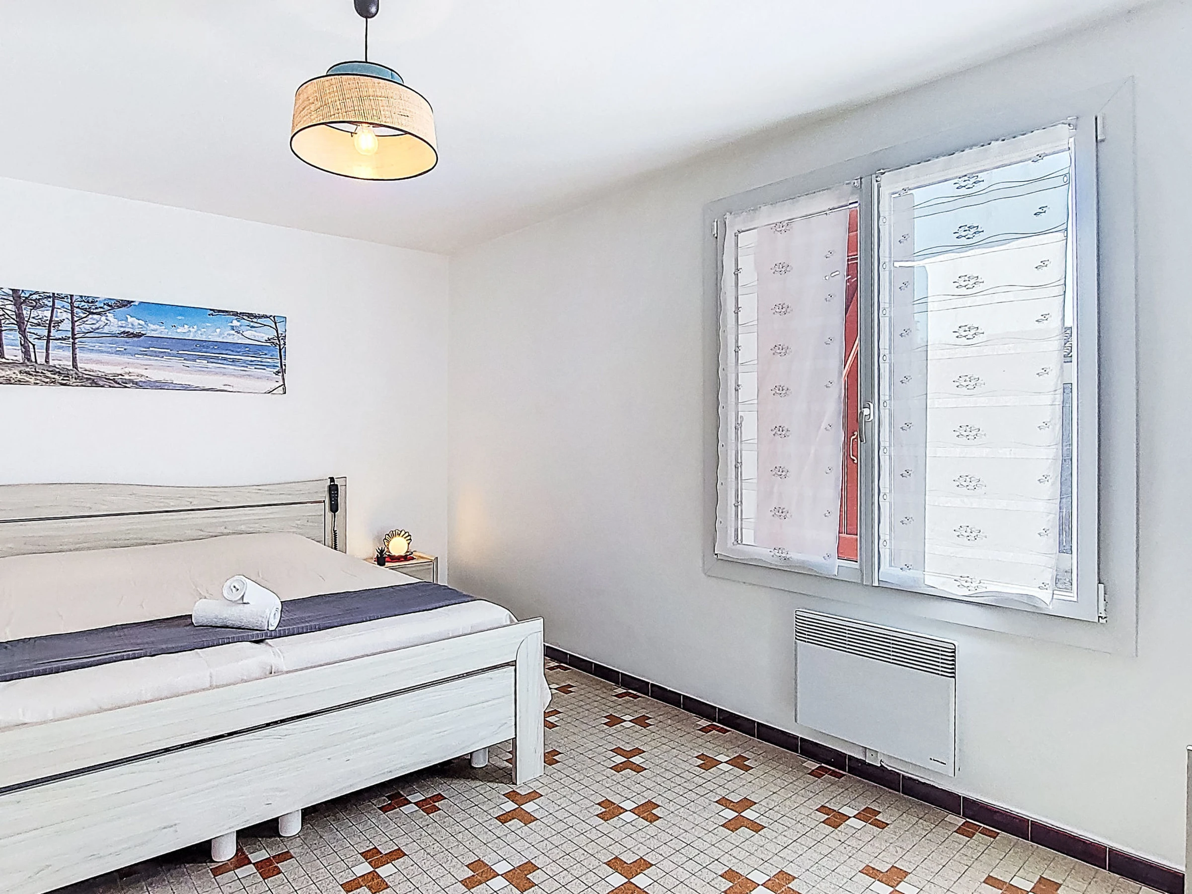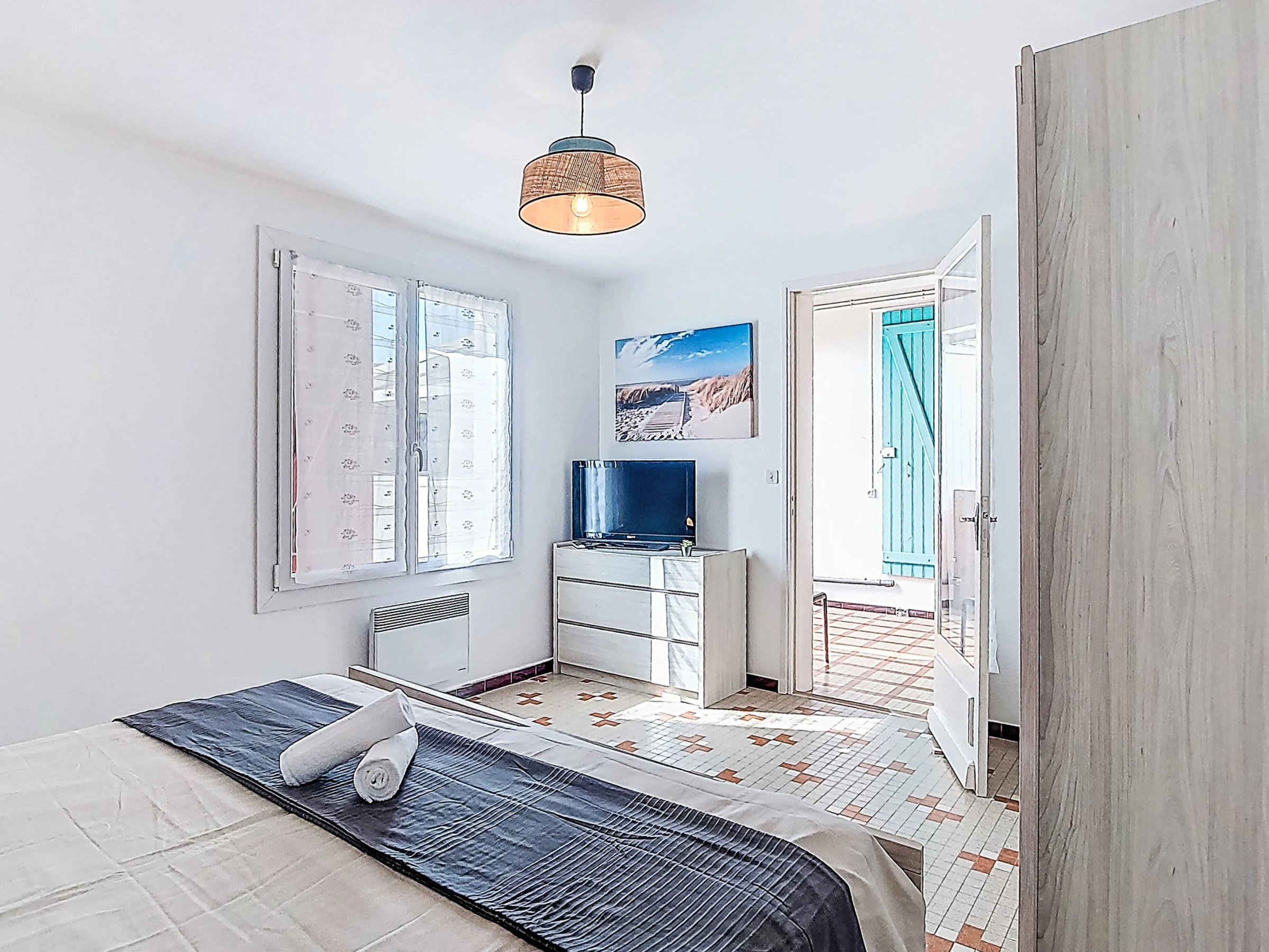 Maison 2 pièces 35 m2. Aménagement simple: séjour/salle à manger avec TV (écran plat). Sortie sur le jardin, sur la terrasse. 1 chambre avec 1 grand-lit (180 cm, longueur 200 cm). Coin cuisine (4 plaques de cuisson, four, grille-pain, bouilloire électrique, micro-ondes, cafetière électrique). Salle de bains, WC séparé. Chauffage électrique. Terrasse, jardin. Meubles de terrasse, barbecue, chaises longues. A disposition: lave-linge, sèche-cheveux. Internet (Connexion WIFI, en sus). Place de parking (1 Voiture). Veuillez noter: maison non-fumeur. Détecteur de fumée. Annonce d'un particulier (art 155, IV du CGI). [hidden]