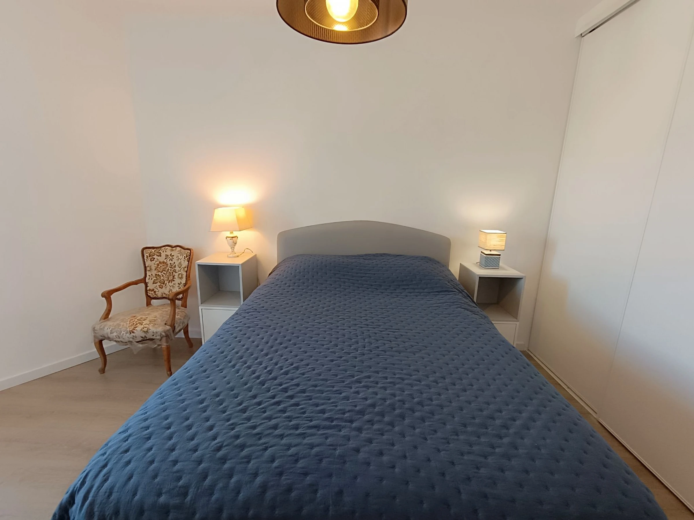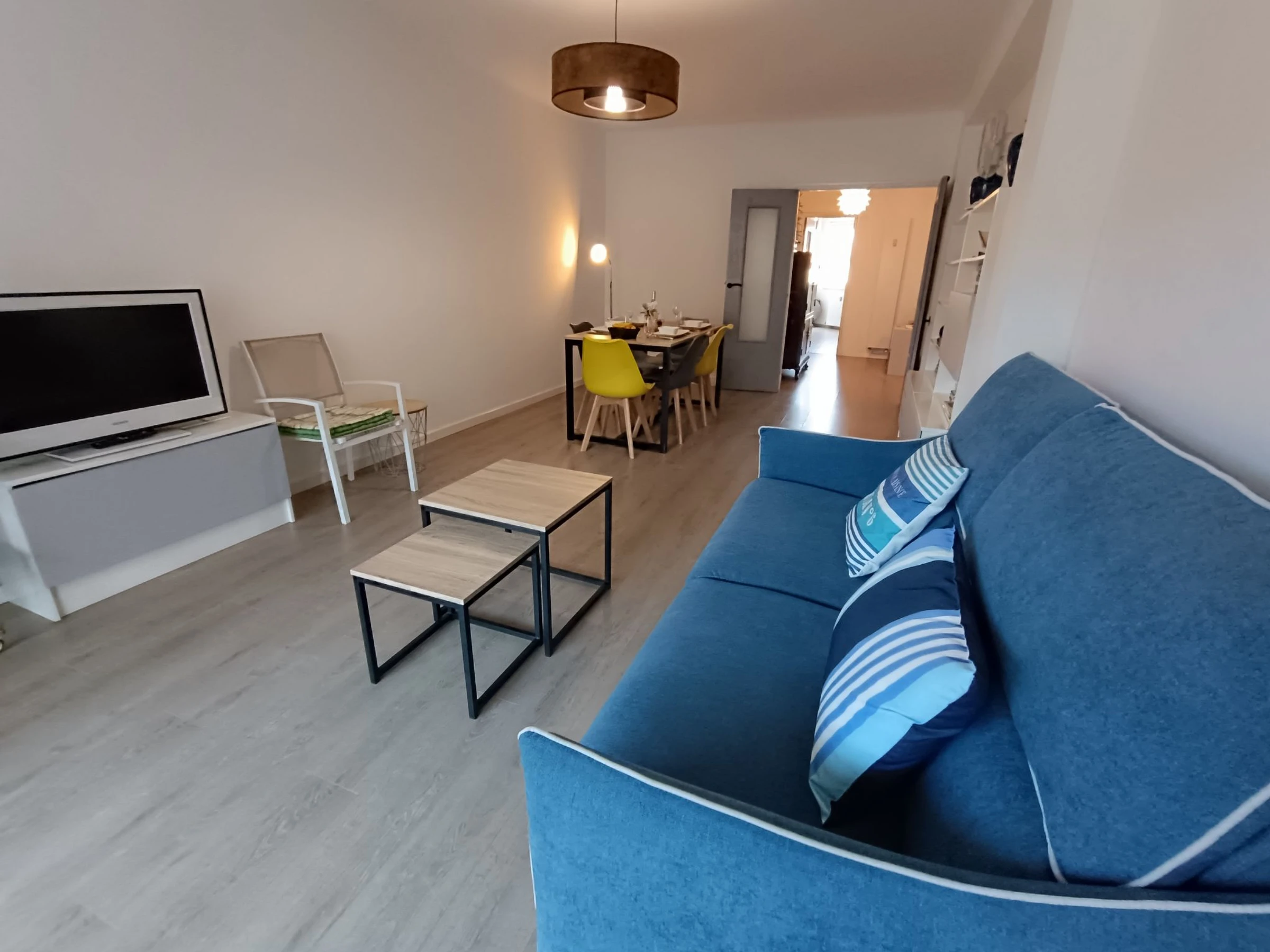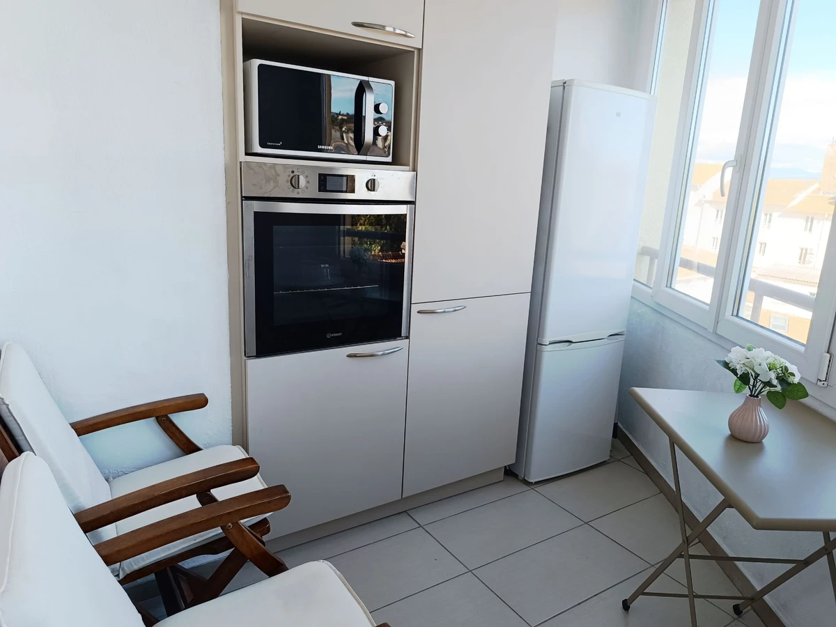 Apt 3 pièces 85 m2 au 4ème étage. Rénové en 2023: séjour/salle à manger avec TV et écran plat. Sortie sur la loggia. 1 chambre avec 1 grand-lit (1 x 140 cm, longueur 200 cm), TV, écran plat, chauffage électrique et ventilateur. 1 chambre avec 1 lit (160 cm, longueur 200 cm), TV, écran plat, chauffage électrique et ventilateur. Grande cuisine (four, lave-vaisselle, 4 plaques à induction, grille-pain, bouilloire électrique, micro-ondes, congélateur, cafetière électrique, Capsules pour machine à café (Senseo) (NON INCLUSES)). Douche, WC séparé. Chauffage électrique. Mobilier de balcon, loggia. Vue sur la ville. A disposition: lave-linge. Internet (Connexion WIFI, gratuit). Garage, largeur 245 cm. Veuillez noter: logement non-fumeur. TV seulement FR. Détecteur de fumée. Annonce d'un particulier (art 155, IV du CGI).