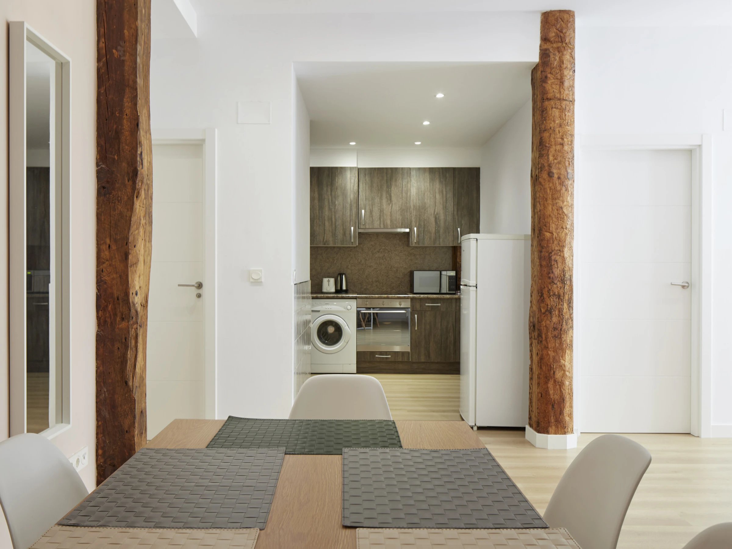 La cuisine est entièrement équipée avec tous les appareils électroménagers et ustensiles nécessaires pour la cuisine et en ce qui concerne les chambres, elles sont livrées avec des draps et des serviettes, déjà inclus dans le prix.