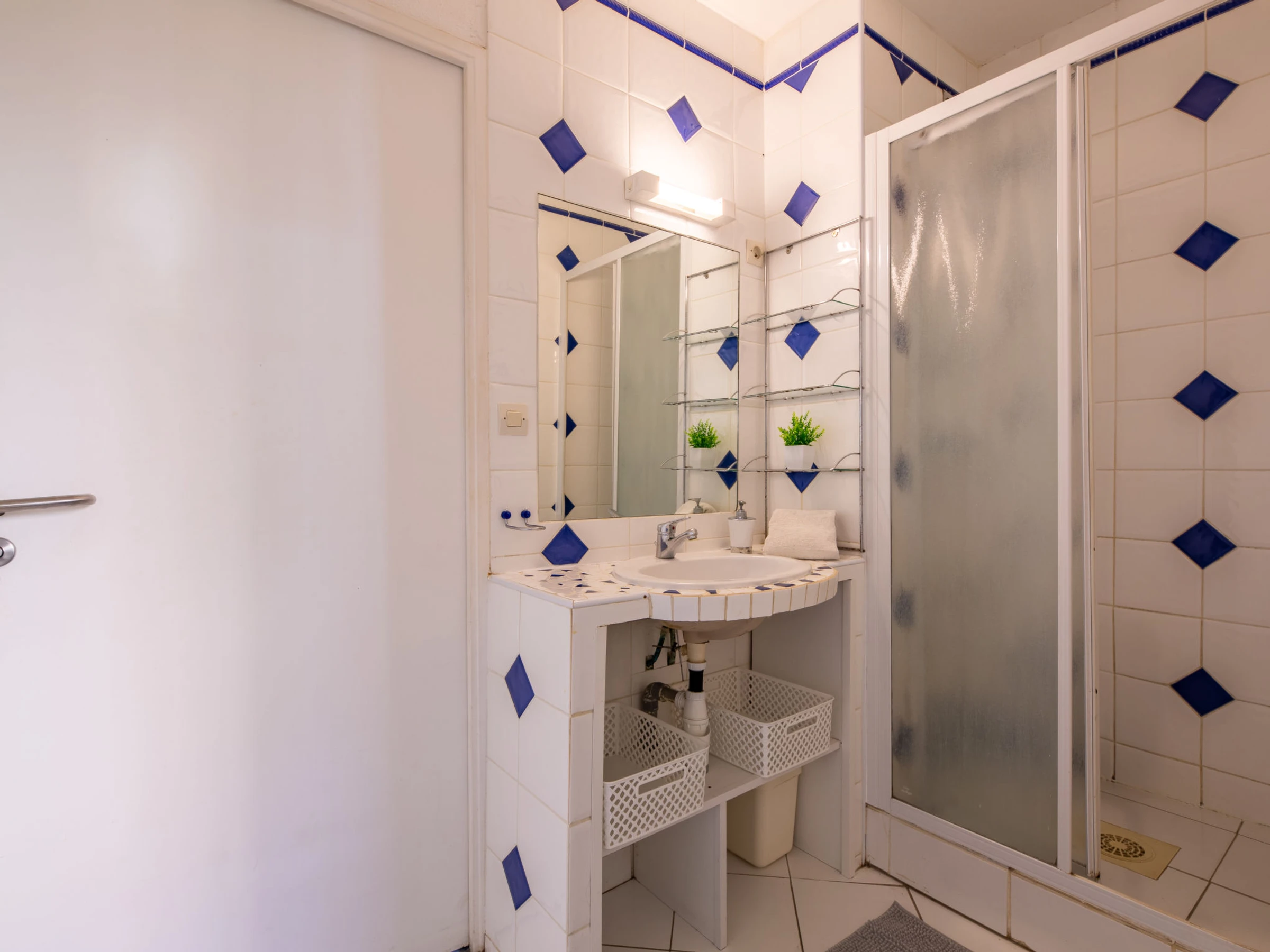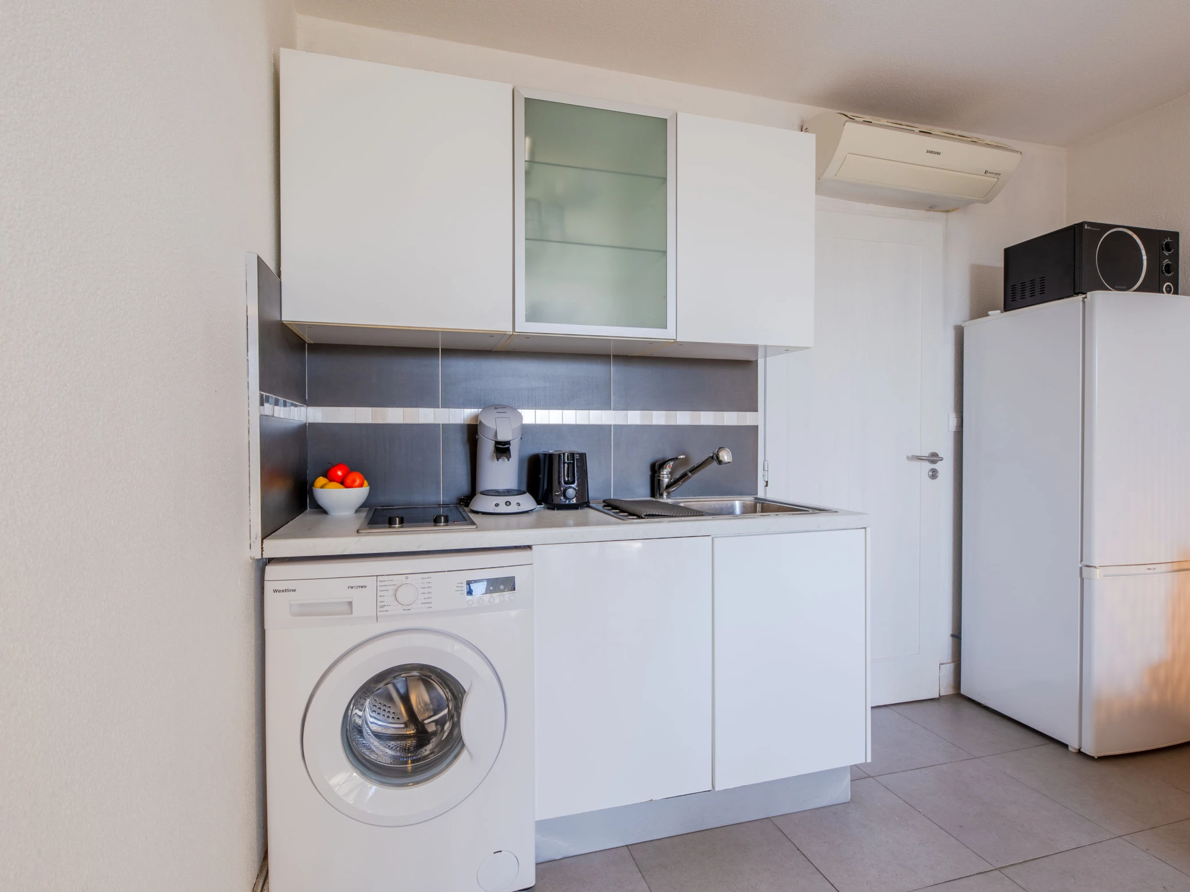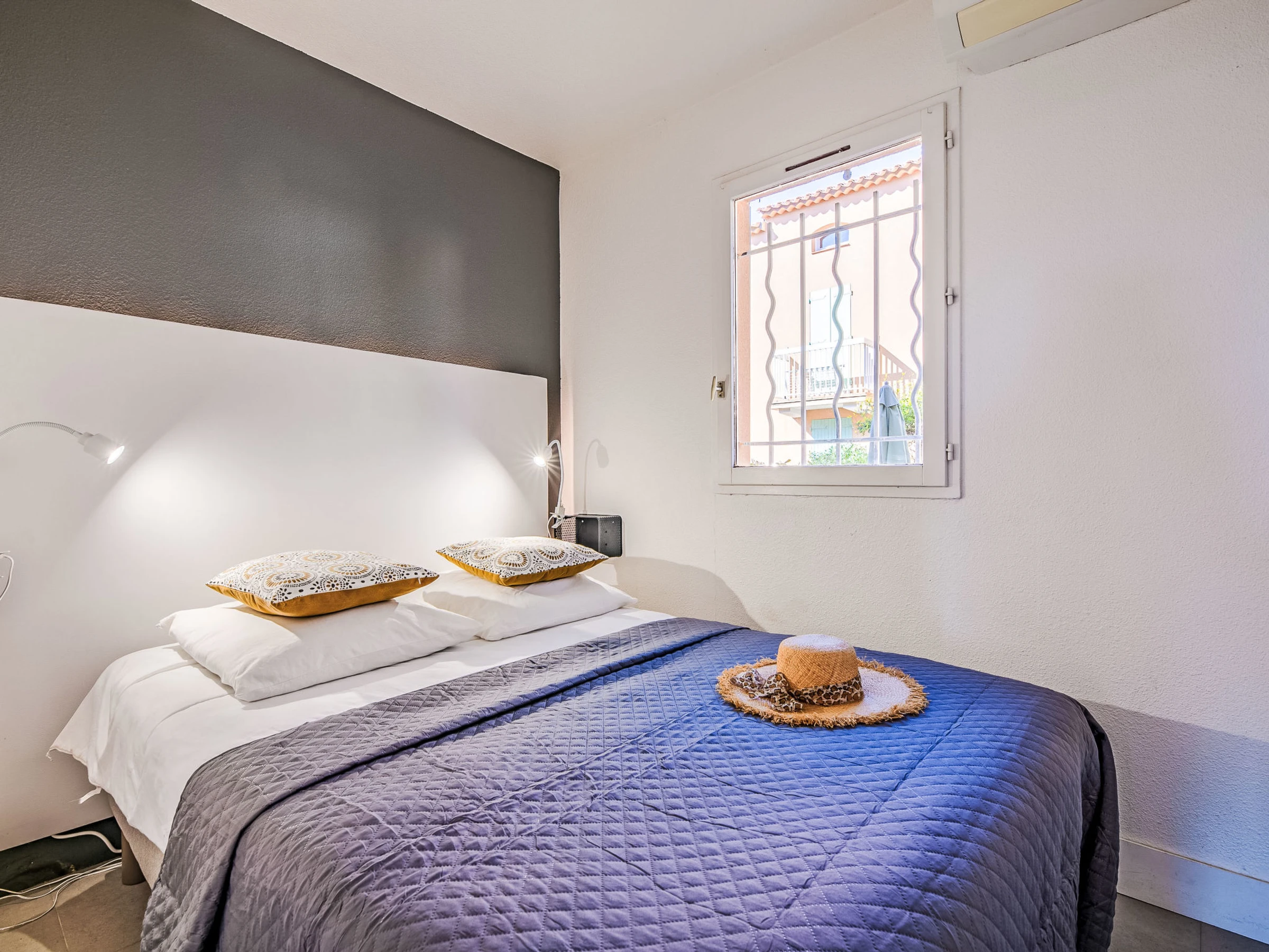 Apt 2 pièces 27 m2, au rez-de-chaussée. Aménagement simple: séjour/salle à manger avec 1 divan-lit double (160 cm, longueur 200 cm), TV (écran plat). Sortie sur la terrasse. 1 petite chambre avec 1 lit double (140 cm, longueur 190 cm). Coin cuisine (2 plaques vitrocéramiques, congélateur, combiné micro-ondes). Salle de bains, WC séparé. Chauffage électrique, air-conditionné. Terrasse 16 m2, situation sud-ouest. Vue éloignée sur la mer. A disposition: lave-linge. Internet (Connexion WIFI, en sus). Place de parking. Veuillez noter: logement non-fumeur. Maximum 1 animal/ chien autorisé. Détecteur de fumée. Annonce d'un particulier (art 155, IV du CGI). [hidden]