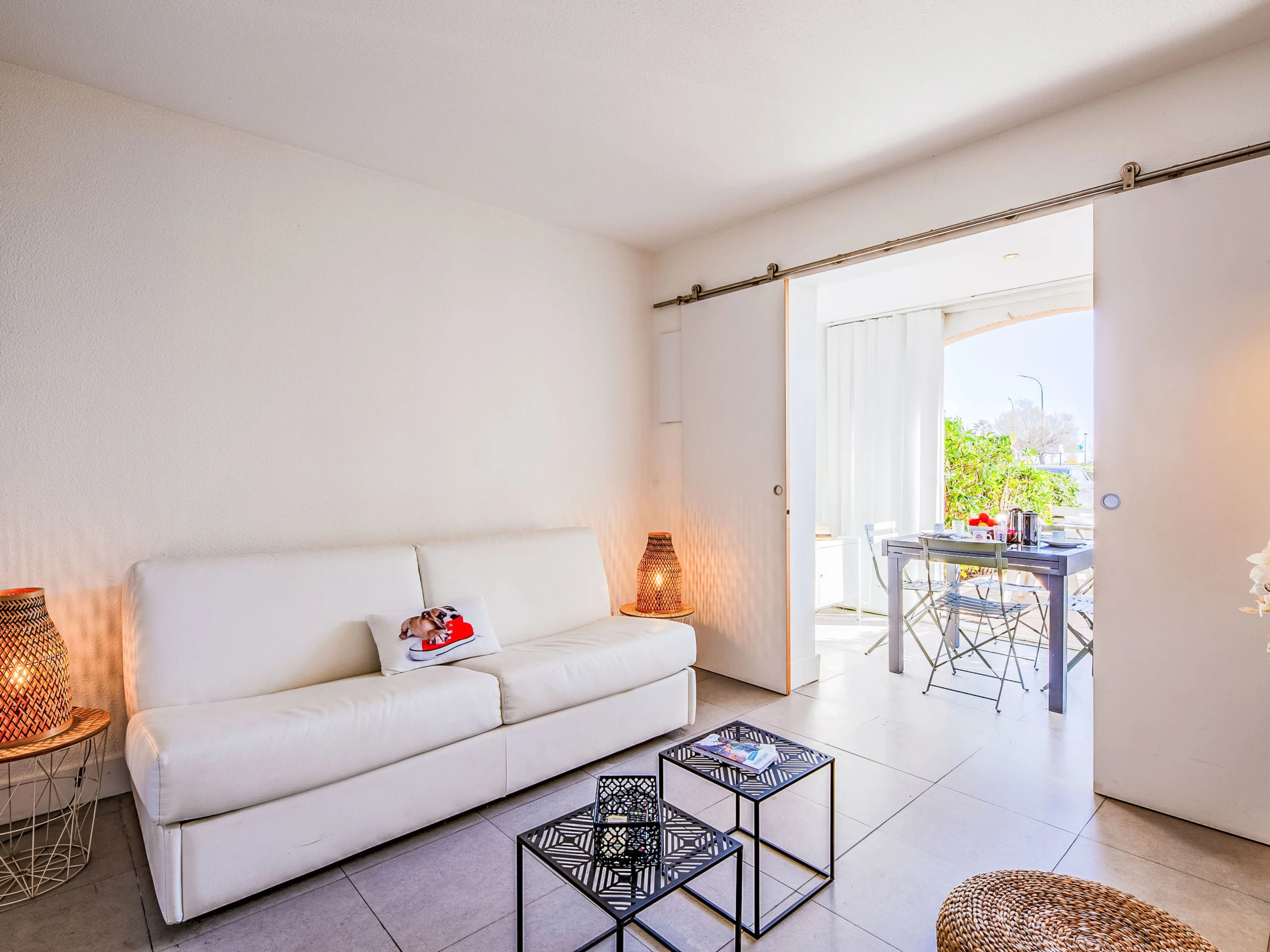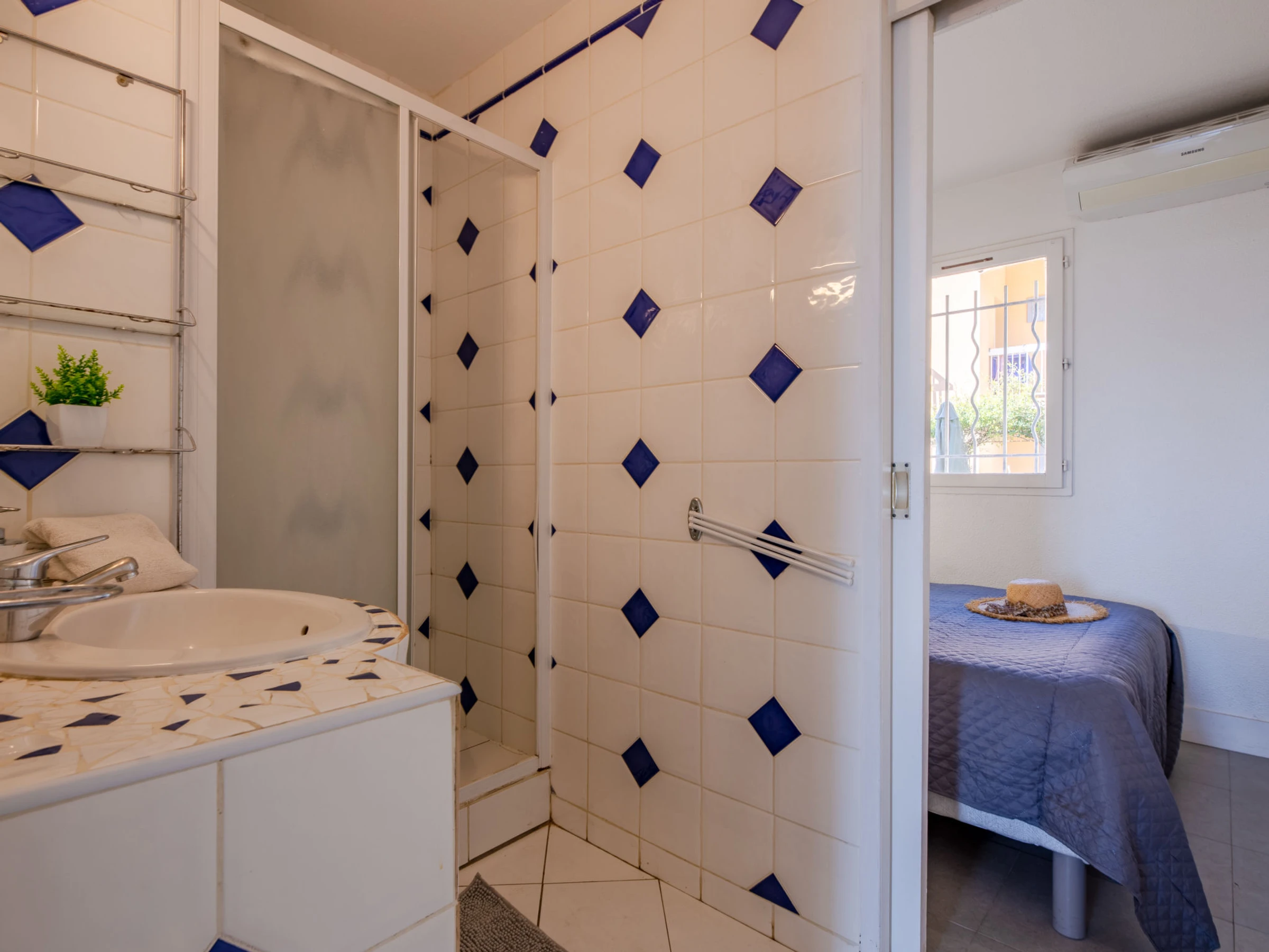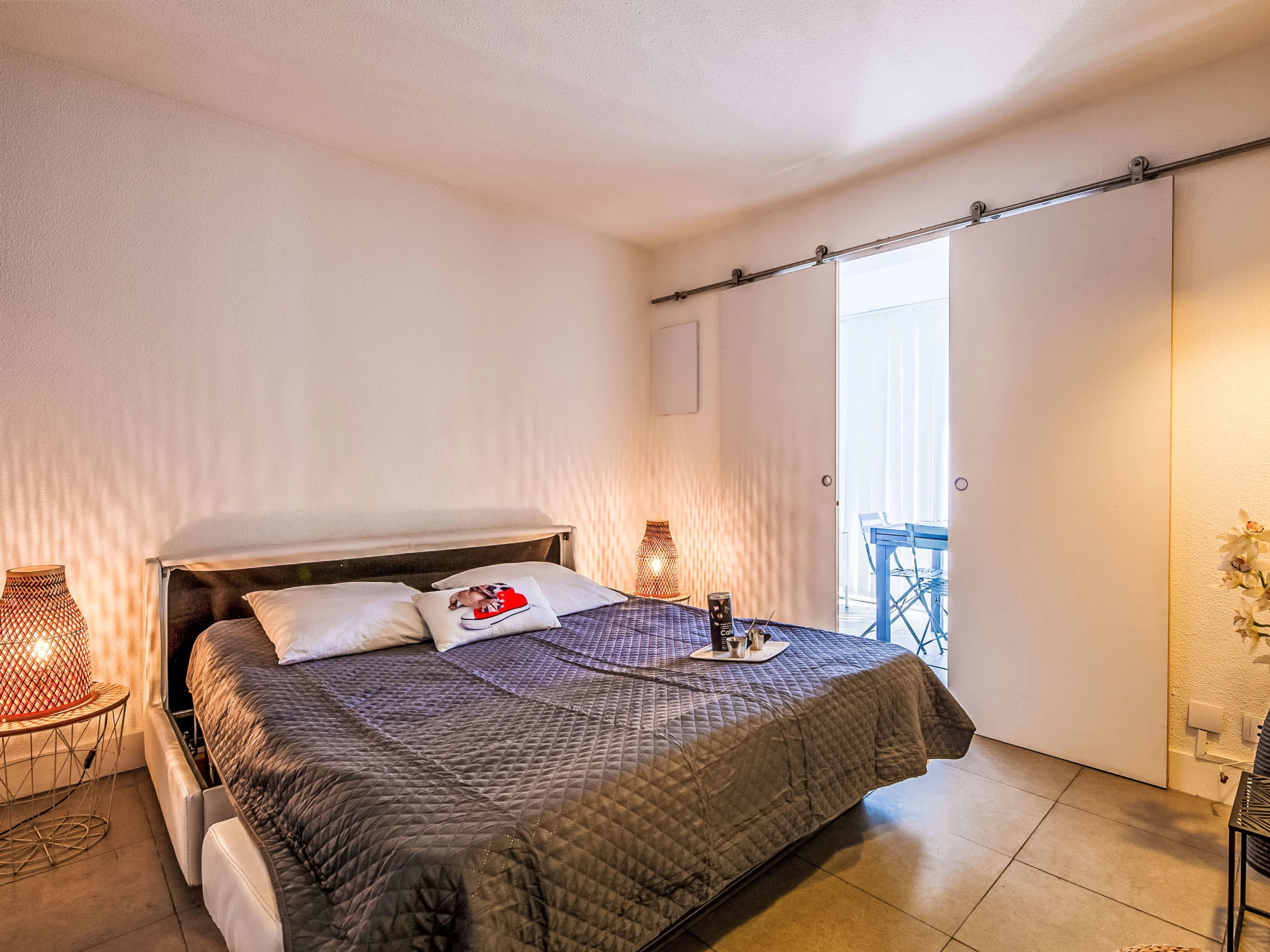 Apt 2 pièces 27 m2, au rez-de-chaussée. Aménagement simple: séjour/salle à manger avec 1 divan-lit double (160 cm, longueur 200 cm), TV (écran plat). Sortie sur la terrasse. 1 petite chambre avec 1 lit double (140 cm, longueur 190 cm). Coin cuisine (2 plaques vitrocéramiques, congélateur, combiné micro-ondes). Salle de bains, WC séparé. Chauffage électrique, air-conditionné. Terrasse 16 m2, situation sud-ouest. Vue éloignée sur la mer. A disposition: lave-linge. Internet (Connexion WIFI, en sus). Place de parking. Veuillez noter: logement non-fumeur. Maximum 1 animal/ chien autorisé. Détecteur de fumée. Annonce d'un particulier (art 155, IV du CGI). [hidden]