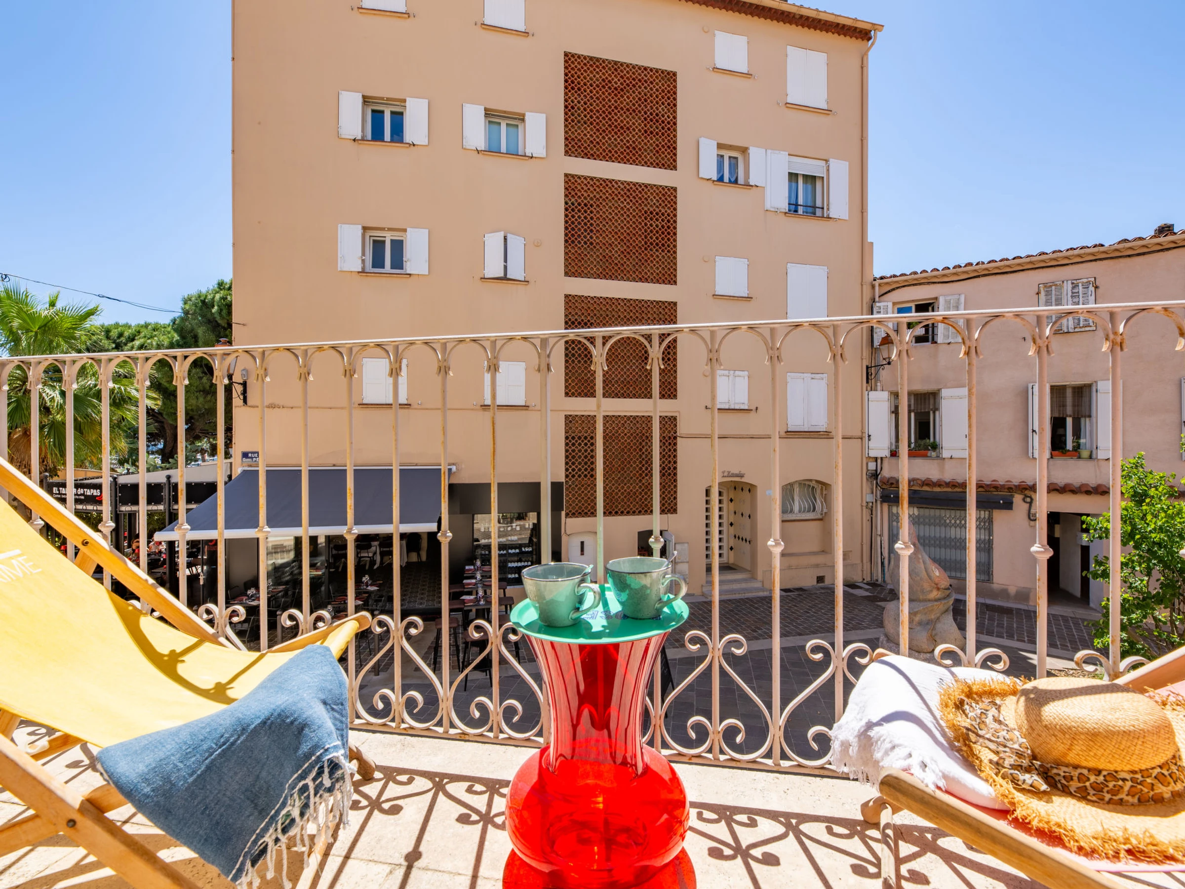 Petit immeuble "Les Palmiers", de 2 étages. 2 appartements dans la résidence. Au centre de Sainte-Maxime, situation animée, au cœur de la ville, à 150 m de la mer, à 150 m de la plage. Parking public. Magasins 30 m, magasin d'alimentation 200 m, restaurant, boulangerie 20 m, arrêt de bus "La Tour Carree" 100 m, plage de sable "Plage du centre ville" 350 m, centre de plongée 150 m, centre thermal "Thalasso Spa des Issambres" 6 km. Port plaisance 100 m, terrain de golf (18 trous) 5 km, tennis 1.5 km. Attractions à proximité: Aqualand Water park 5 km, Azur Park attractions 16 km, Saint-Tropez/Ramatuelle 16 km, Port-Grimaud 12 km, Gorges du Verdon 95 km, Navette / shuttle boat St-Tropez 15min 200 m. Région de randonnées: Massif des Maures 5 km, Massif de l'Esterel 38 km. Veuillez noter: sans ascenseur. La remise des clés a lieu à l’agence de Sainte-Maxime.