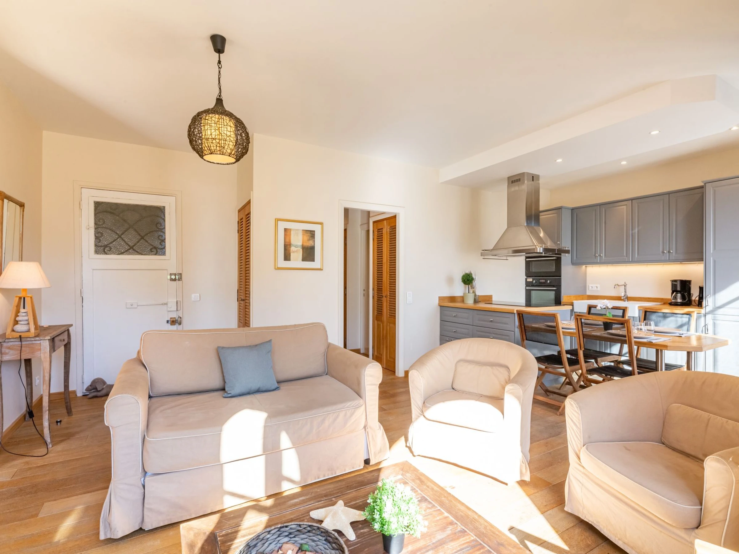 Apt 3 pièces 70 m2 au 2ème étage, situation sud. Clair, aménagement agréable et de bon goût: séjour/salle à manger avec TV (écran plat). 1 chambre avec 1 grand-lit ([hidden] cm, longueur [hidden] cm). 1 chambre avec 1 grand-lit (2 x 80 cm, longueur [hidden] cm). Cuisine ouverte (4 plaques de cuisson, four, lave-vaisselle, grille-pain, bouilloire électrique, micro-ondes, congélateur, cafetière électrique, ilot de cuisine). Douche/WC. Chauffage électrique, air-conditionné. Belle vue sur la mer. A disposition: lave-linge, sèche-linge. Internet (Connexion WIFI, gratuit). Veuillez noter: logement non-fumeur. Détecteur de fumée, sans ascenseur. [hidden]