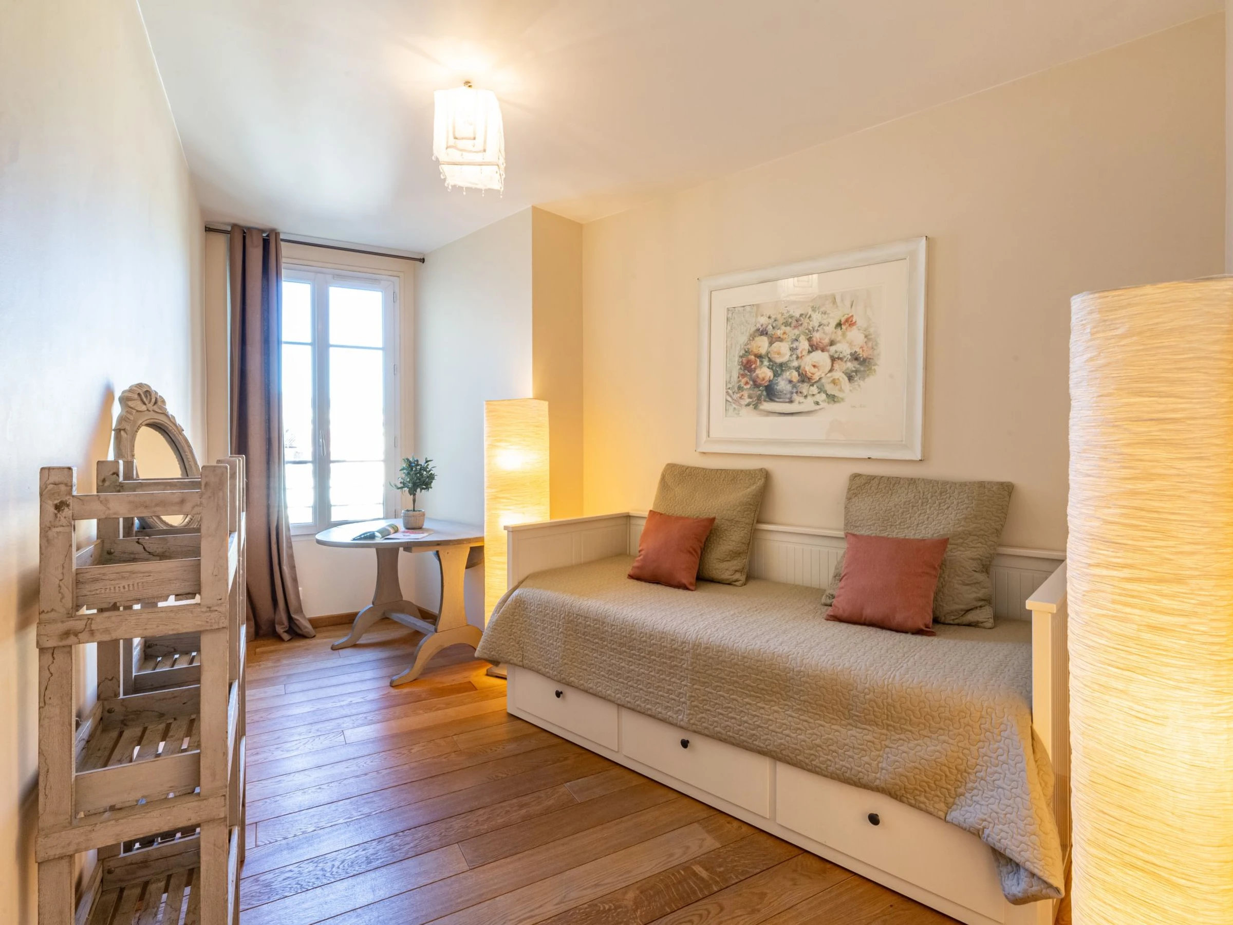 Dans une résidence rénovée," art déco", résidence historique "Les Sirènes", de 3 étages. Au centre de Sainte Maxime, à 50 m de la mer, à 20 m de la plage, route à traverser. Parking public en sus. Magasins, supermarché 50 m, centre commercial [hidden] m, restaurant 50 m, boulangerie [hidden] m, arrêt de bus 50 m, gare ferroviaire "Saint-Raphael TGV" 20 km, plage de sable 20 m, centre thermal "Thalasso Les Issambres" 7 km. Port plaisance [hidden] m, terrain de golf (18 trous) 5 km, tennis 1.5 km. Attractions à proximité: Aqualand waterpark 5 km, Azur Park attractions 16 km, Saint-Tropez/Ramatuelle 16 km, Port-Grimaud 12 km, Gorges du Verdon 95 km, Navette / shuttle boat St-Tropez 15min [hidden] m. Région de randonnées: Massif des Maures 5 km, Massif de l'Esterel 38 km. Veuillez noter: sans ascenseur. La remise des clés a lieu à l’agence de Saint-Maxime. Aéroport 70 km de la maison.