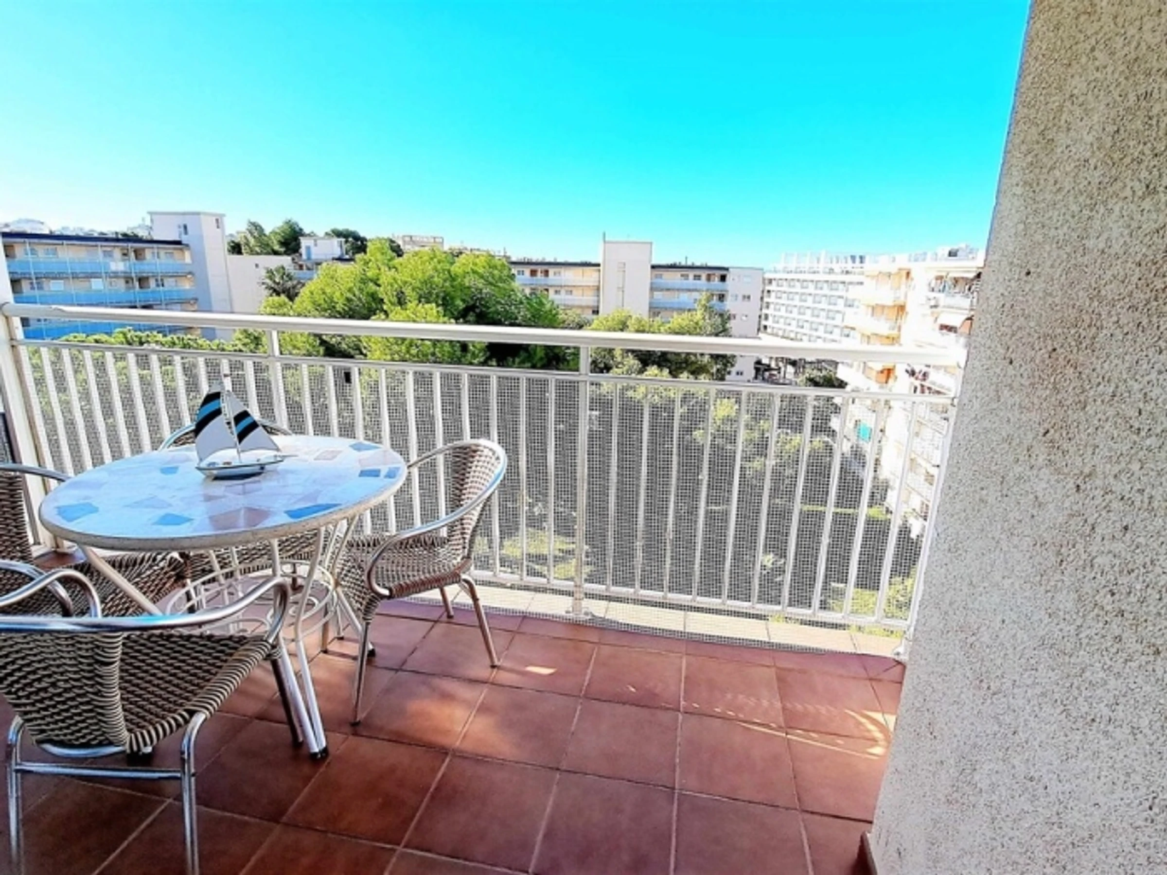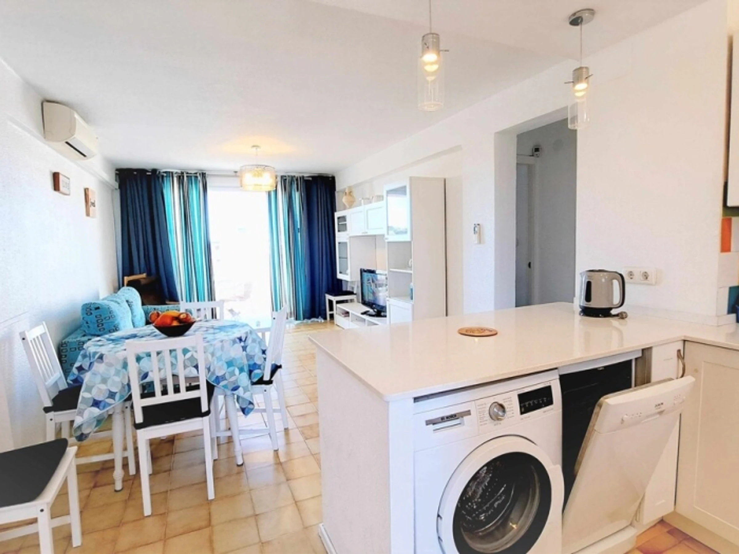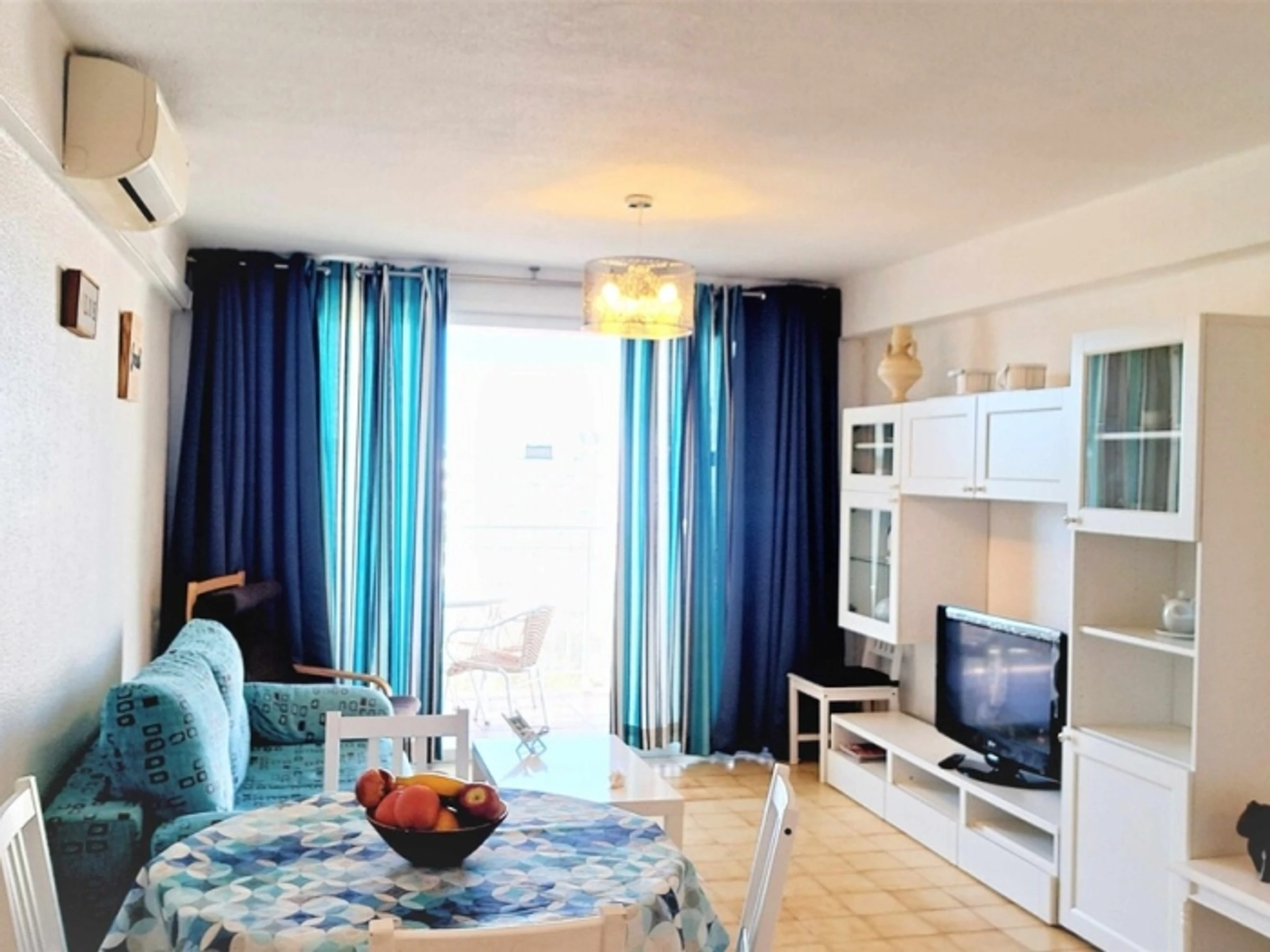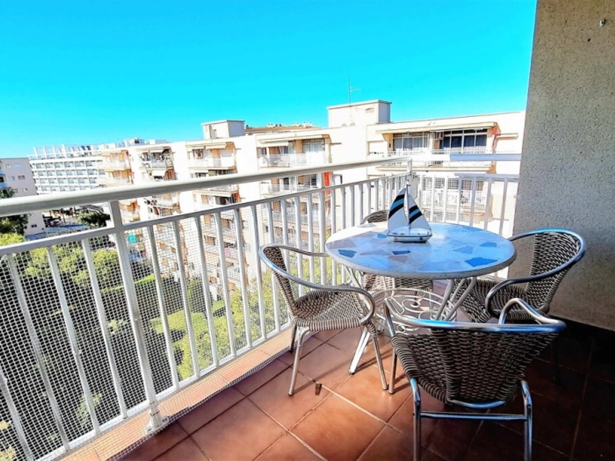 Appartement complet. 2 chambres doubles, séjour - cuisine ouverte (très bien équipée). Terrasse. Salle de bain. Climatisation. Wi-fi. Ascenseur. Piscines. Jardins. 400 mètres de la plage. Appartement confortable et moderne : 2 chambres doubles, avec placards. Grand séjour, climatisé, sortie sur la terrasse, exposée Est, avec vue dégagée (6ème étage). Cuisine américaine, très équipée (y compris lave-vaisselle). Salle de bain avec bac à douche. Espace communautaire avec jardins, piscines et aire de jeux pour enfants. Situé à 400 mètres de la plage et à 50 mètres de la rue commerçante piétonne (supermarché, restaurants, bars, etc.), zone avec transports en commun. Draps, serviettes et nettoyage final inclus dans le prix. Cuisine entièrement équipée : plaque vitrocéramique, four, micro-ondes, hotte aspirante, réfrigérateur + congélateur, lave-linge, [hidden] bébé sur demande : 10 € par jour.Animal domestique sur demande : 40 € (pour tout le séjour).Taxe de séjour : 1,10 €/nuit/personne de plus de 16 ans (pendant les 7 premières nuits).Taxe de séjour : 1,10 €/nuit/personne de plus de 16 ans (pendant les 7 premières nuits).Taxe de séjour : 1,10 €/nuit/personne de plus de 16 ans (pendant les 7 premières nuits).Taxe de séjour : 1,10 €/nuit/personne de plus de 16 ans (pendant les 7 premières nuits).