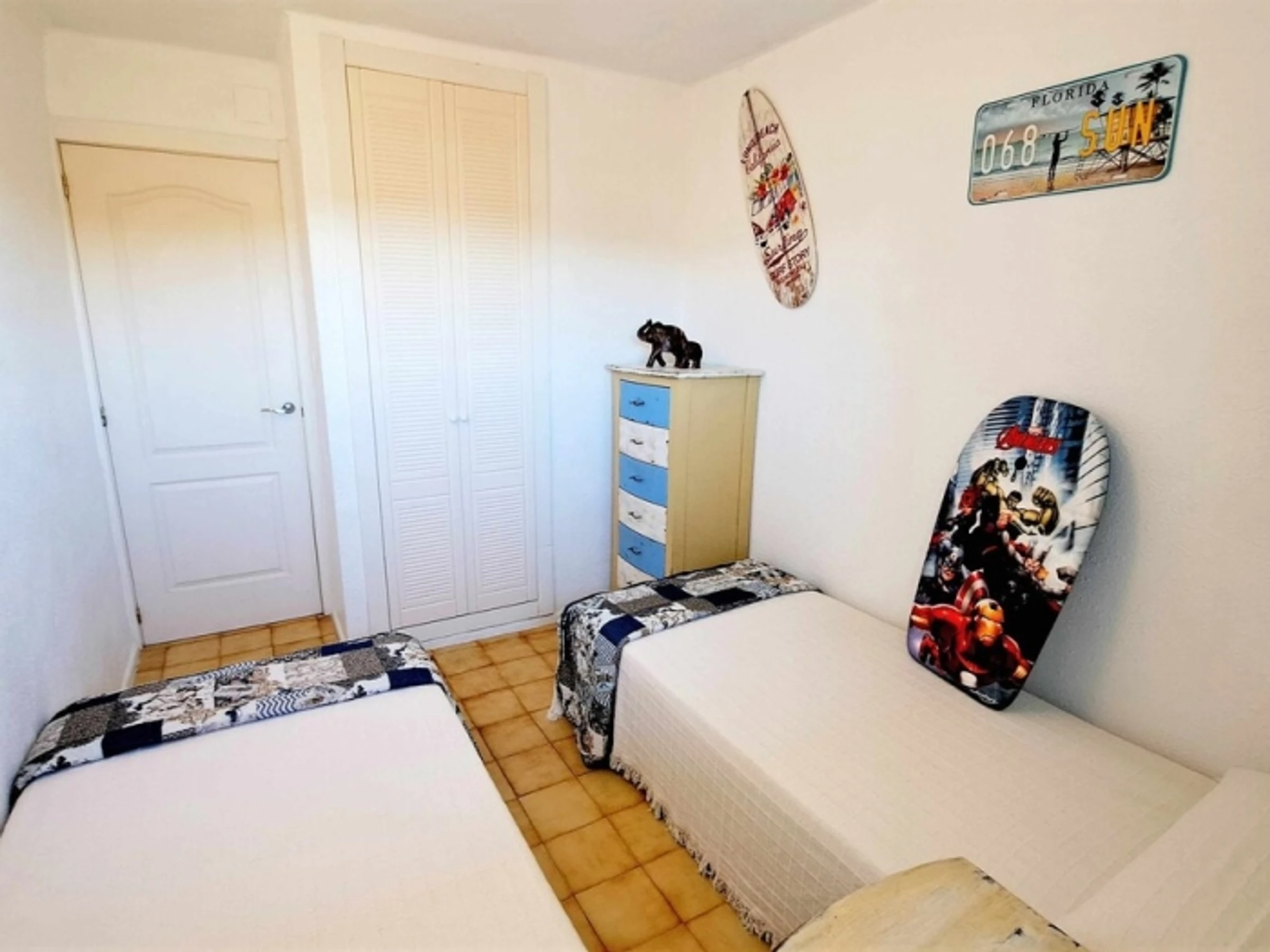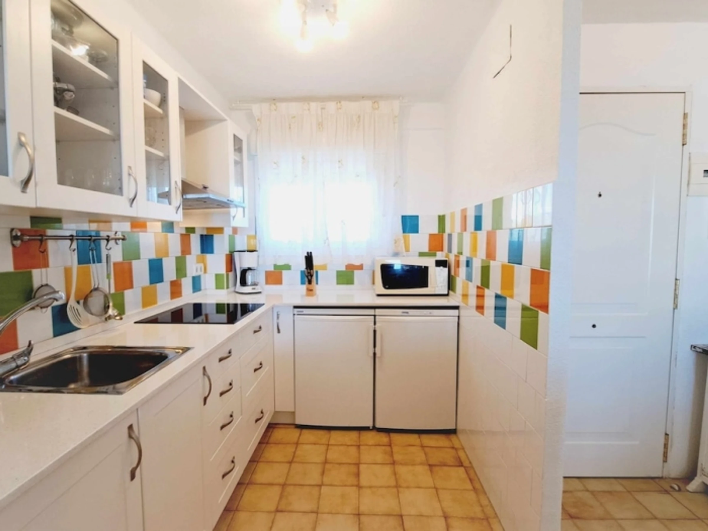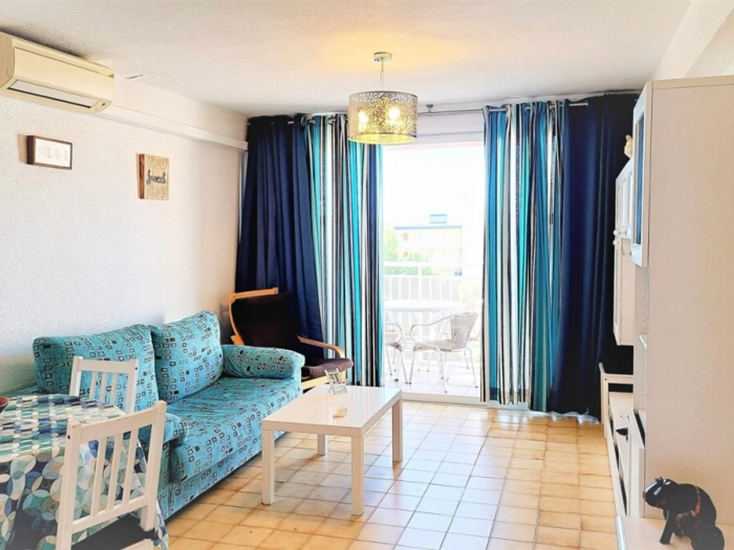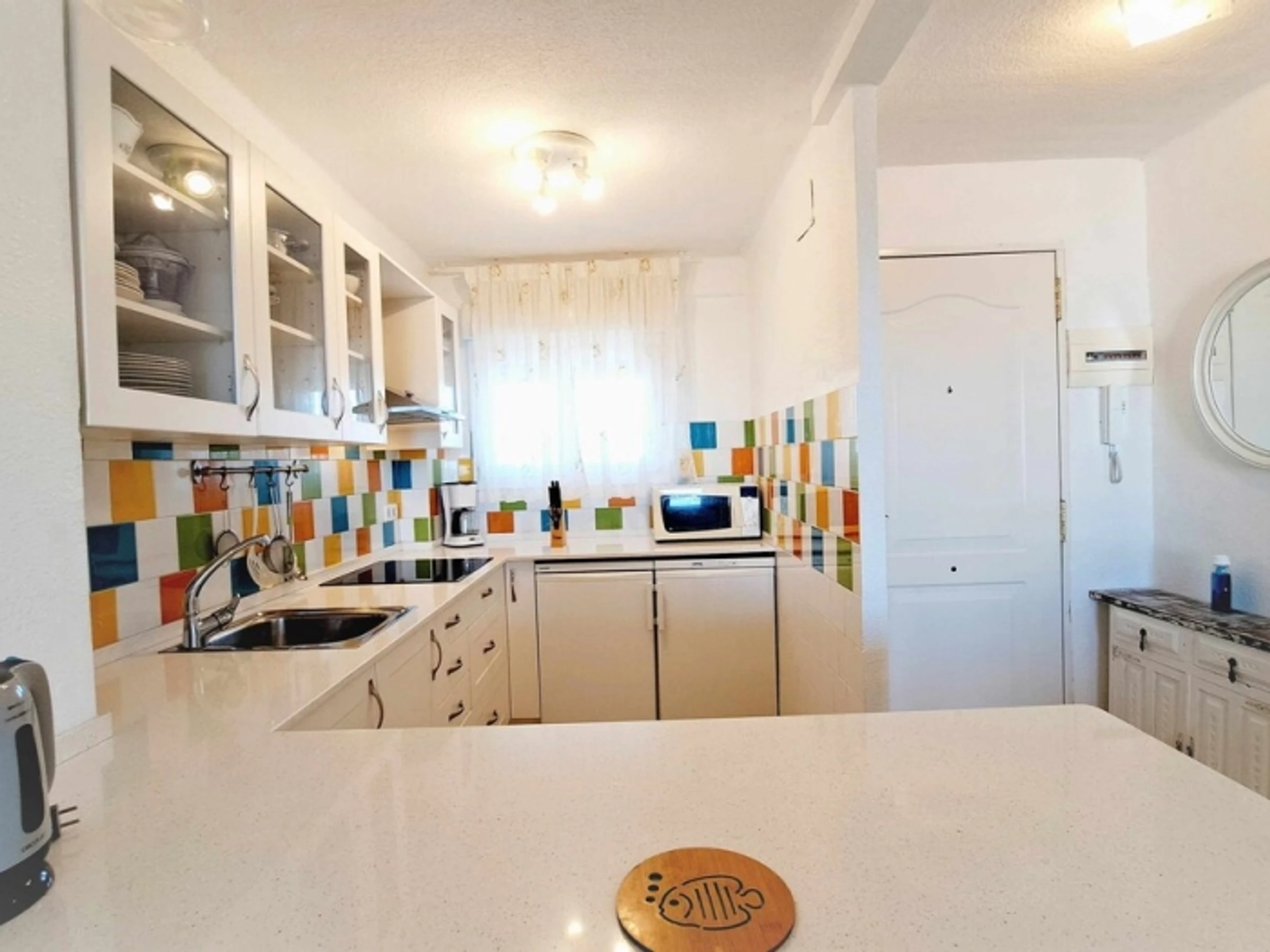 Appartement complet. 2 chambres doubles, séjour - cuisine ouverte (très bien équipée). Terrasse. Salle de bain. Climatisation. Wi-fi. Ascenseur. Piscines. Jardins. 400 mètres de la plage. Appartement confortable et moderne : 2 chambres doubles, avec placards. Grand séjour, climatisé, sortie sur la terrasse, exposée Est, avec vue dégagée (6ème étage). Cuisine américaine, très équipée (y compris lave-vaisselle). Salle de bain avec bac à douche. Espace communautaire avec jardins, piscines et aire de jeux pour enfants. Situé à 400 mètres de la plage et à 50 mètres de la rue commerçante piétonne (supermarché, restaurants, bars, etc.), zone avec transports en commun. Draps, serviettes et nettoyage final inclus dans le prix. Cuisine entièrement équipée : plaque vitrocéramique, four, micro-ondes, hotte aspirante, réfrigérateur + congélateur, lave-linge, [hidden] bébé sur demande : 10 € par jour.Animal domestique sur demande : 40 € (pour tout le séjour).Taxe de séjour : 1,10 €/nuit/personne de plus de 16 ans (pendant les 7 premières nuits).Taxe de séjour : 1,10 €/nuit/personne de plus de 16 ans (pendant les 7 premières nuits).Taxe de séjour : 1,10 €/nuit/personne de plus de 16 ans (pendant les 7 premières nuits).Taxe de séjour : 1,10 €/nuit/personne de plus de 16 ans (pendant les 7 premières nuits).