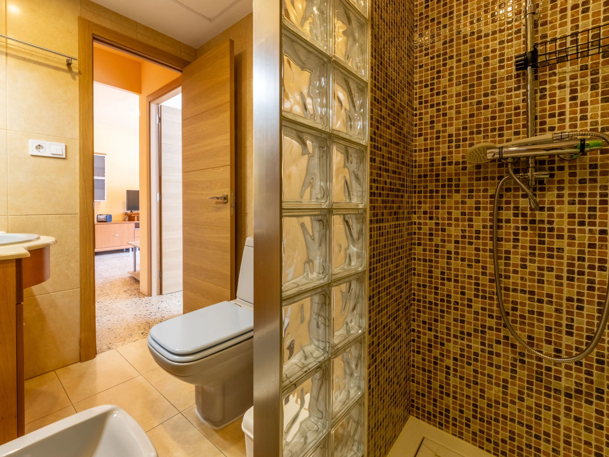 Salou: Petite résidence accueillante "California 2". Situation centrale, animée, à 500 m de la mer, à 500 m de la plage. Infrastructures de la Maison: ascenseur. Magasins 100 m, magasin d'alimentation 50 m, supermarché 100 m, restaurant 50 m, arrêt de bus "Plaza Europa" 100 m, gare ferroviaire "Salou" 3.6 km. Terrain de golf (18 trous) 2 km. Attractions à proximité: Port Aventura 3 km, Parque acuático Aquapolis 3 km, Spa AQUUM 3 km, Karting 2 km, Infinitum Golf 2 km.