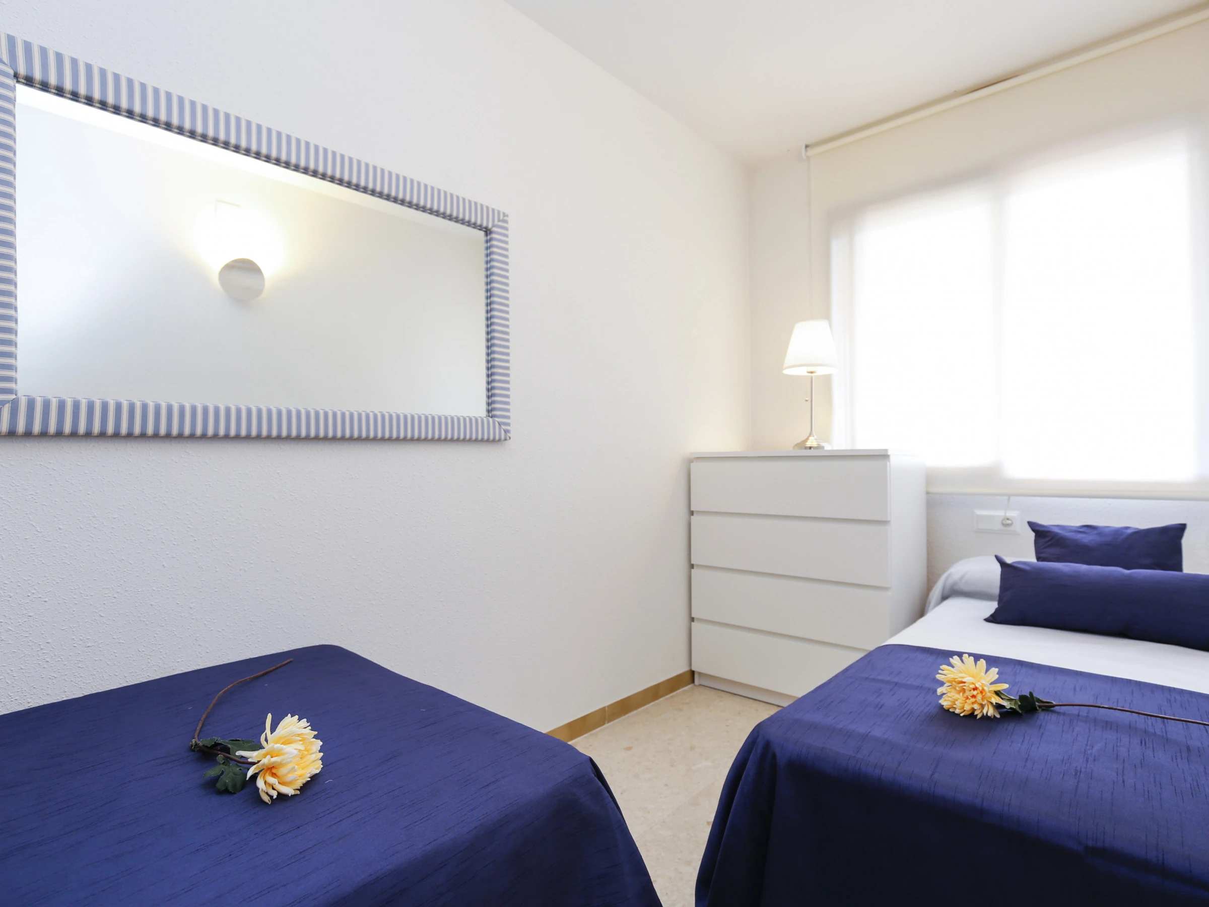Dispose d'un salon-salle à manger lumineux avec un canapé-lit double et une sortie sur la terrasse, cuisine américaine équipée de tous les ustensiles et appareils électroménagers nécessaires, deux chambres (une avec un lit de couple et l'autre avec deux lits individuels), une salle de bain avec douche et un toilette supplémentaire.