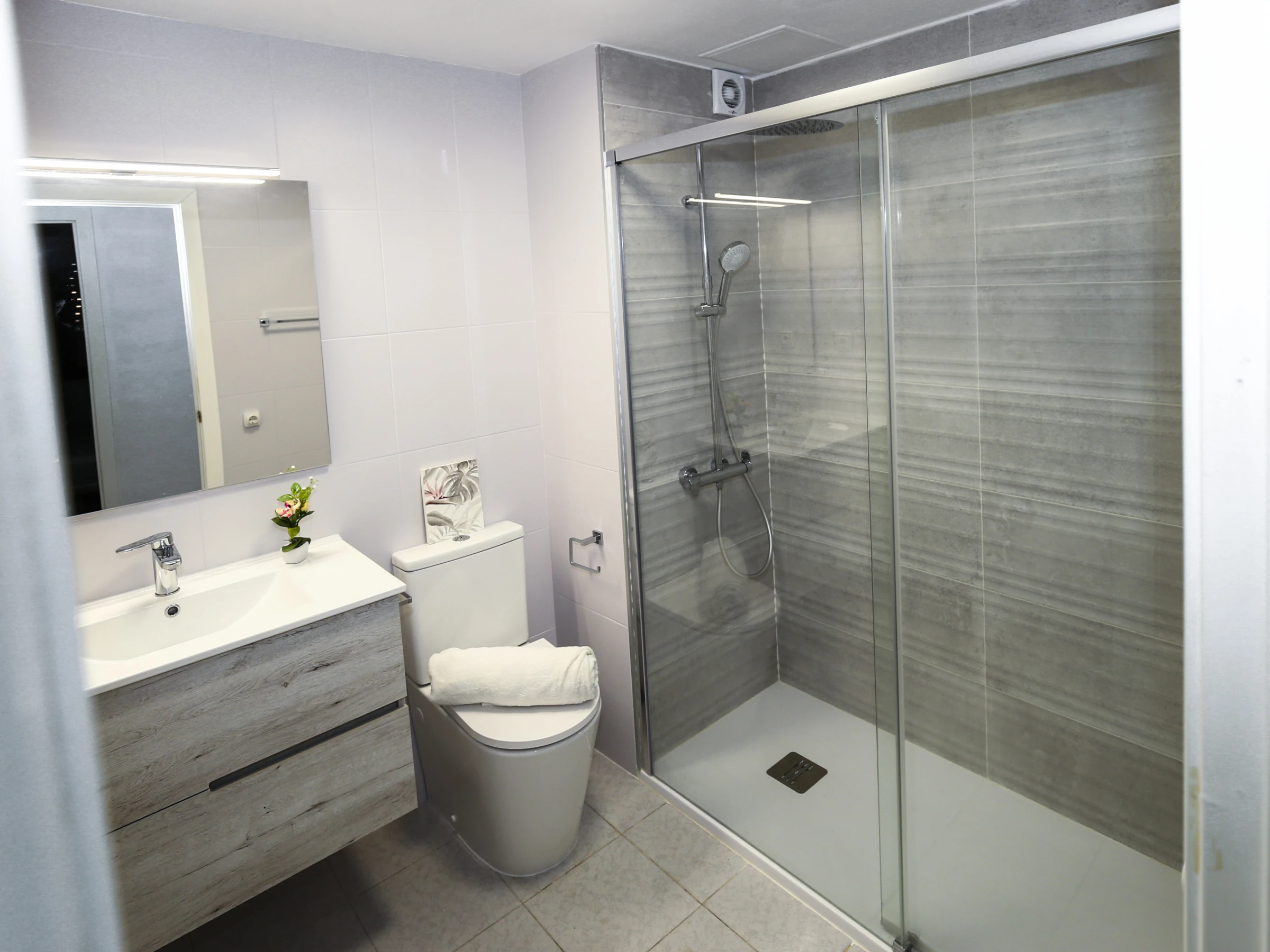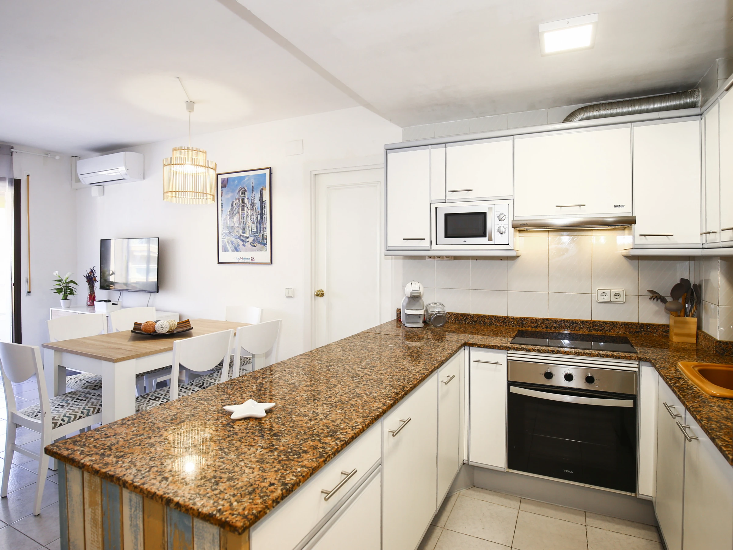 Climatisation dans le salon et dans le couloir entre les chambres.