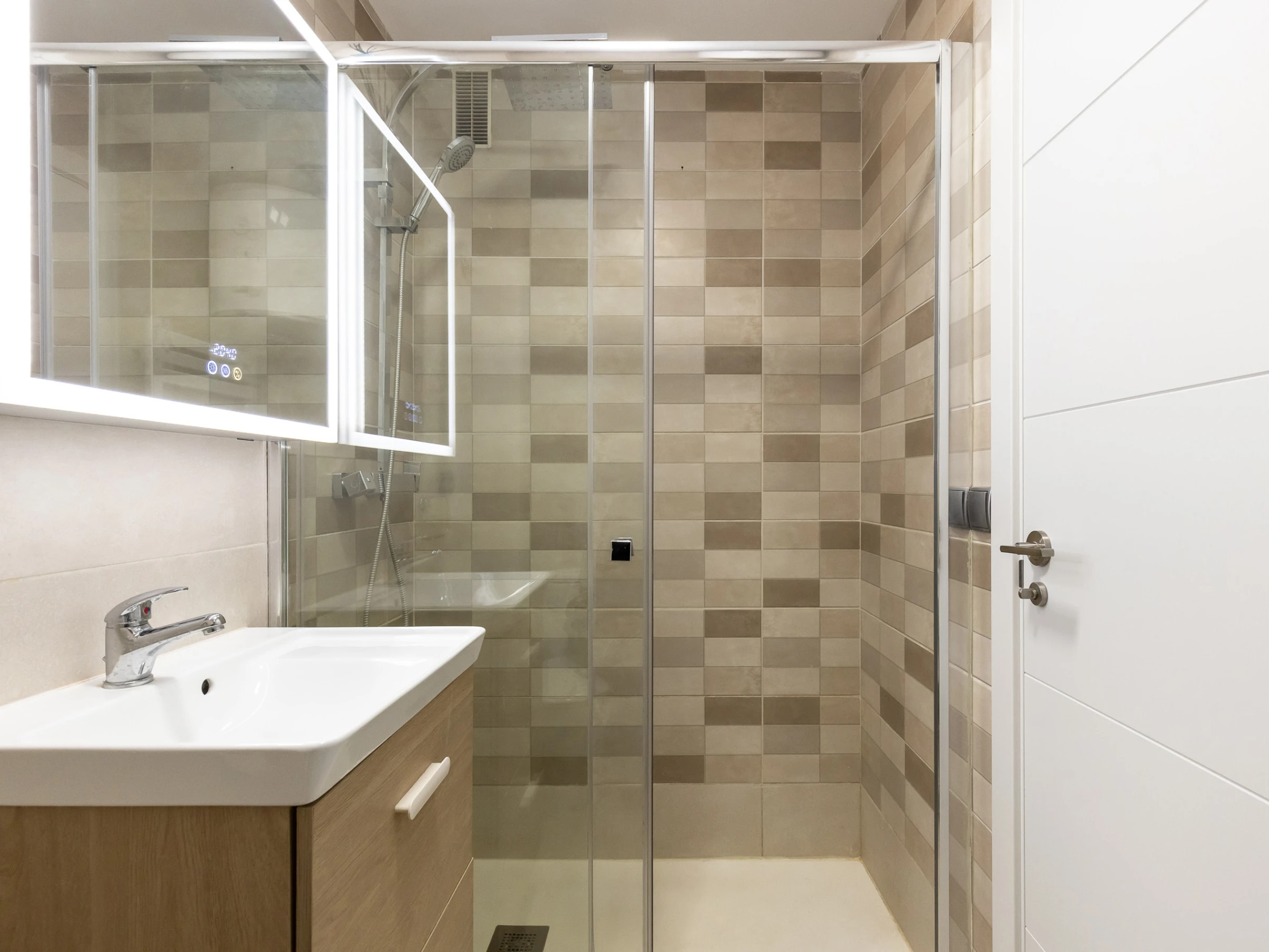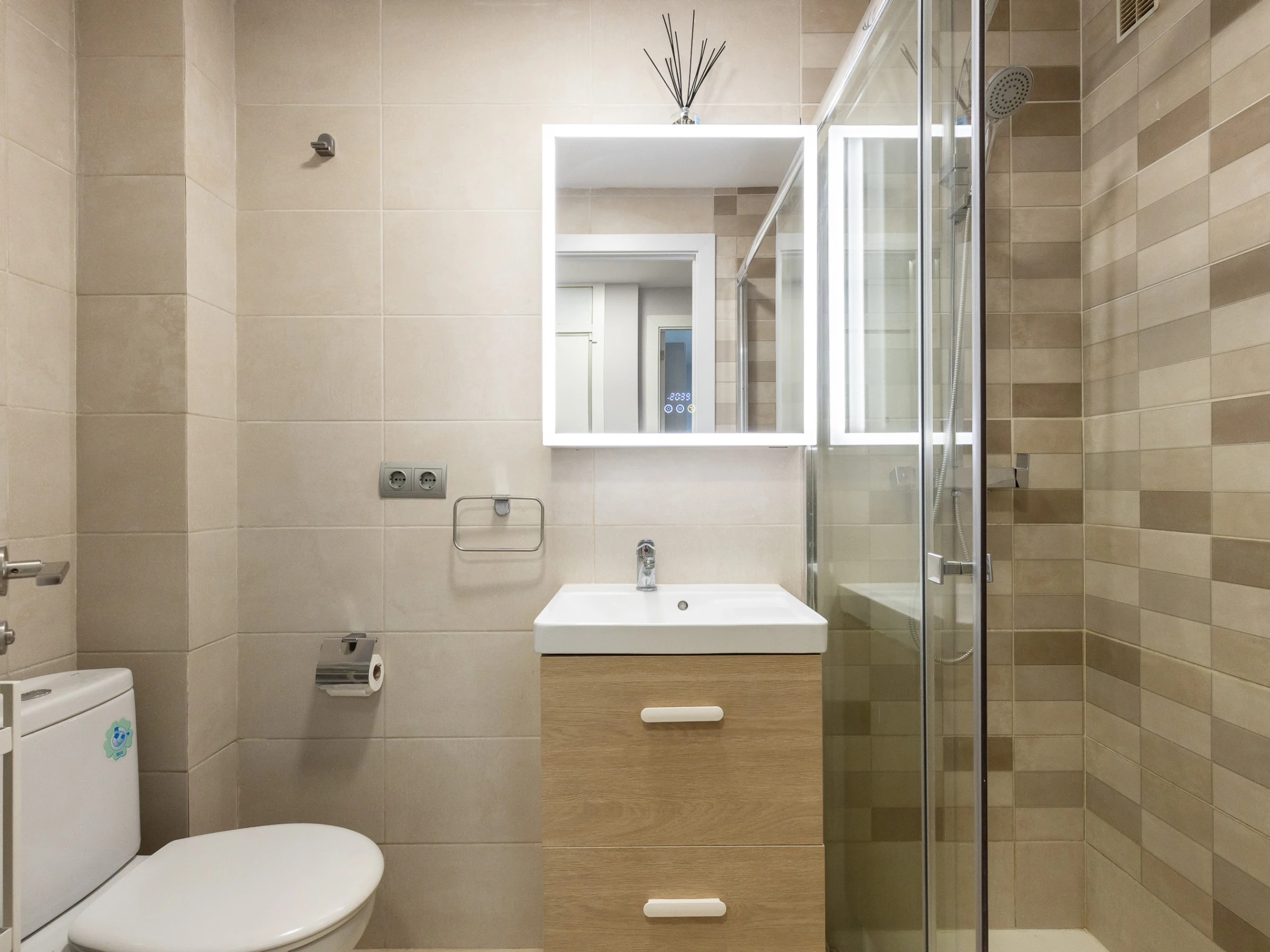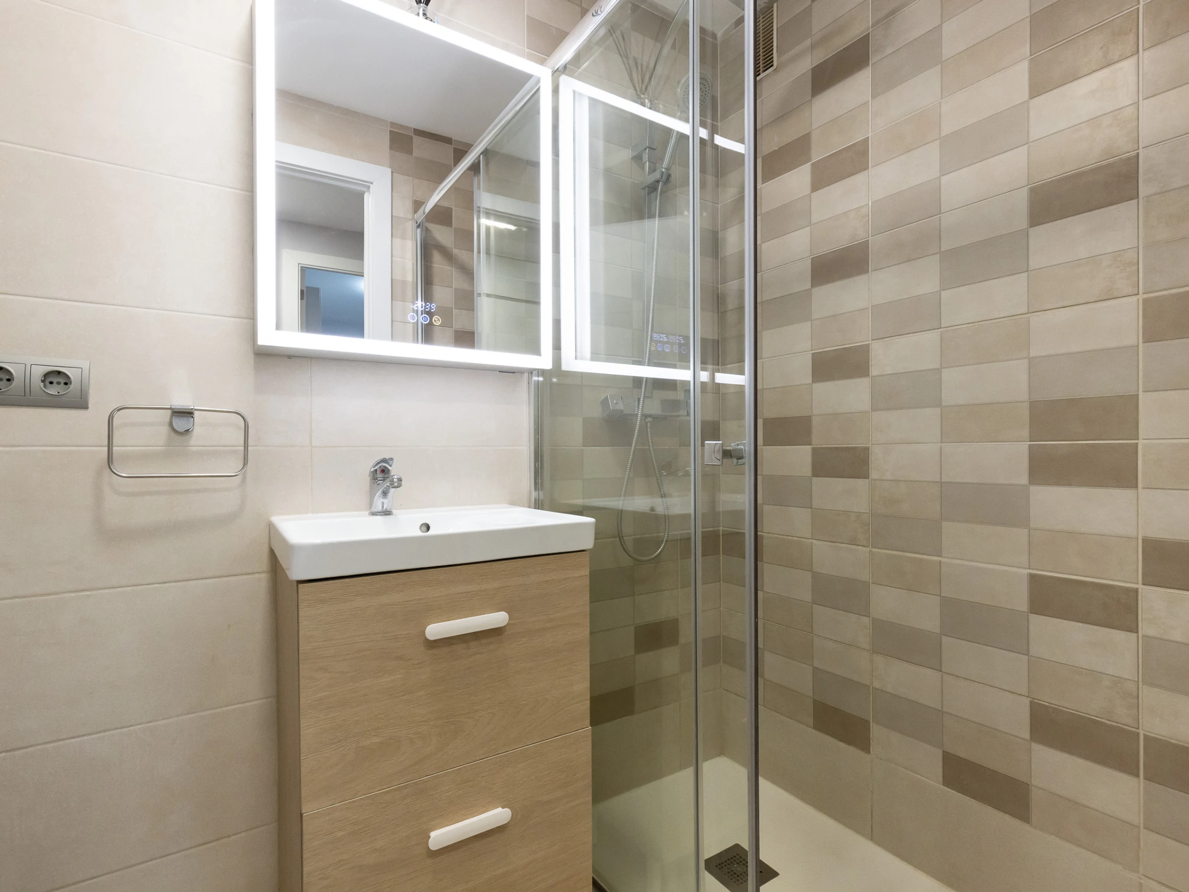 1 salle de bain avec douche, moderne et fonctionnelle.