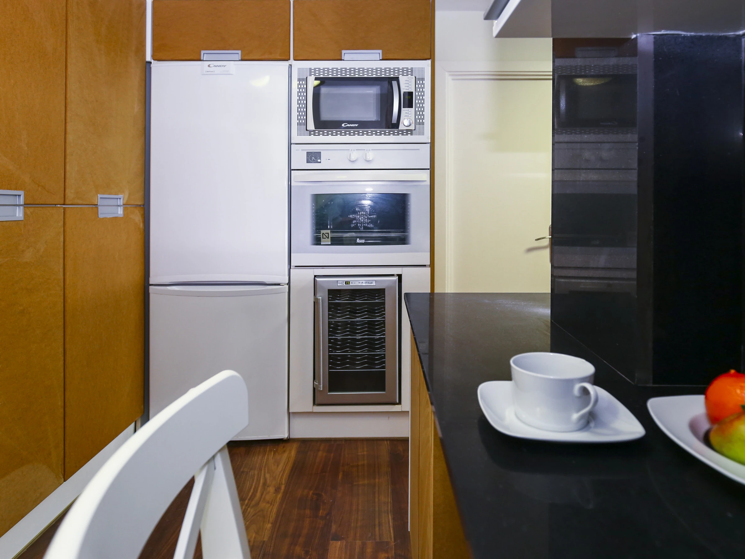 Cet appartement dispose d'un salon-salle à manger avec accès à la terrasse, d'une cuisine indépendante entièrement équipée et de trois chambres :