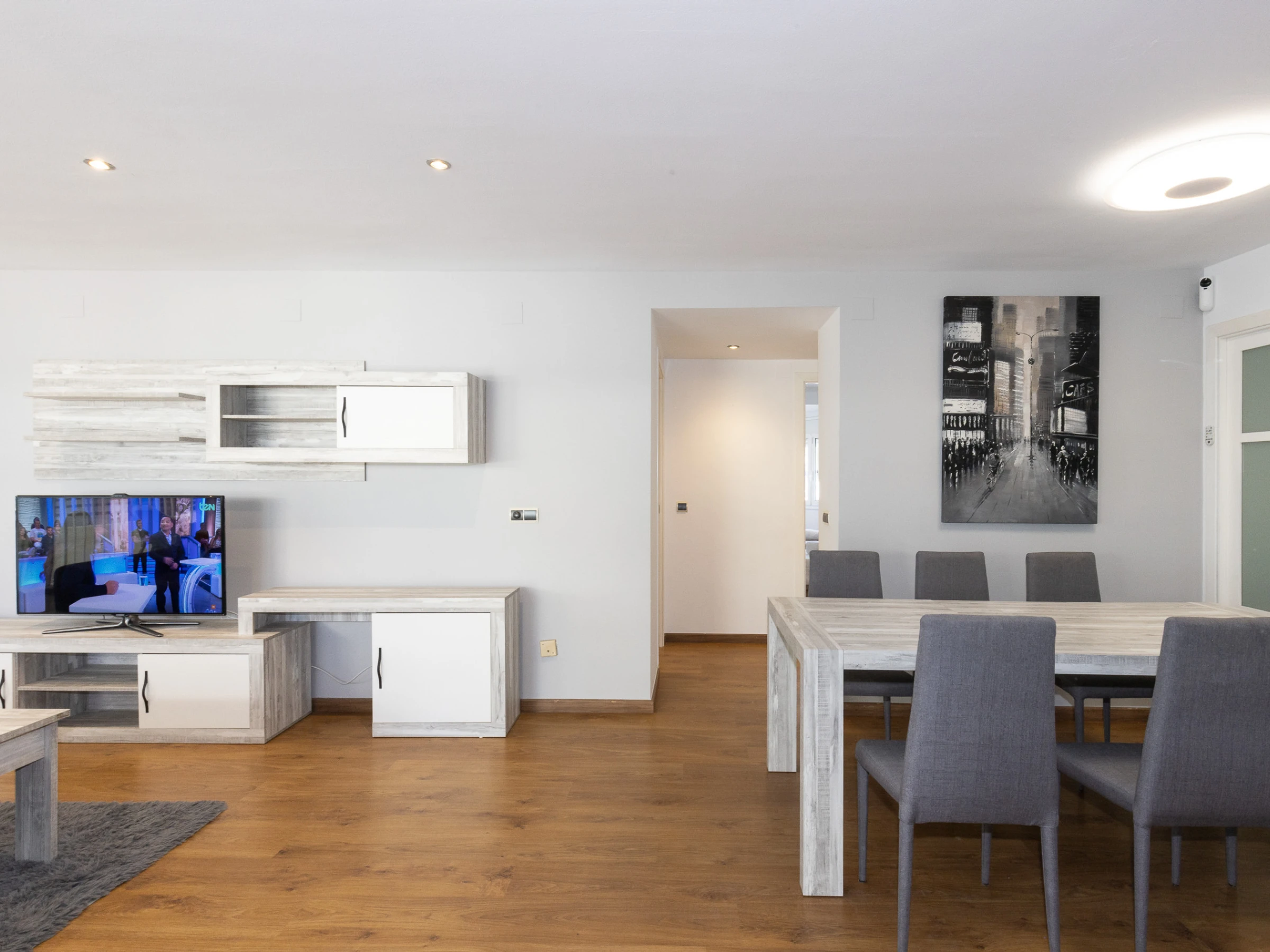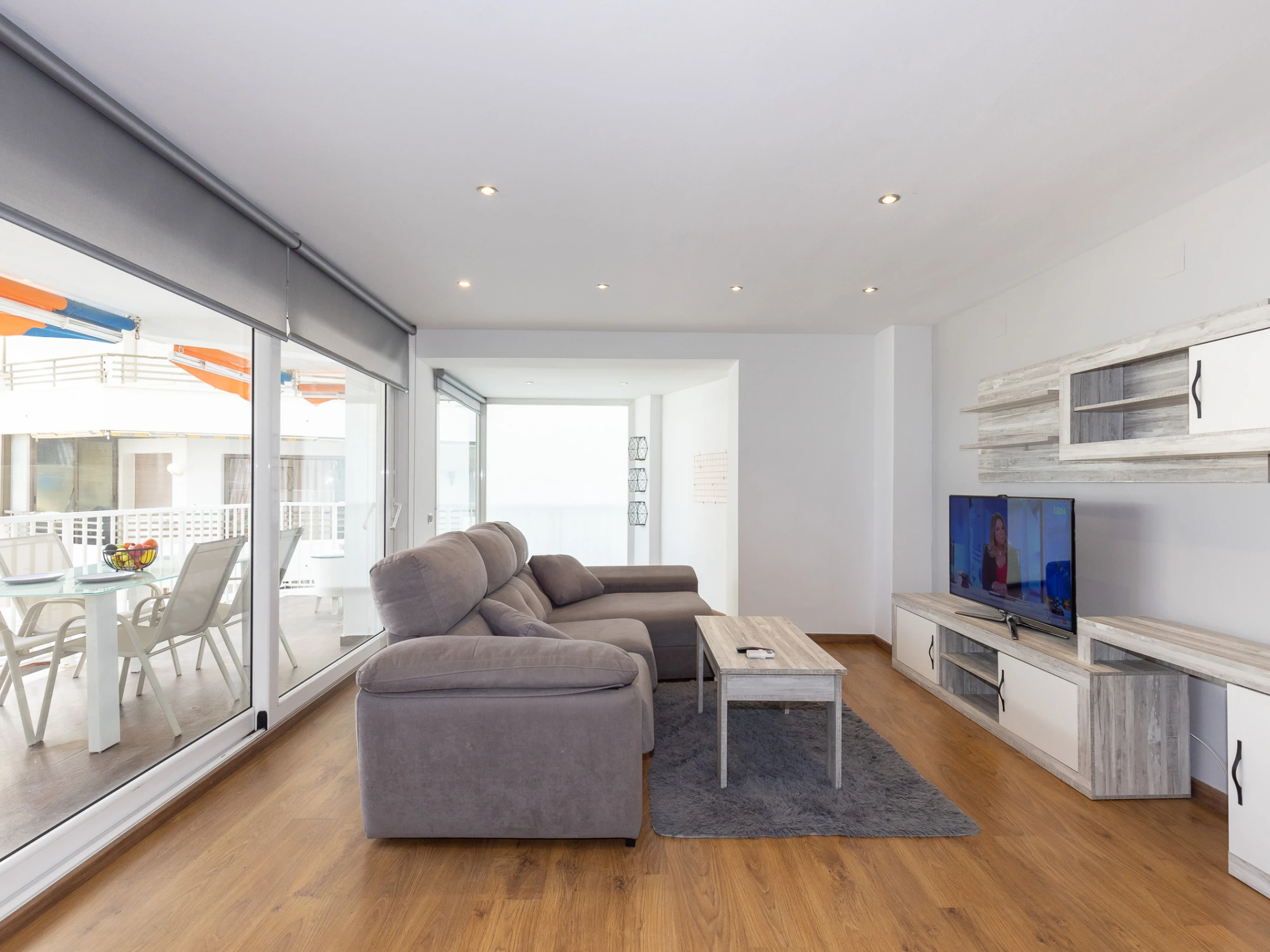 Salon-salle à manger et belle terrasse