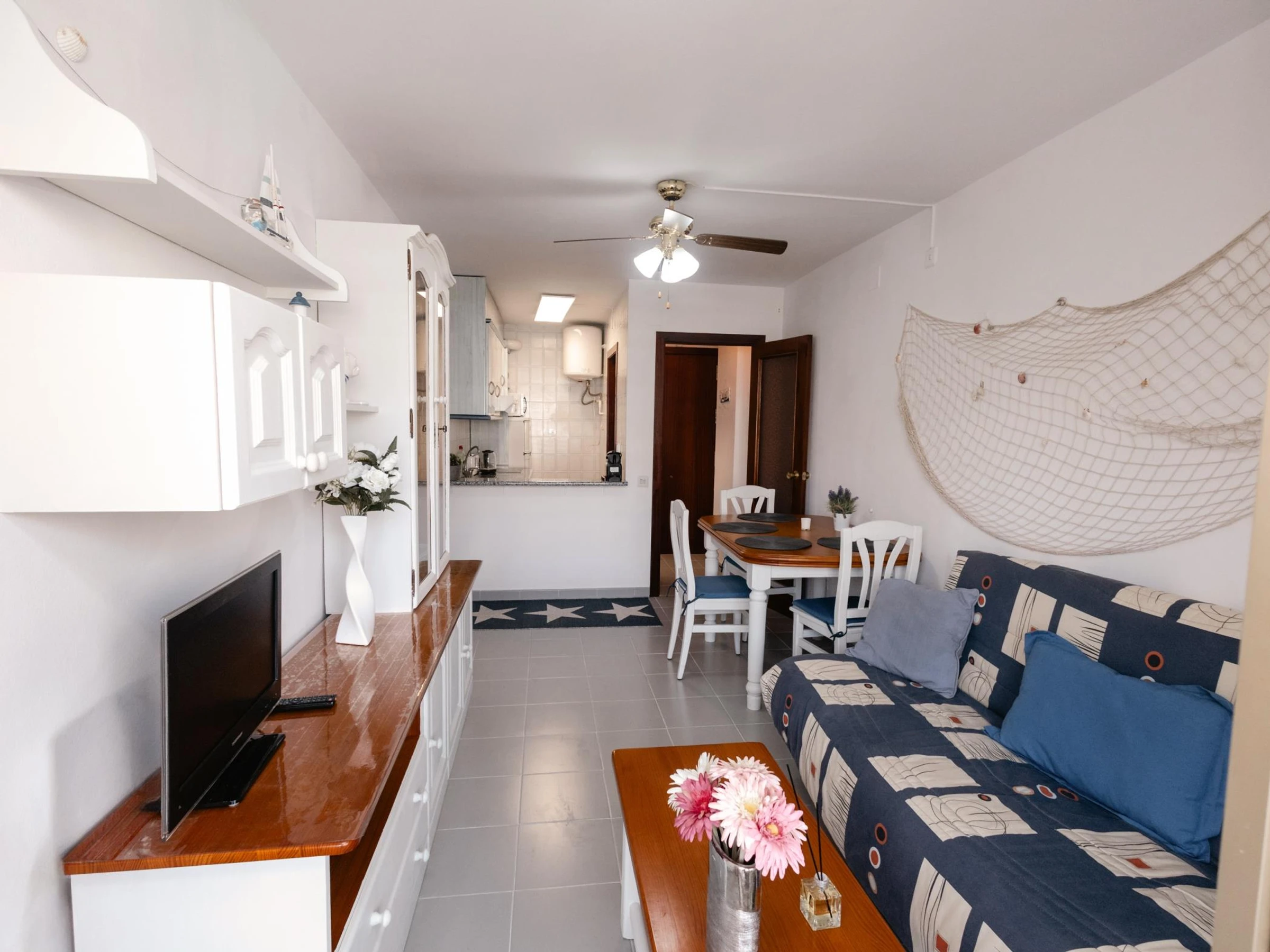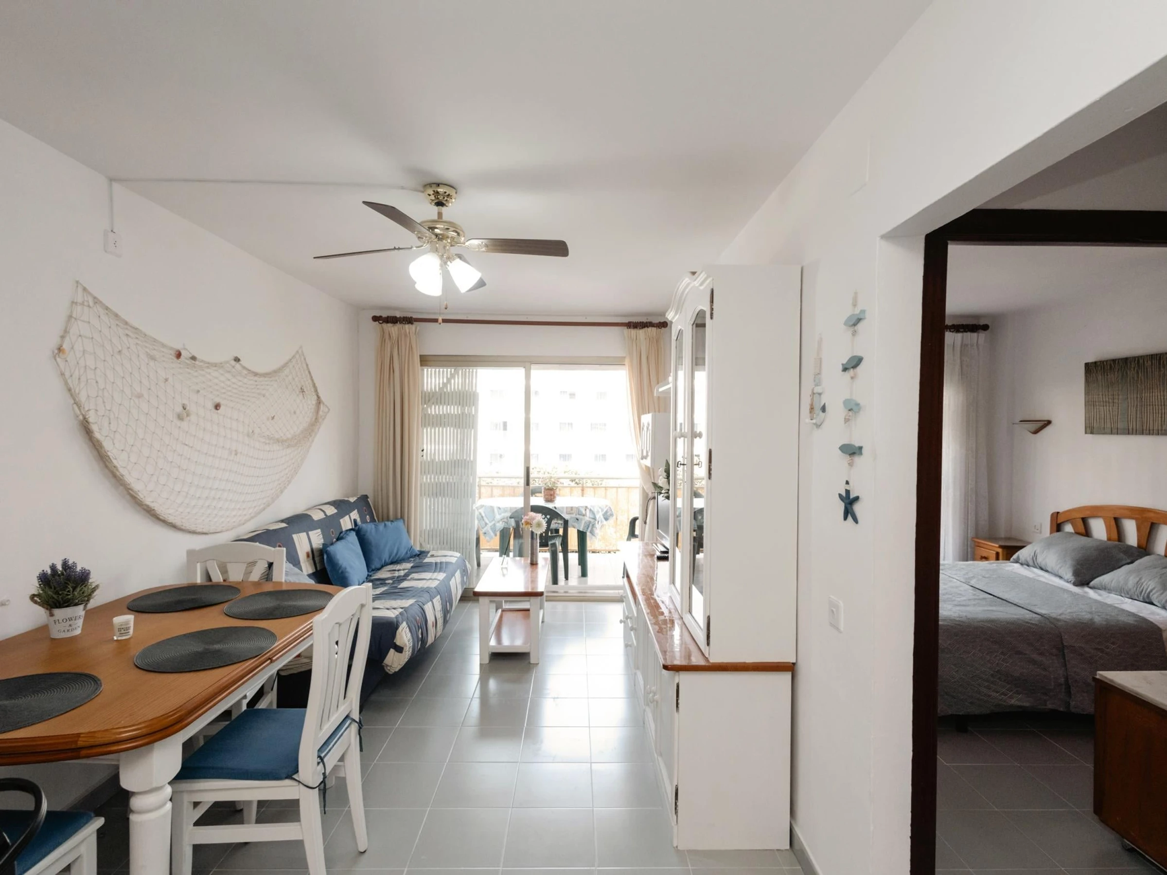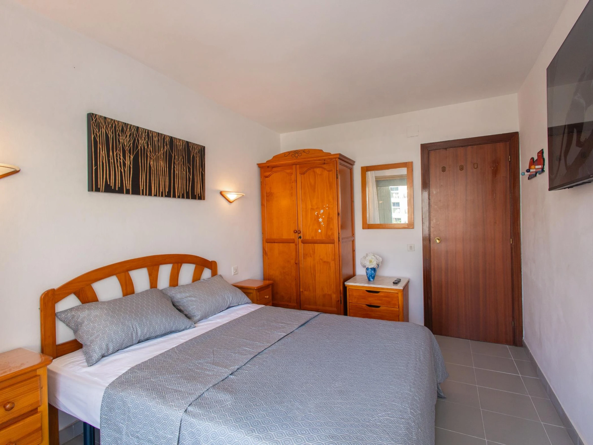 L’appartement dispose de deux chambres doubles confortables, entièrement équipées pour garantir un repos optimal. L’une d’elles comprend un lit double, une télévision et un ventilateur de plafond, créant un espace idéal pour se détendre après une journée à la plage. La seconde chambre est équipée de deux lits simples, parfaite pour les familles ou les groupes d’amis.
