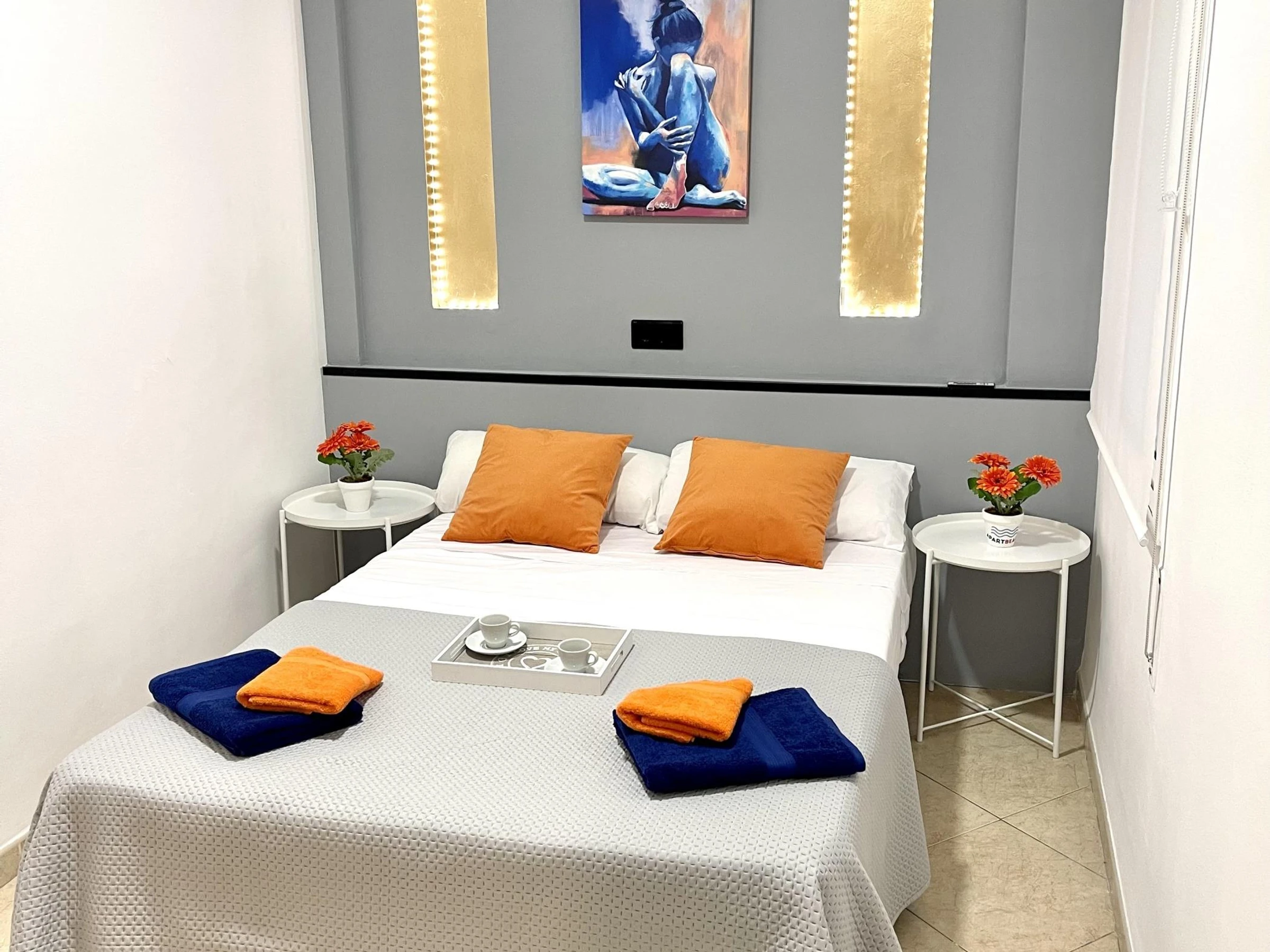 -1 chambre avec lit double avec placard intégré.