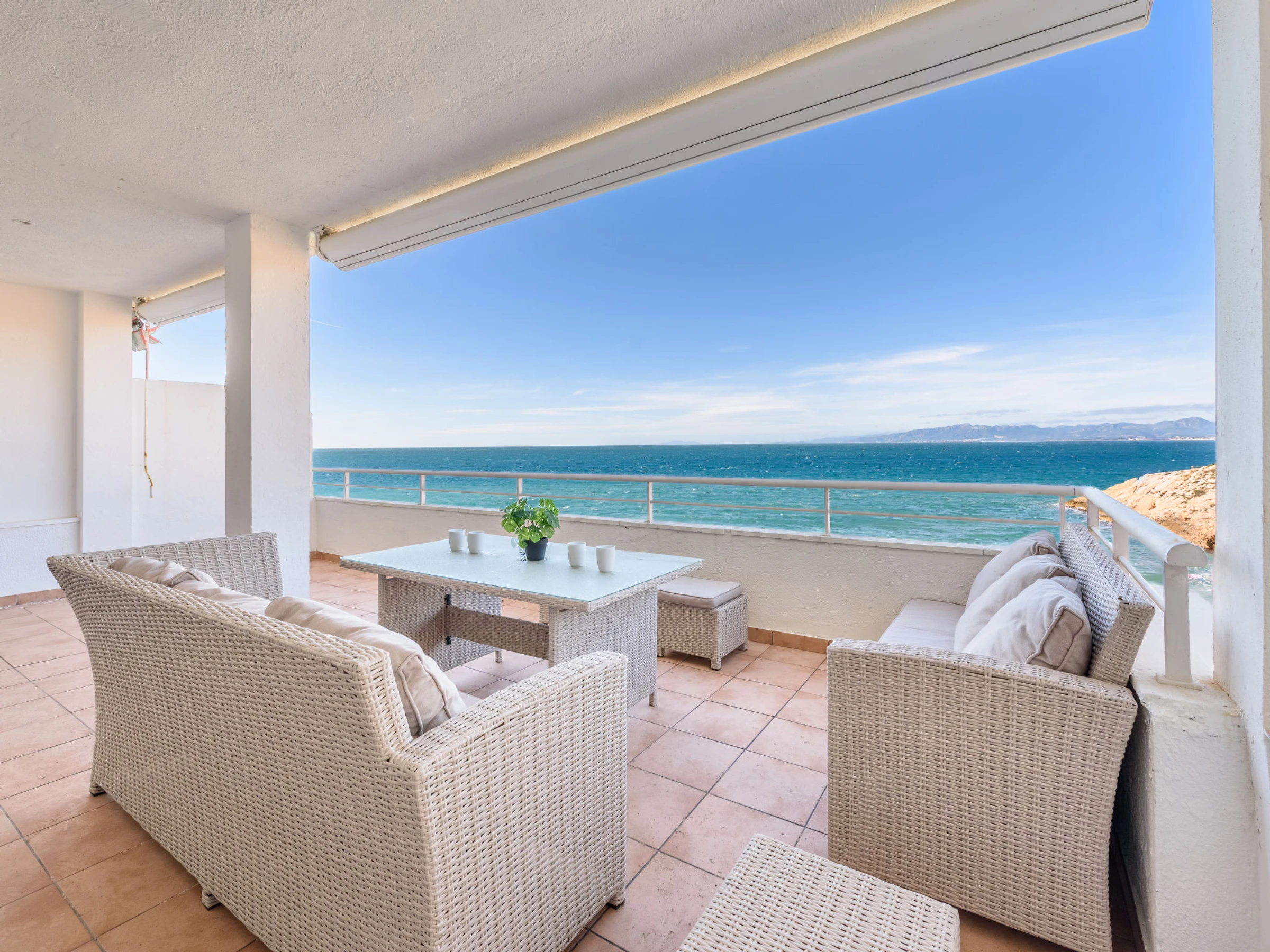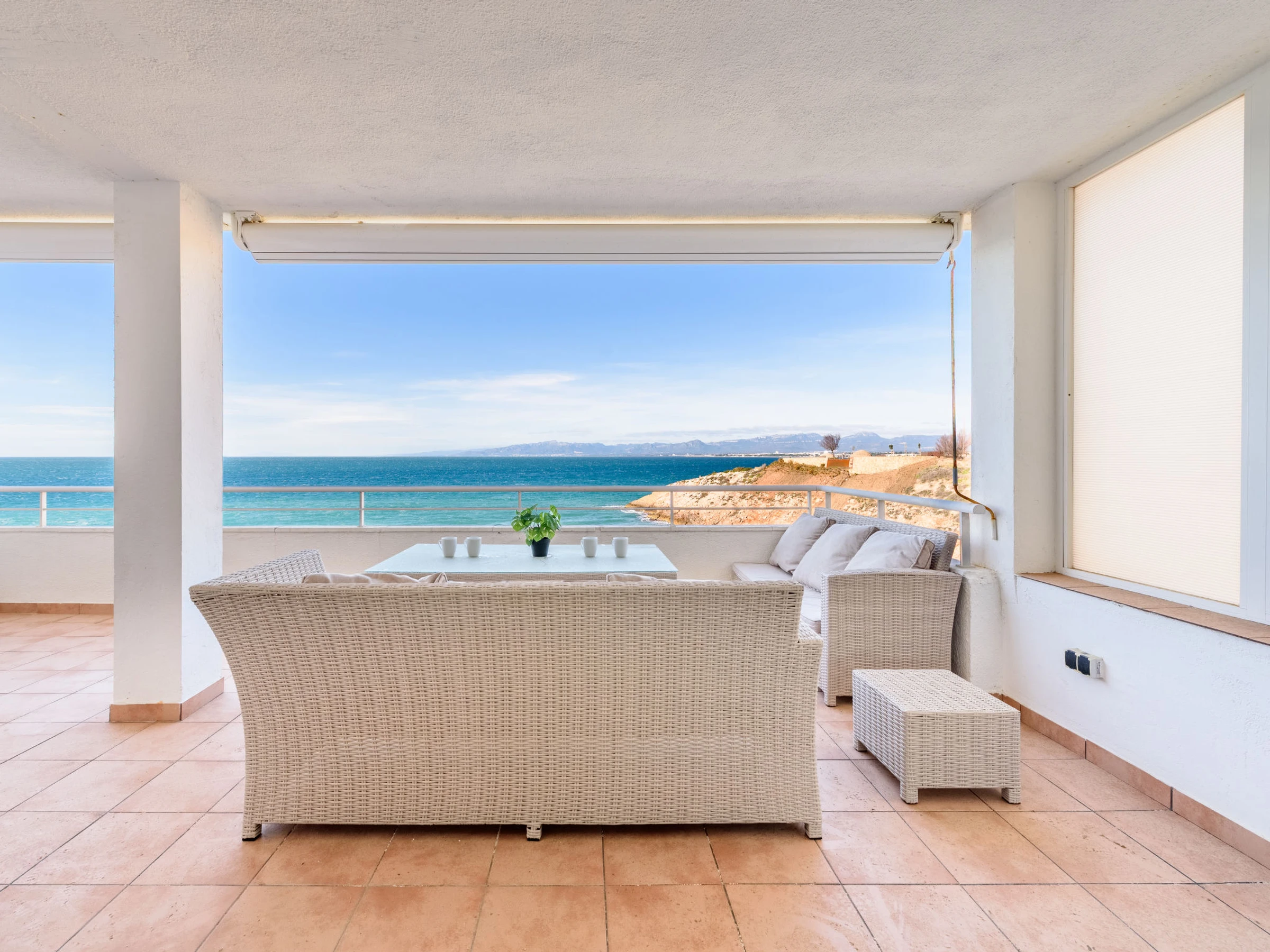 "Rits", apt 3 pièces 65 m2 au 1er étage. Aménagement simple: séjour/salle à manger avec table pour les repas. Sortie sur la terrasse. 1 chambre avec 1 grand-lit (135 cm, longueur 190 cm). Sortie sur la terrasse. 1 petite chambre, sans fenêtre avec 2 x 1 lits superposés (90 cm, longueur 190 cm). Cuisine (four, 4 plaques vitrocéramiques, congélateur, cafetière électrique) avec chauffe eau (80 litres). Douche/WC. Pas de chauffage. Grande terrasse 40 m2. Meubles de terrasse. Superbe vue sur la mer. A disposition: lave-linge, sèche-cheveux. Place de parking No 19 (-2). Maximum 1 animal/ chien autorisé. [hidden] // Reg. Nr.: ESFCTU00004302400028609200000000000000000[hidden]0