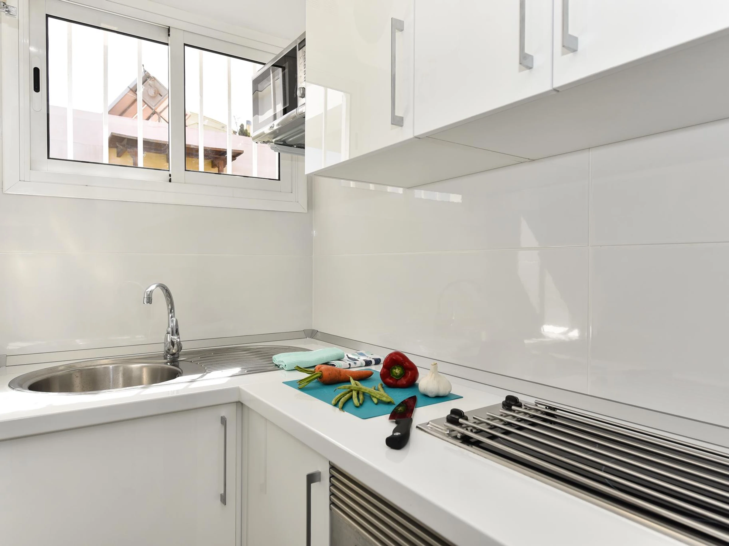 La cuisine, est équipée avec réfrigérateur, four, congélateur, ustensiles/cuisine, cafetière et grille pain.