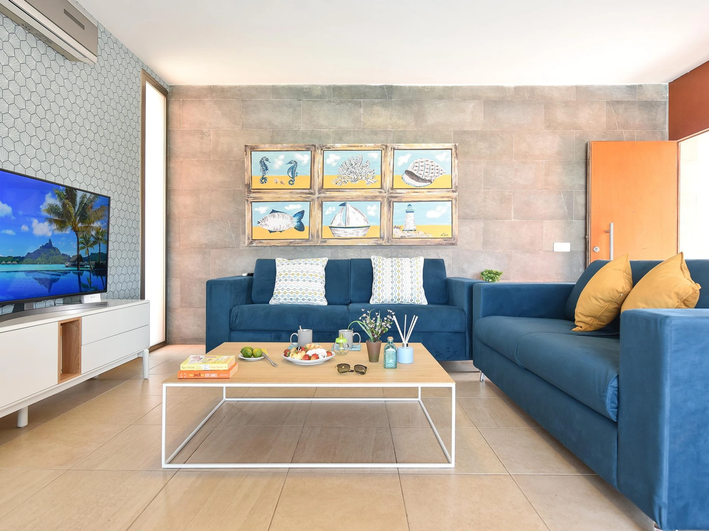Elle dispose de terrasse, lave-linge, sèche-linge, barbecue, fer à repasser, coffre-fort, accès internet, chauffage central, climatisation, piscine collective, 1 Télévision.
