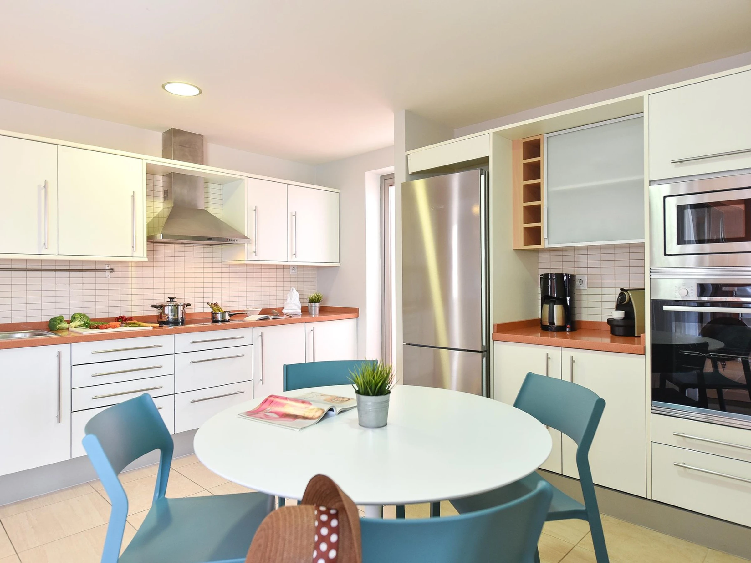 La cuisine, est équipée avec réfrigérateur, micro-ondes, four, congélateur, lave-vaisselle, cafetière, grille pain et bouilloire.