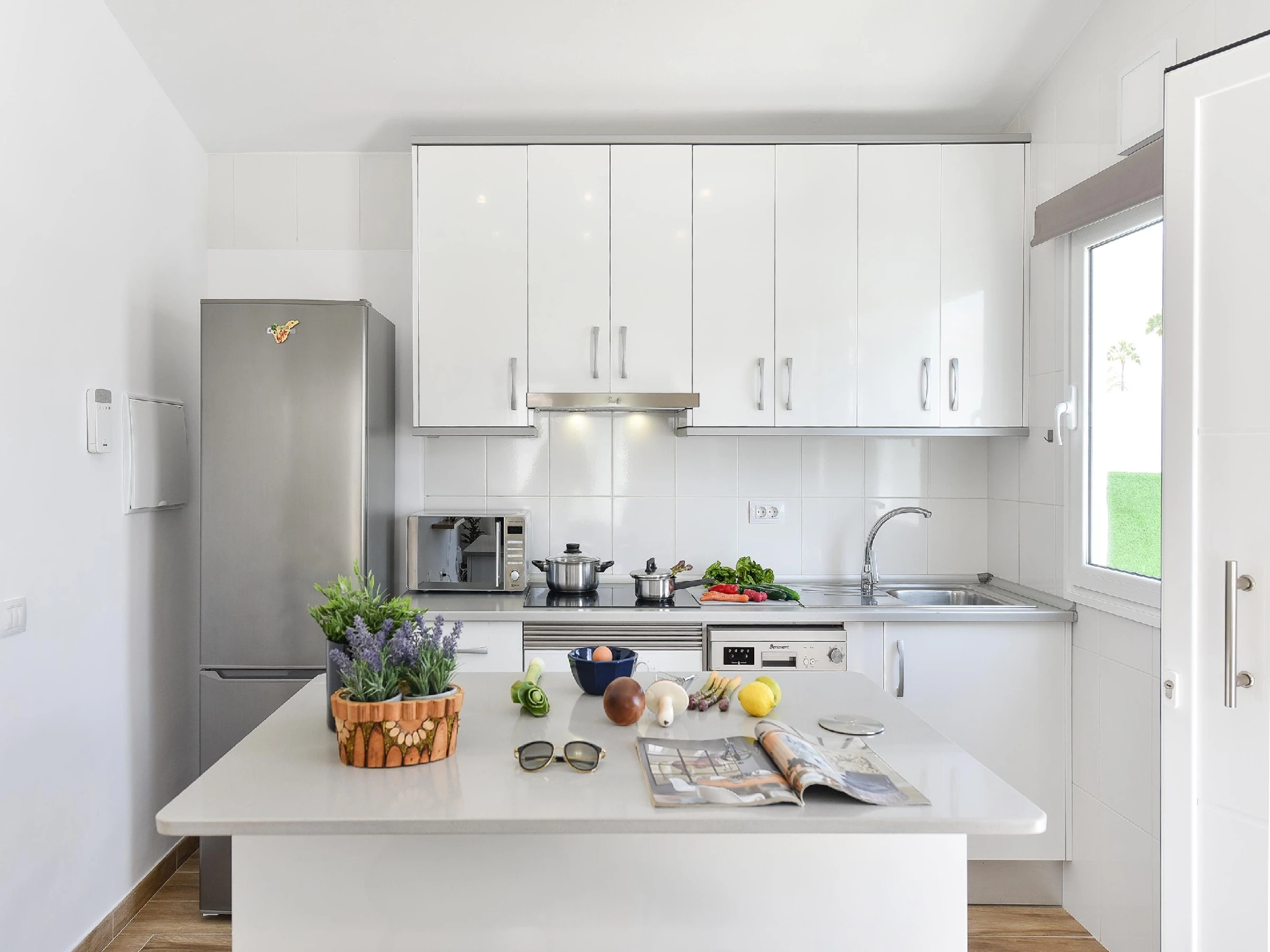 La cuisine, est équipée avec réfrigérateur, micro-ondes, four, congélateur, lave-vaisselle, cafetière et bouilloire.