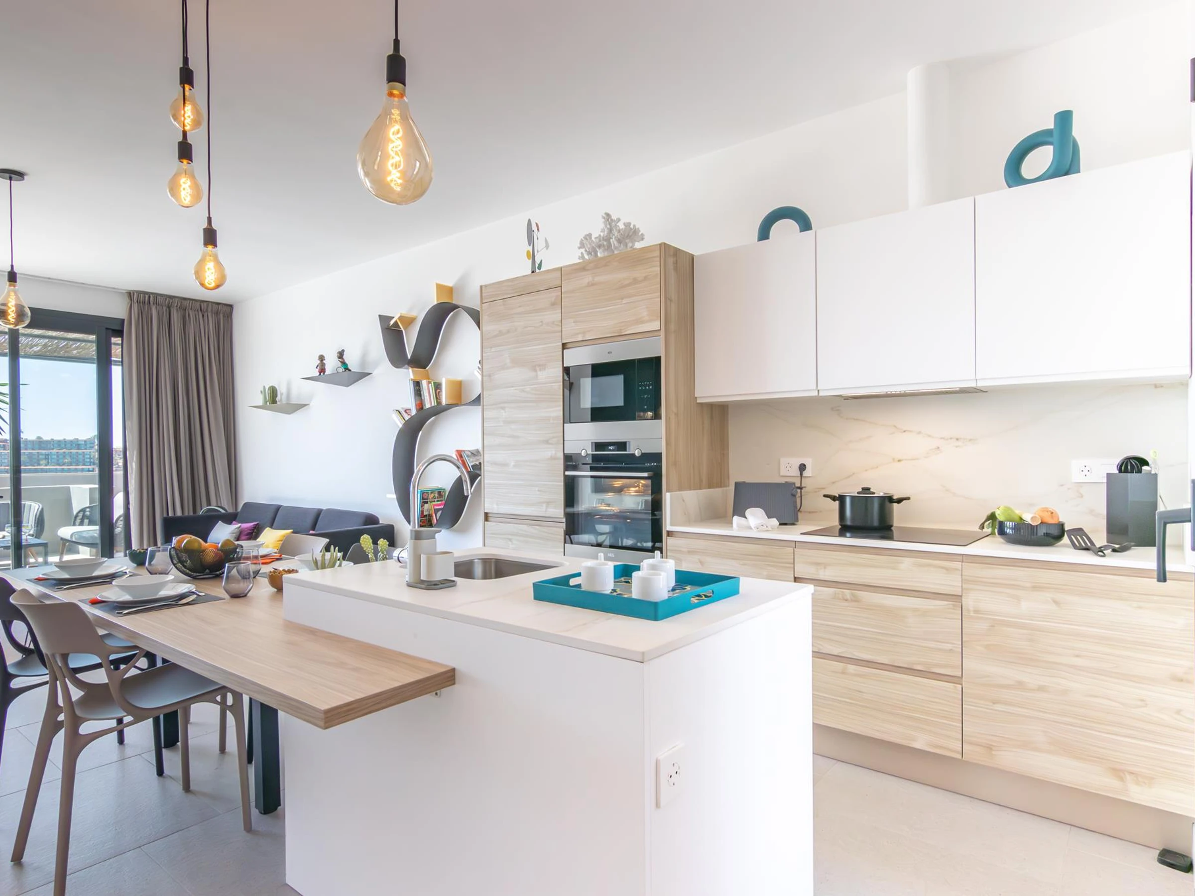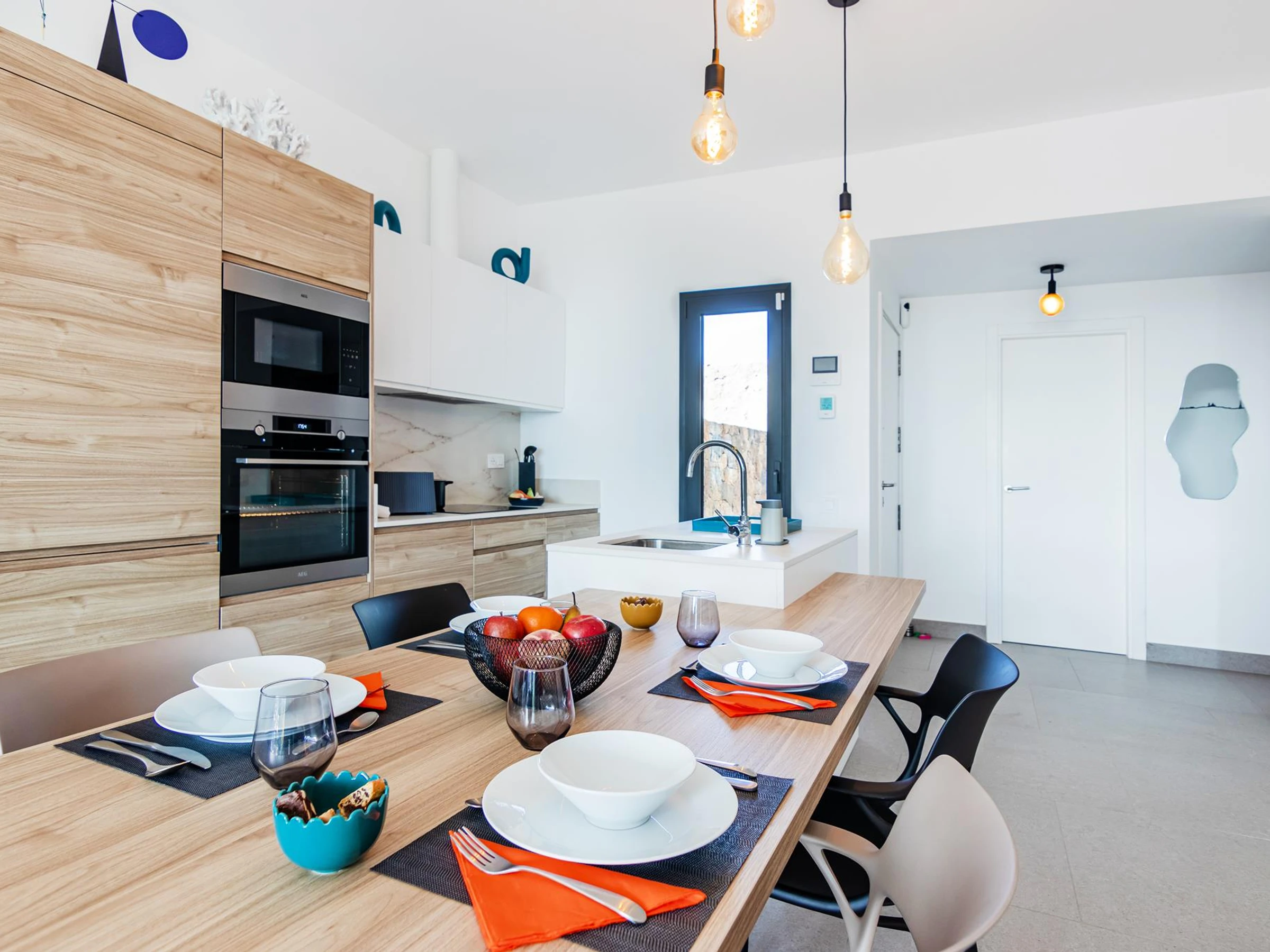 La cuisine, est équipée avec réfrigérateur, micro-ondes, four, lave-vaisselle, ustensiles/cuisine, cafetière, grille pain et bouilloire.