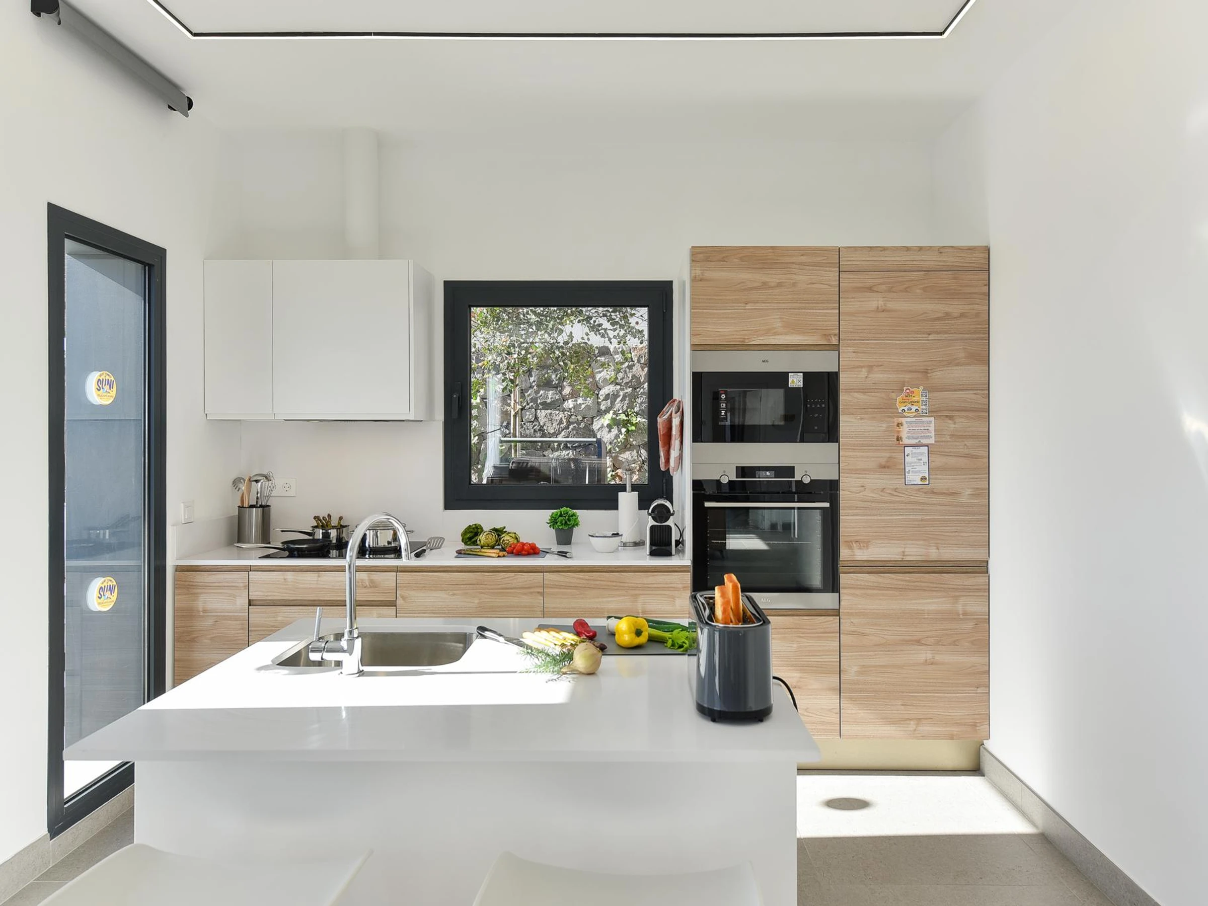 La cuisine, est équipée avec réfrigérateur, micro-ondes, four, lave-vaisselle, ustensiles/cuisine, cafetière, grille pain et bouilloire.