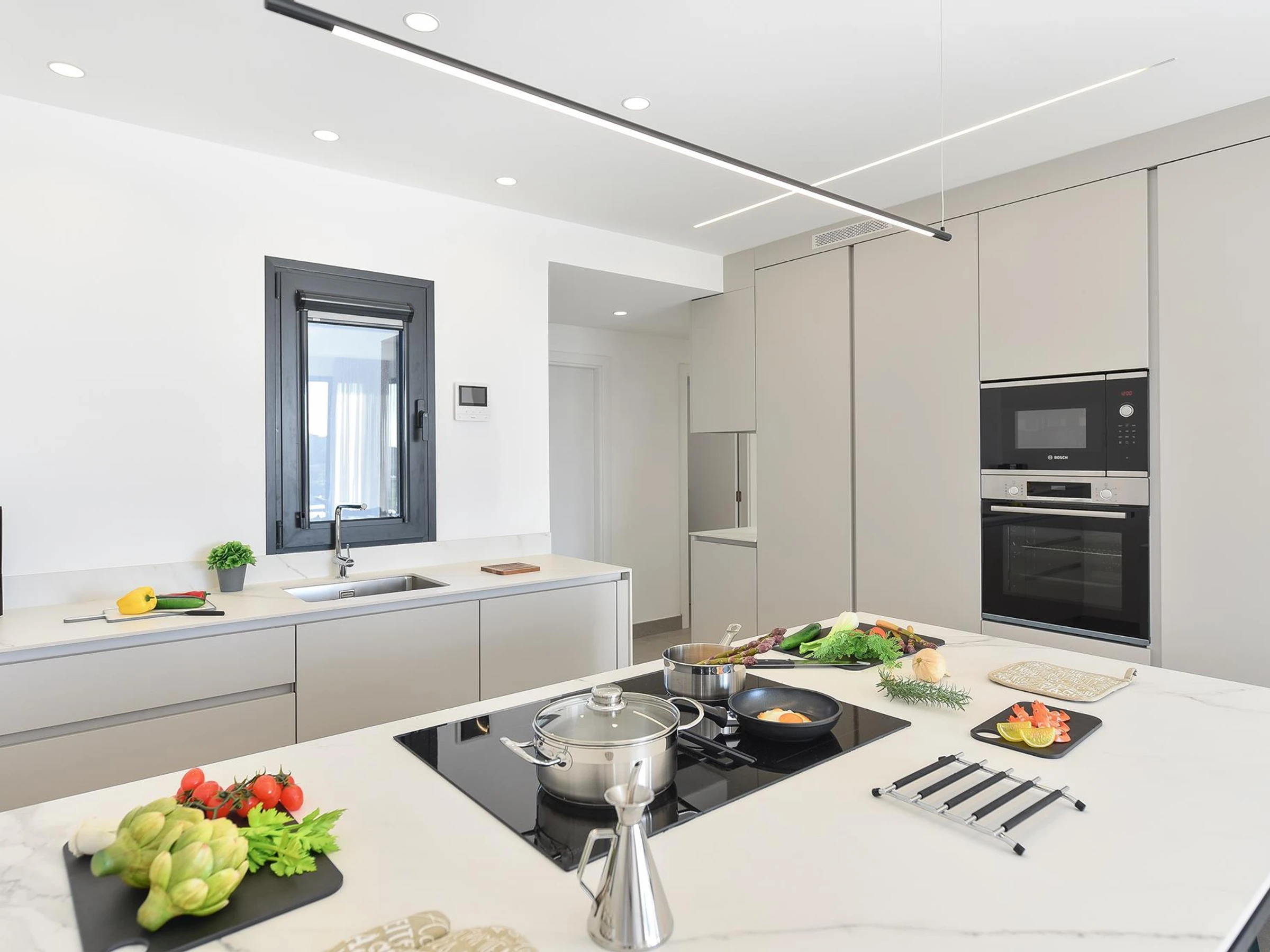 La cuisine, est équipée avec réfrigérateur, micro-ondes, four, lave-vaisselle, ustensiles/cuisine, cafetière, grille pain et bouilloire.