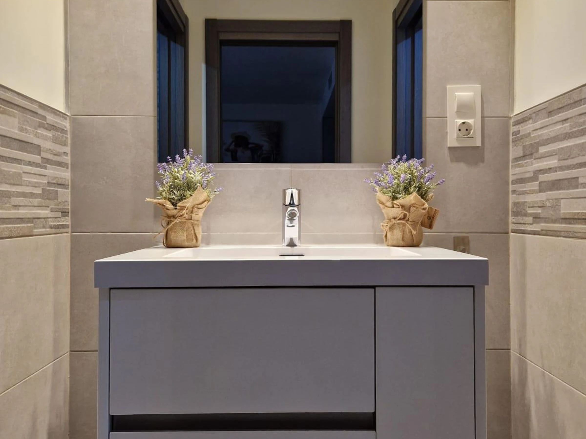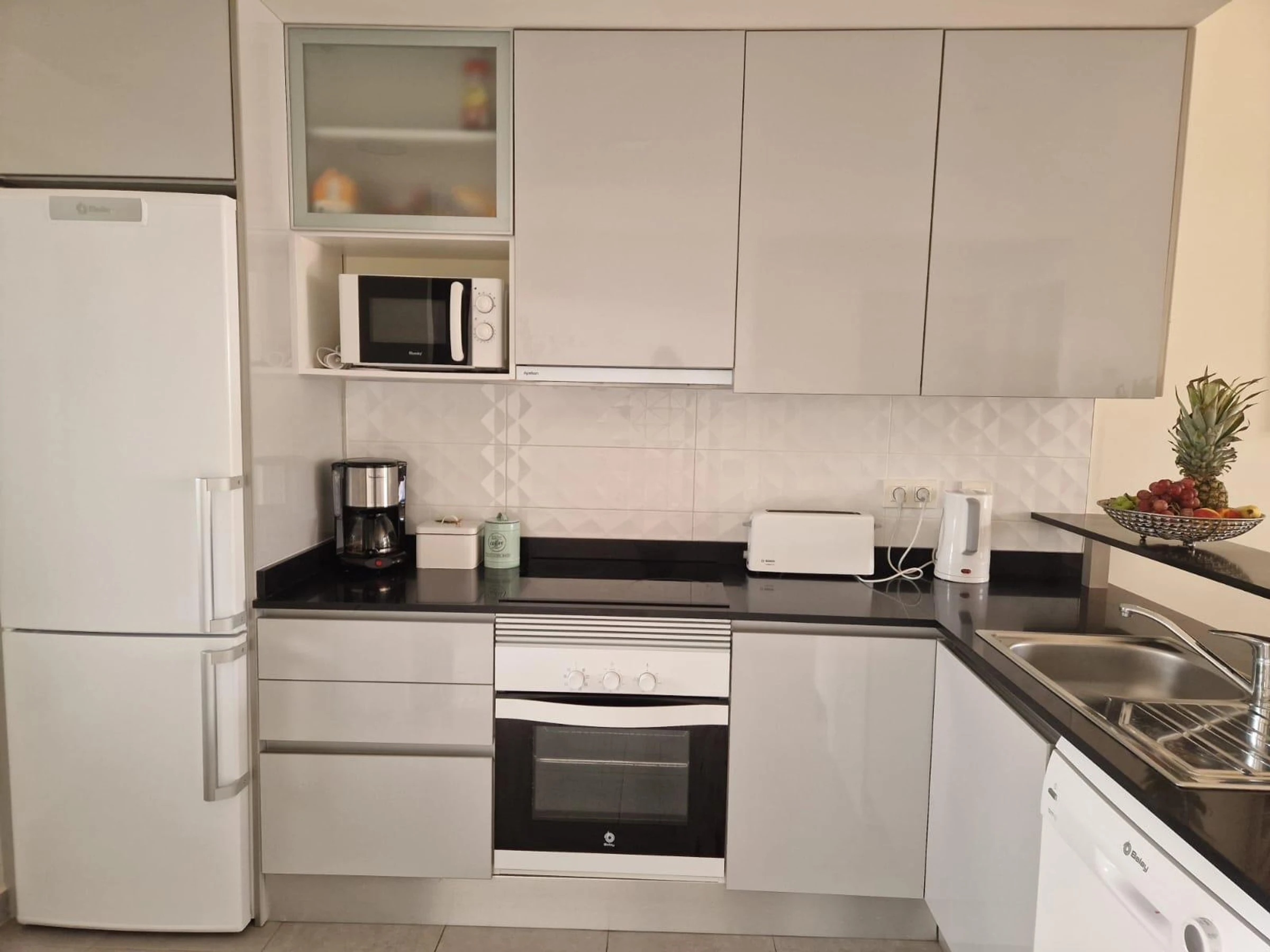 La cuisine, est équipée avec micro-ondes, four, congélateur, lave-vaisselle, cafetière et grille pain.