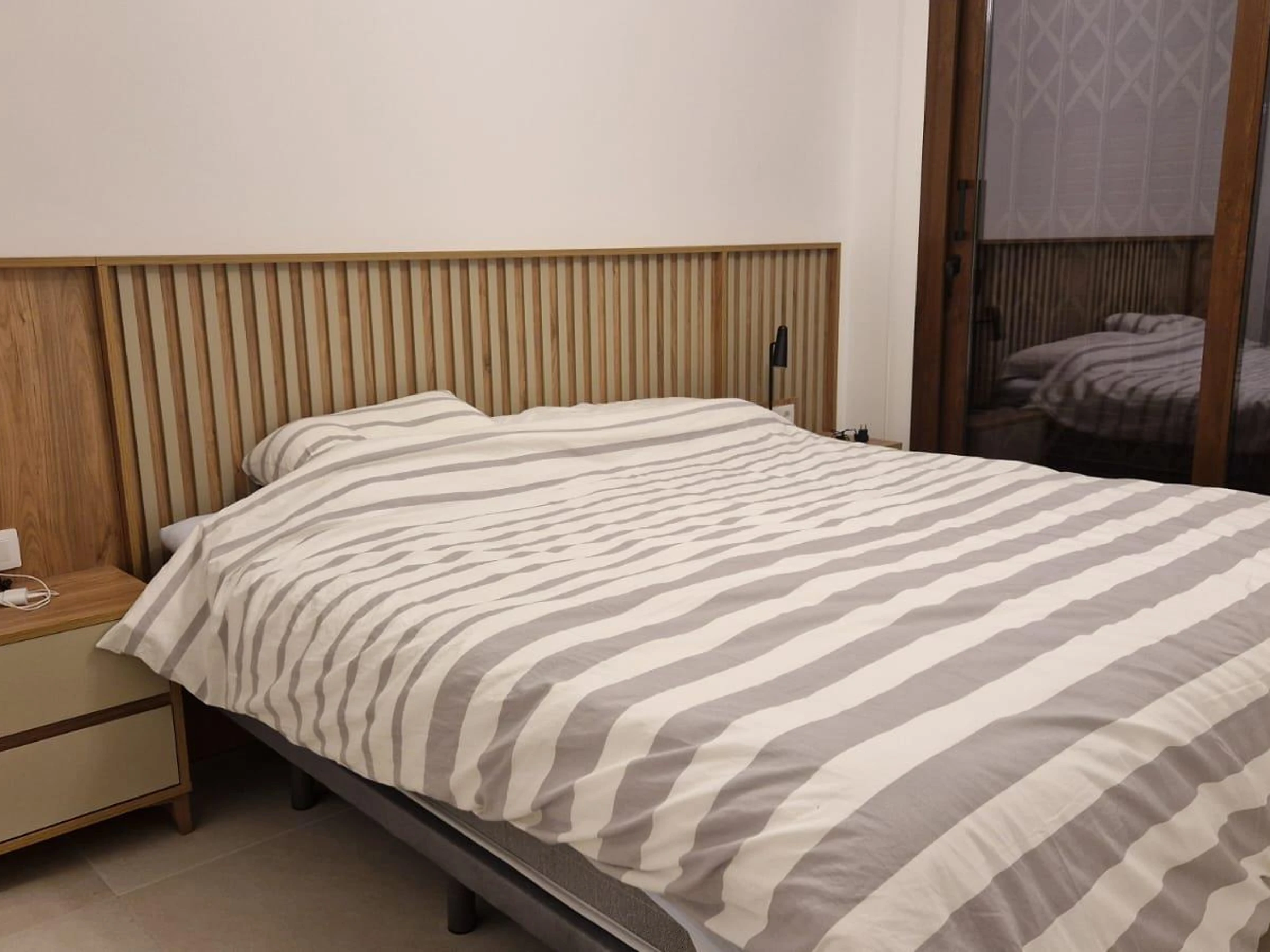 * chambre avec climatisation et lit queen size (mesurant 200 par 160 cm) et