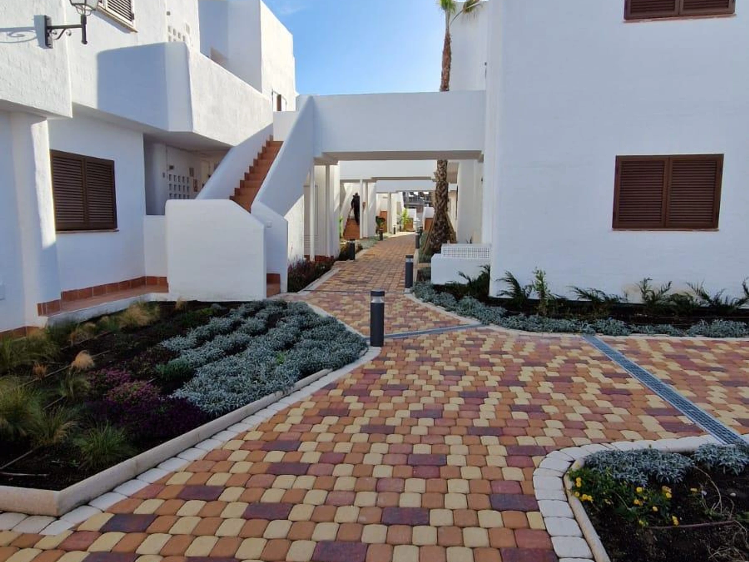 Appartement moderne et luxueux avec piscine commune à San Juan de los Terreros, en Andalousie, Espagne, pour 4 personnes. L'appartement est situé dans une station balnéaire, dans une zone résidentielle et montagneuse, proche des supermarchés et à 100 m de la plage.
