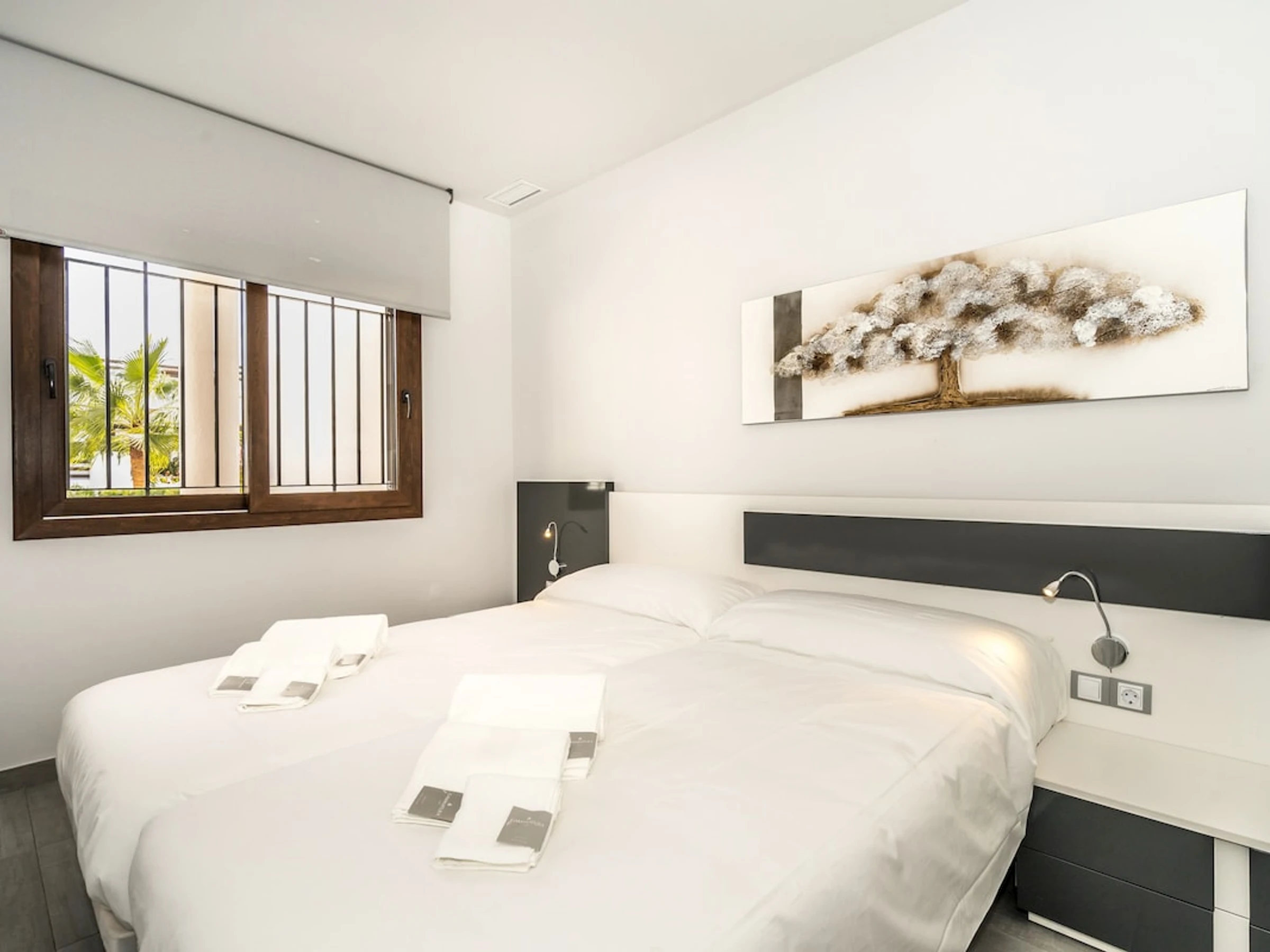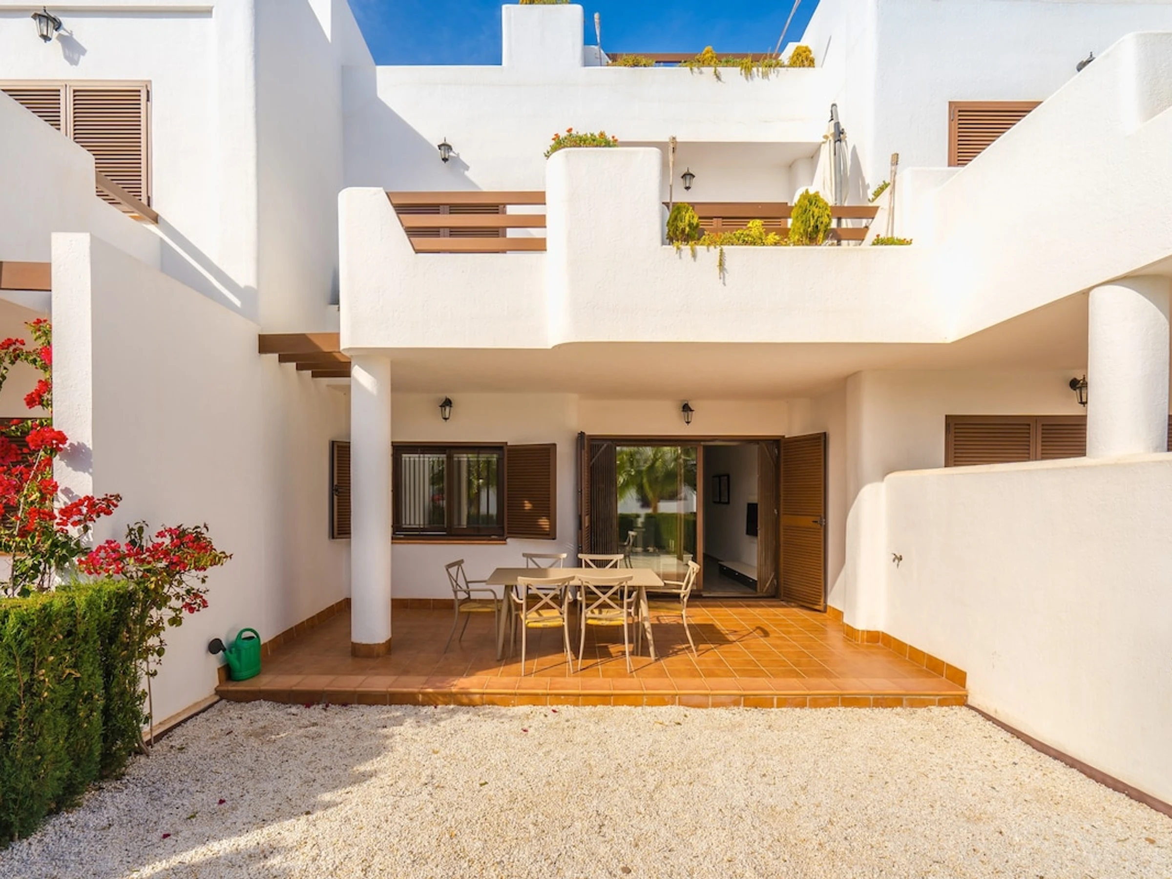 2 chambres à coucher et 2 salles de bain. Le logement offre de l'intimité, un jardin privé et un jardin commun verdoyant. Le comfort et la proximité de la plage, d'endroits pour faire du shopping et d'endroits pour sortir rendent cet appartement le logement idéal pour passer vos vacances en Espagne avec votre famille ou vos amis.