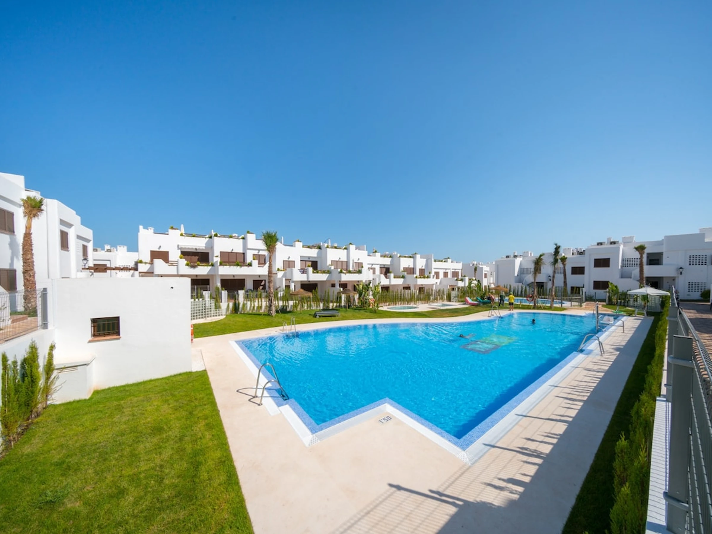Appartement charmant avec 2 piscines communes dont une chauffée à San Juan de los Terreros, Andalousie, Espagne pour 4 personnes. Situé dans une région balnéaire, près des restaurants et bars, des magasins et des supermarchés et à seulement 50 m de la plage.