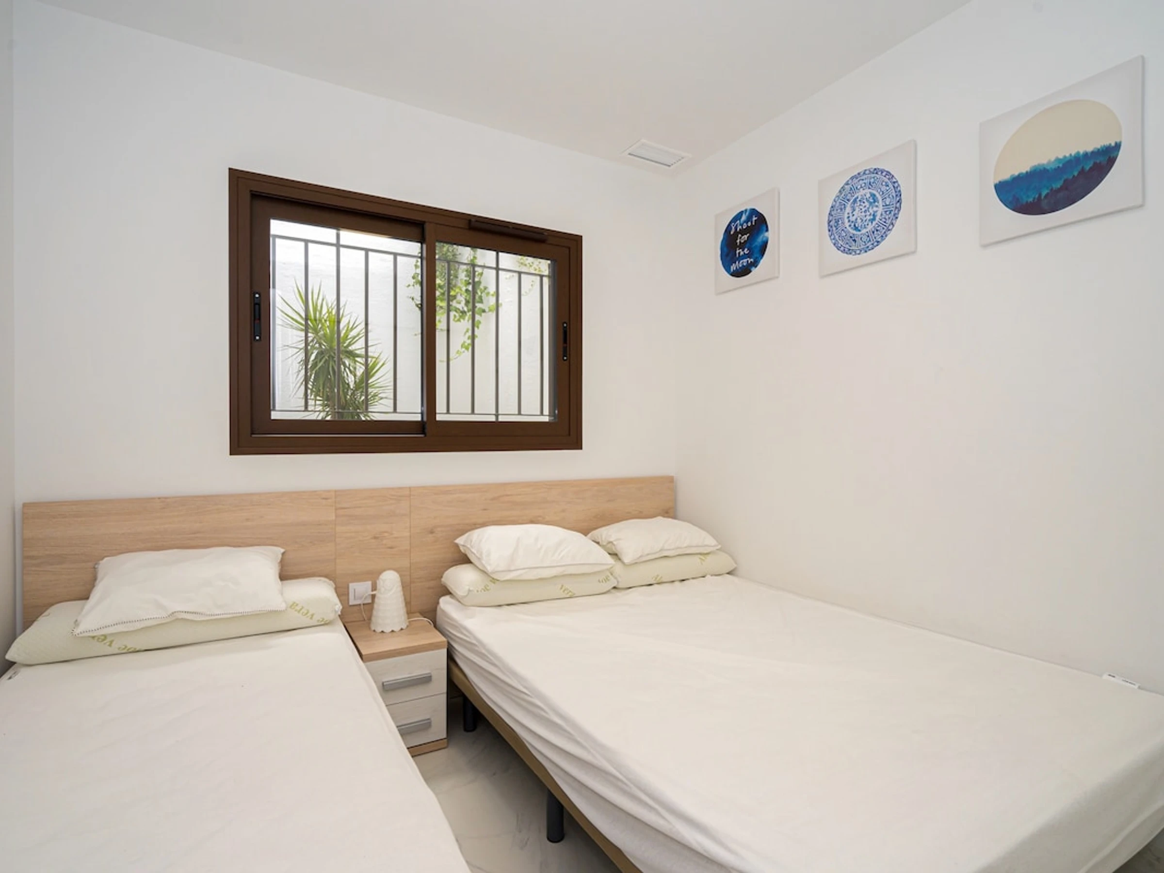 - chambre à coucher climatisée avec 1 lit double et 1 lit simple