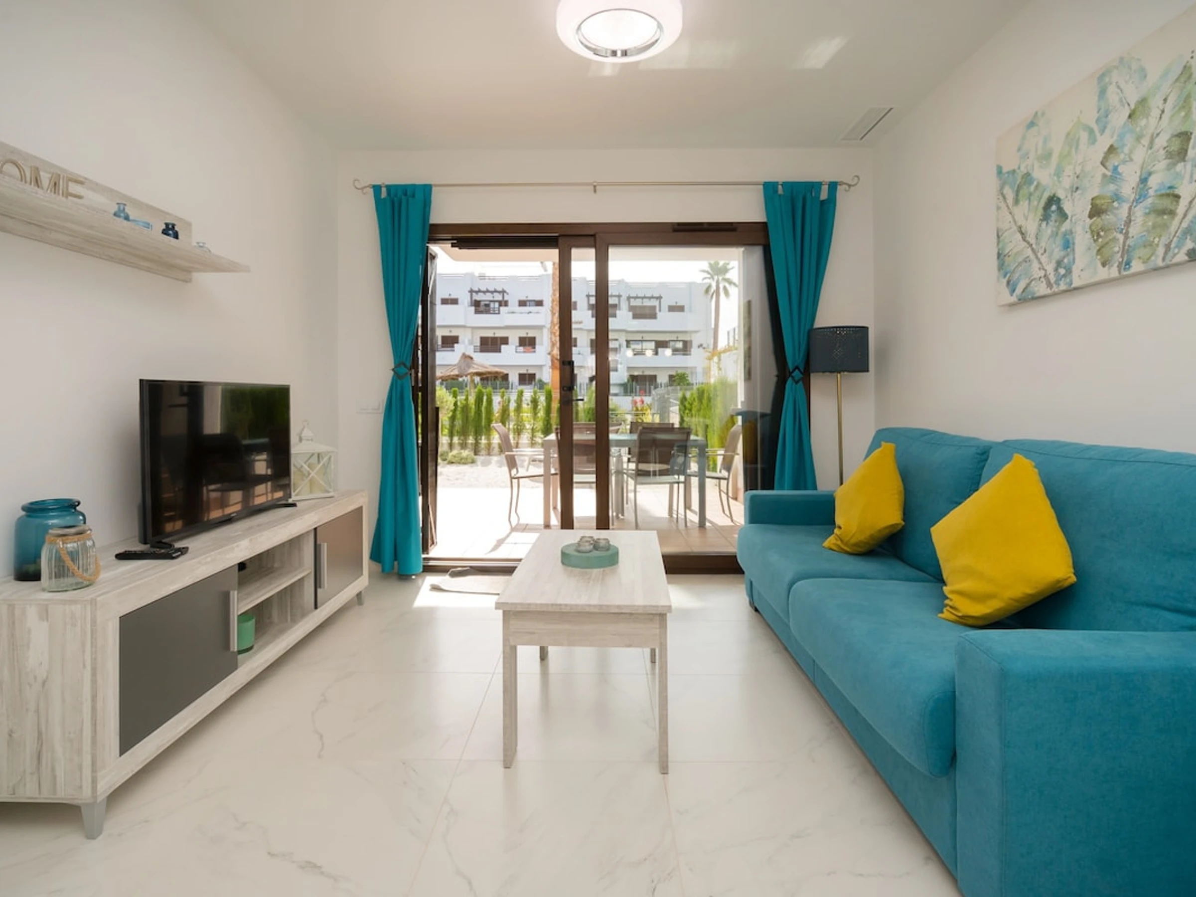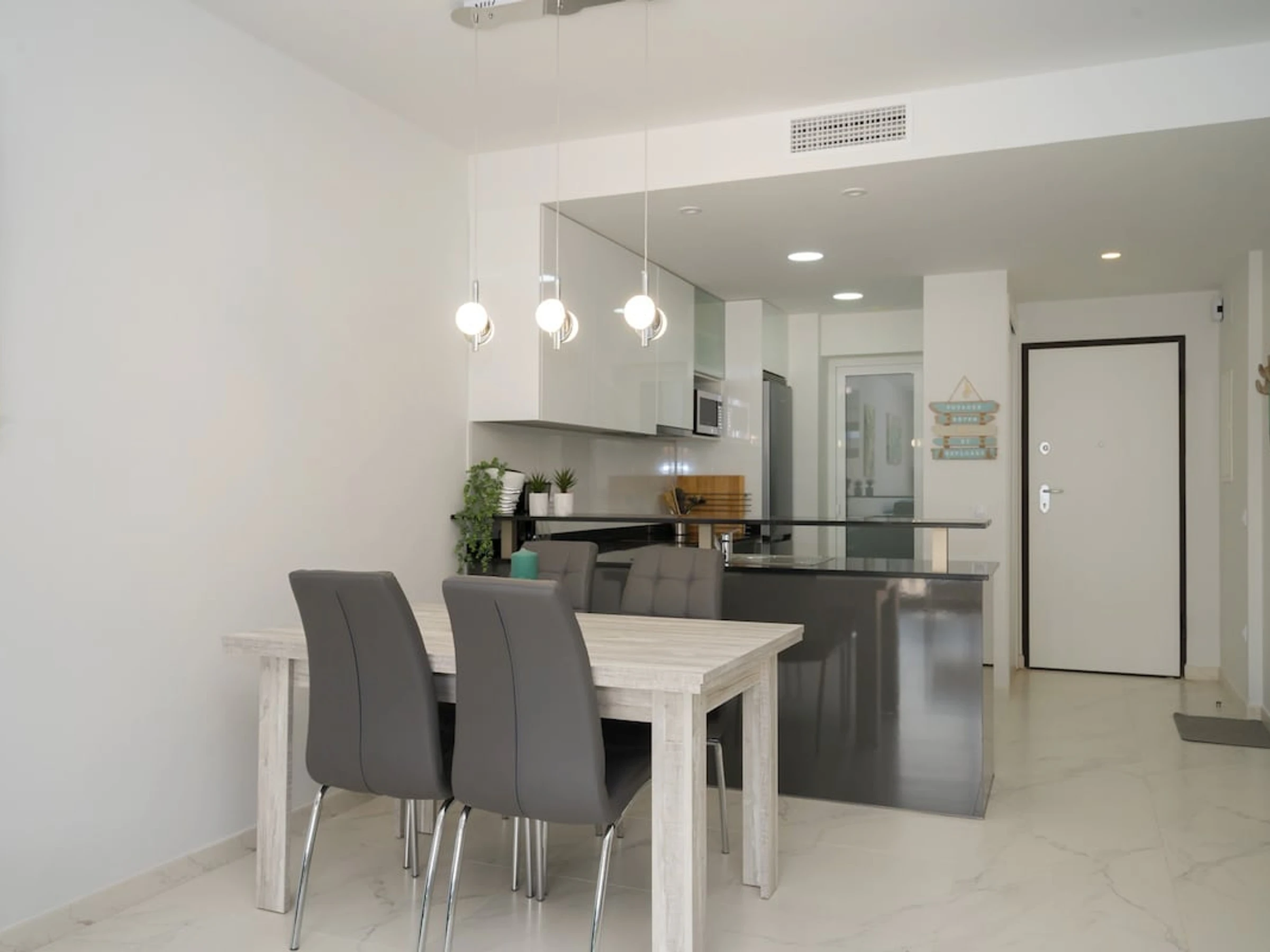 2 chambres à coucher et 1 salle de bain. Une magnifique zone commune verdoyante et une vue sur la piscine. La proximité de la plage, d'endroits pour faire du shopping et d'endroits pour sortir rendent cet appartement le logement idéal pour passer les vacances en Espagne avec votre famille ou vos amis.