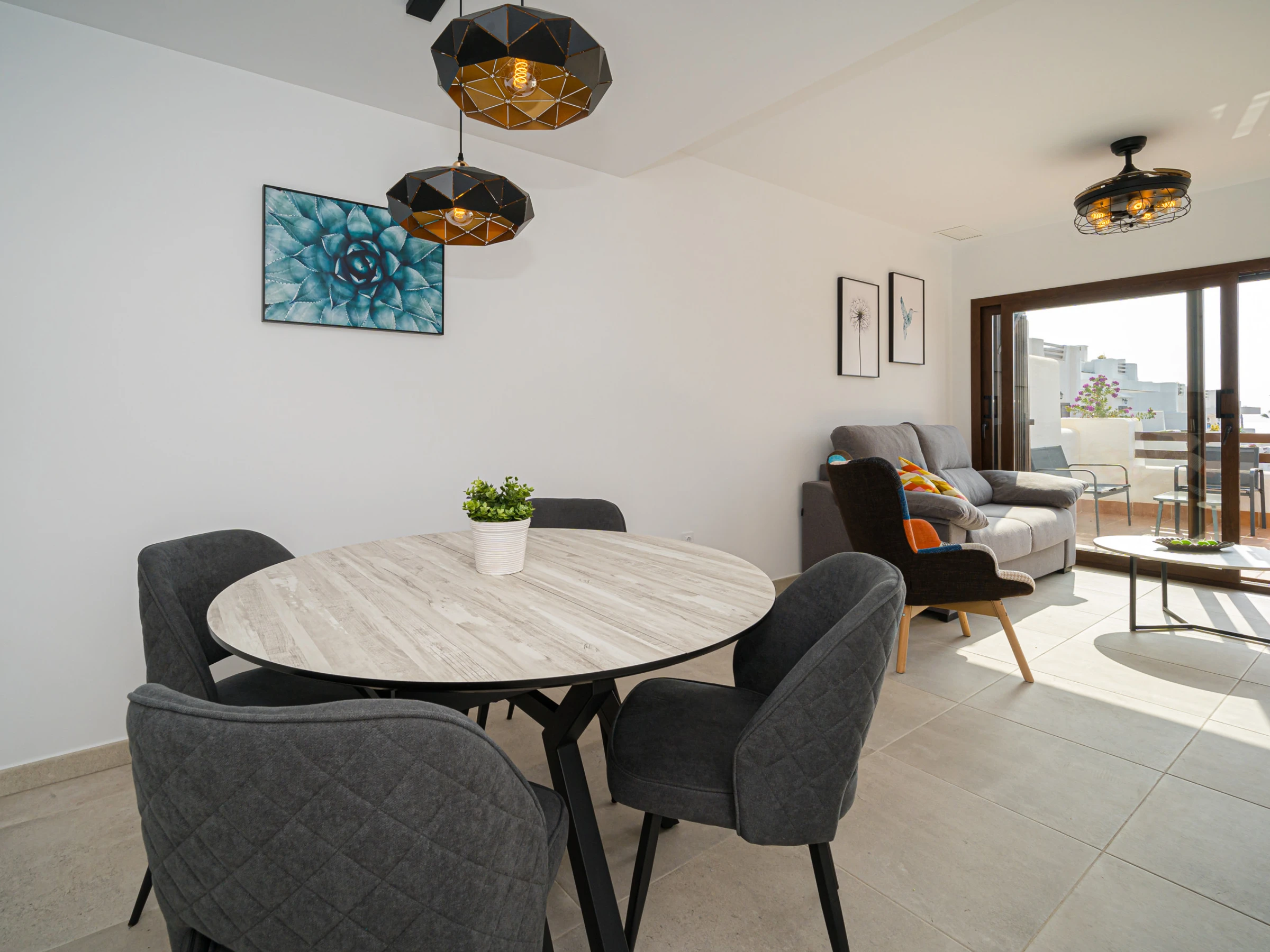 Elle dispose de mobilier de jardin, 70 m² de terrasse, lave-linge, sèche-linge, barbecue, fer à repasser, accès internet (wifi), sèche-cheveux, chauffage pompe à chaleur, climatisation dans tout le logement, piscine collective, piscine chauffée collective, 1 Télévision, tv satellite (Langues: Espagnol).