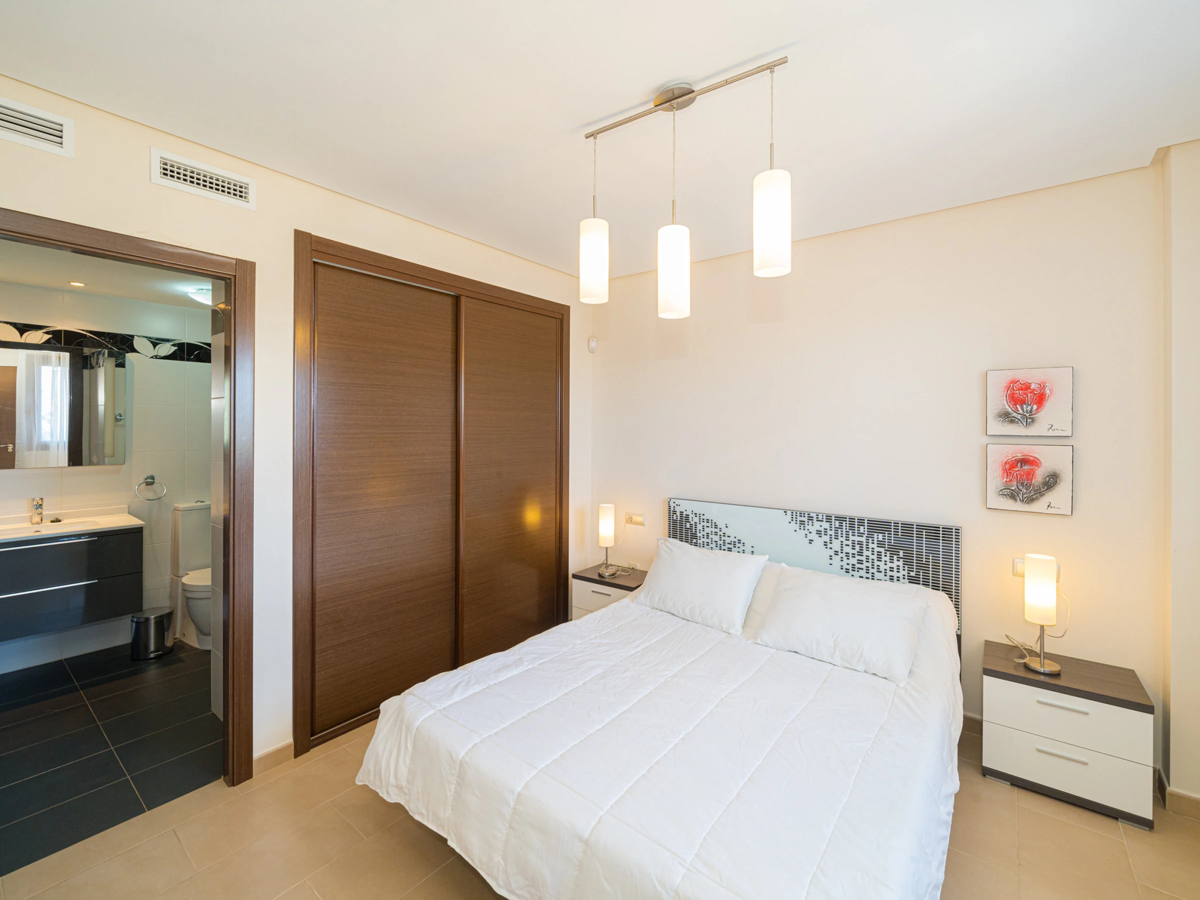 Elle dispose de jardin, mobilier de jardin, clôture, 20 m² de terrasse, lave-linge, fer à repasser, accès internet (wifi), sèche-cheveux, zone pour les enfants, chauffage pompe à chaleur, climatisation dans tout le logement, piscine collective, piscine chauffée collective, parking couvert même bâtiment, 1 Télévision, tv satellite (Langues: Espagnol).
