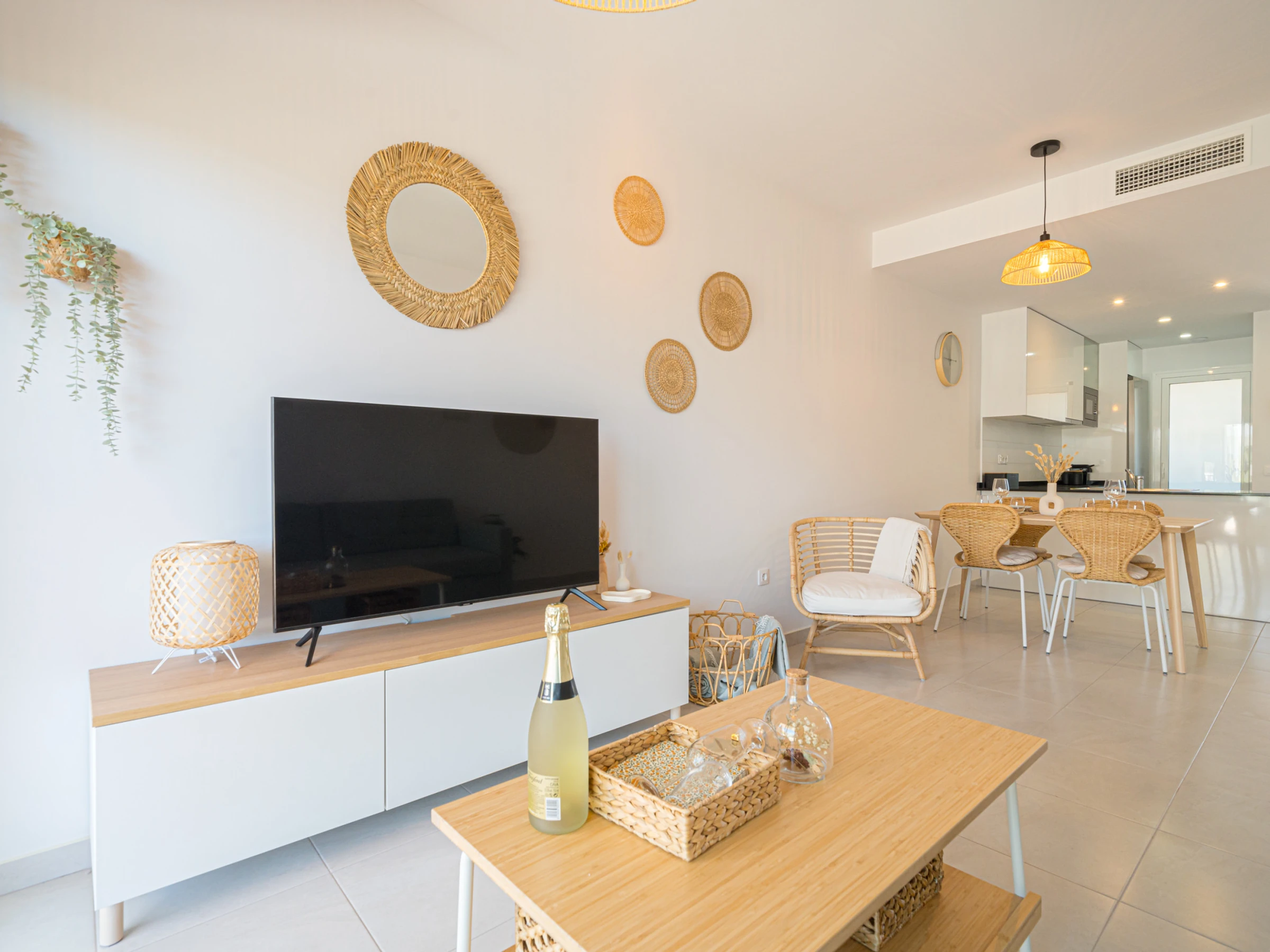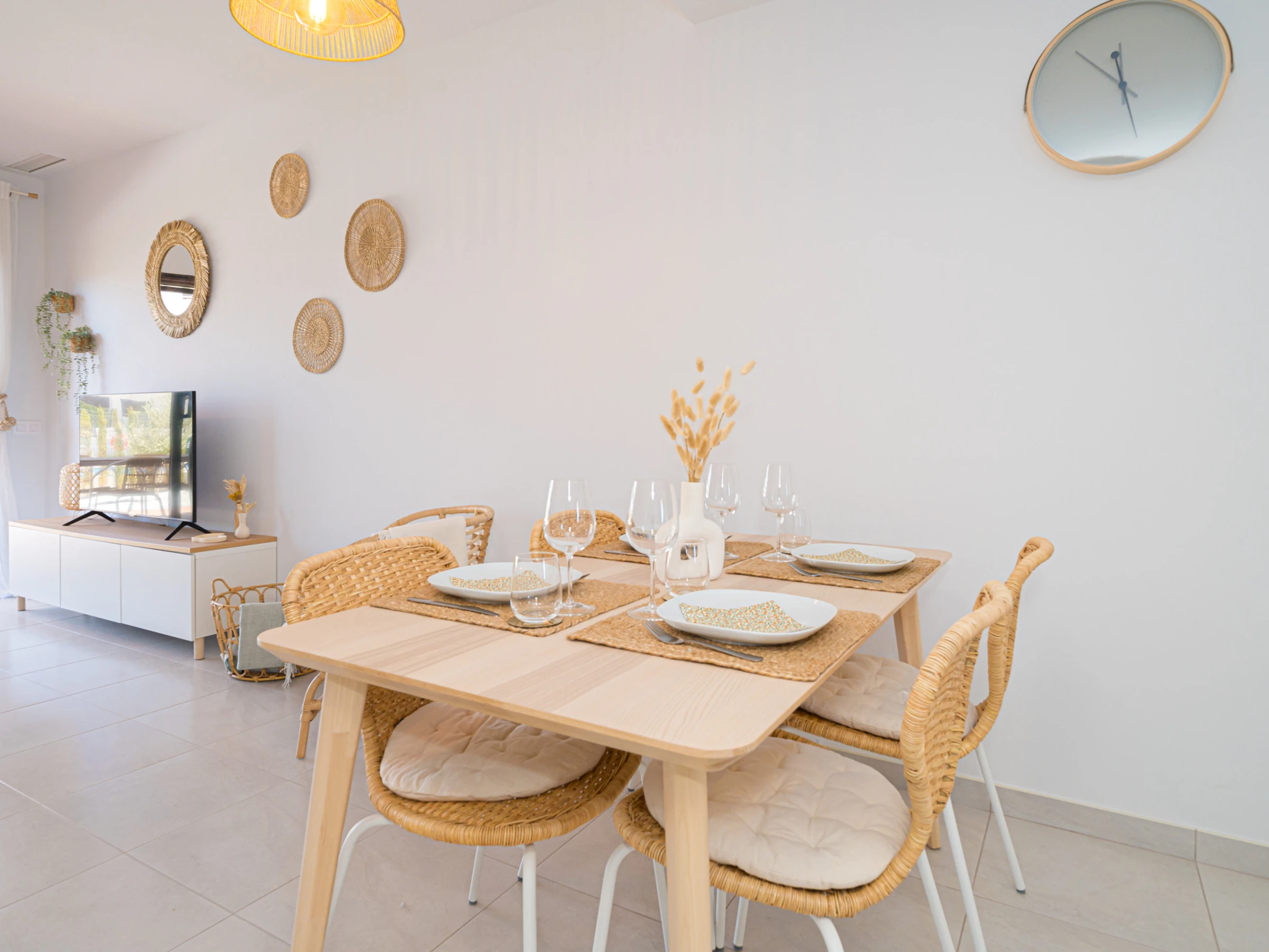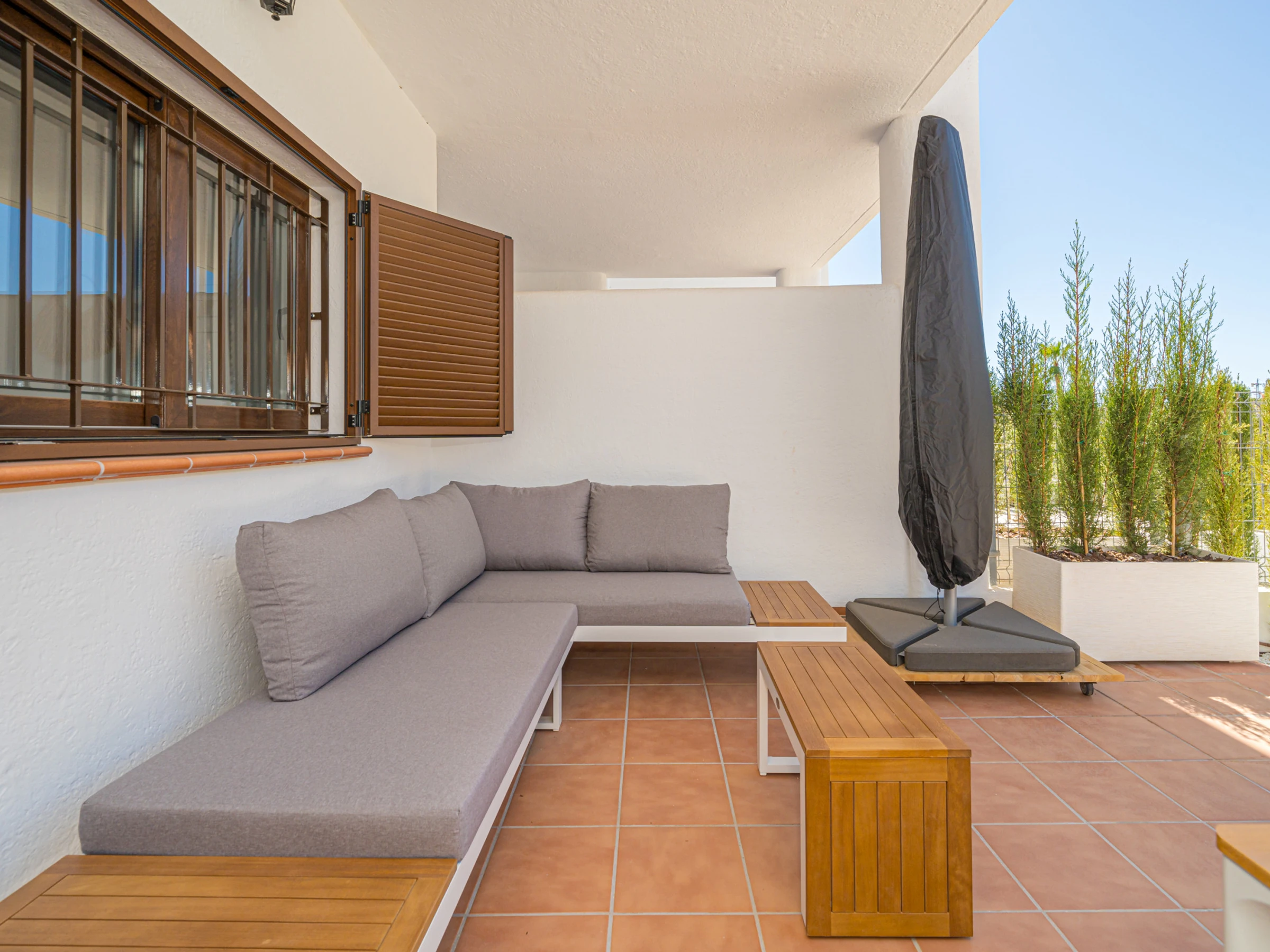 Elle dispose de jardin, mobilier de jardin, clôture, 25 m² de terrasse, lave-linge, fer à repasser, accès internet (wifi), sèche-cheveux, zone pour les enfants, chauffage central, climatisation dans tout le logement, piscine collective, parking couvert même bâtiment, 1 Télévision, tv satellite (Langues: Espagnol).
