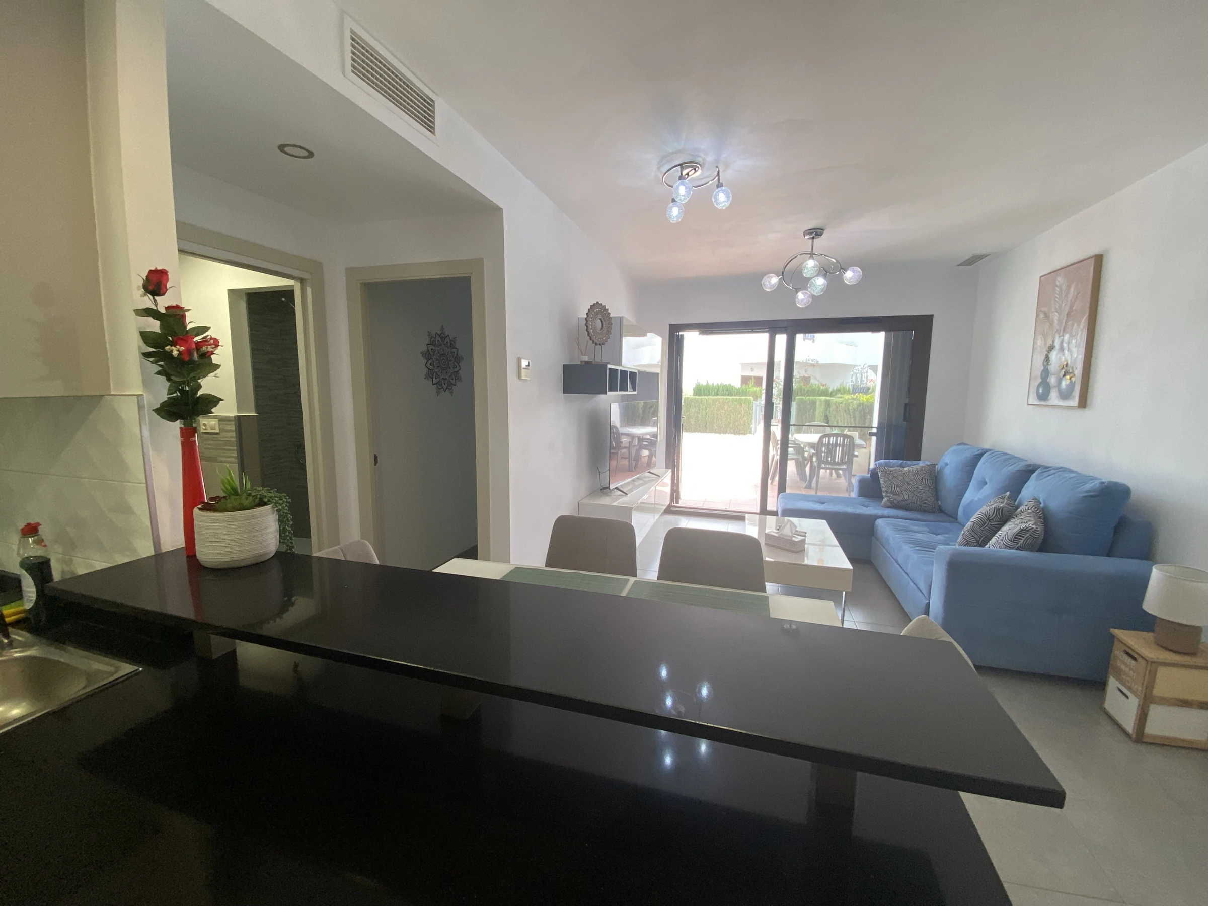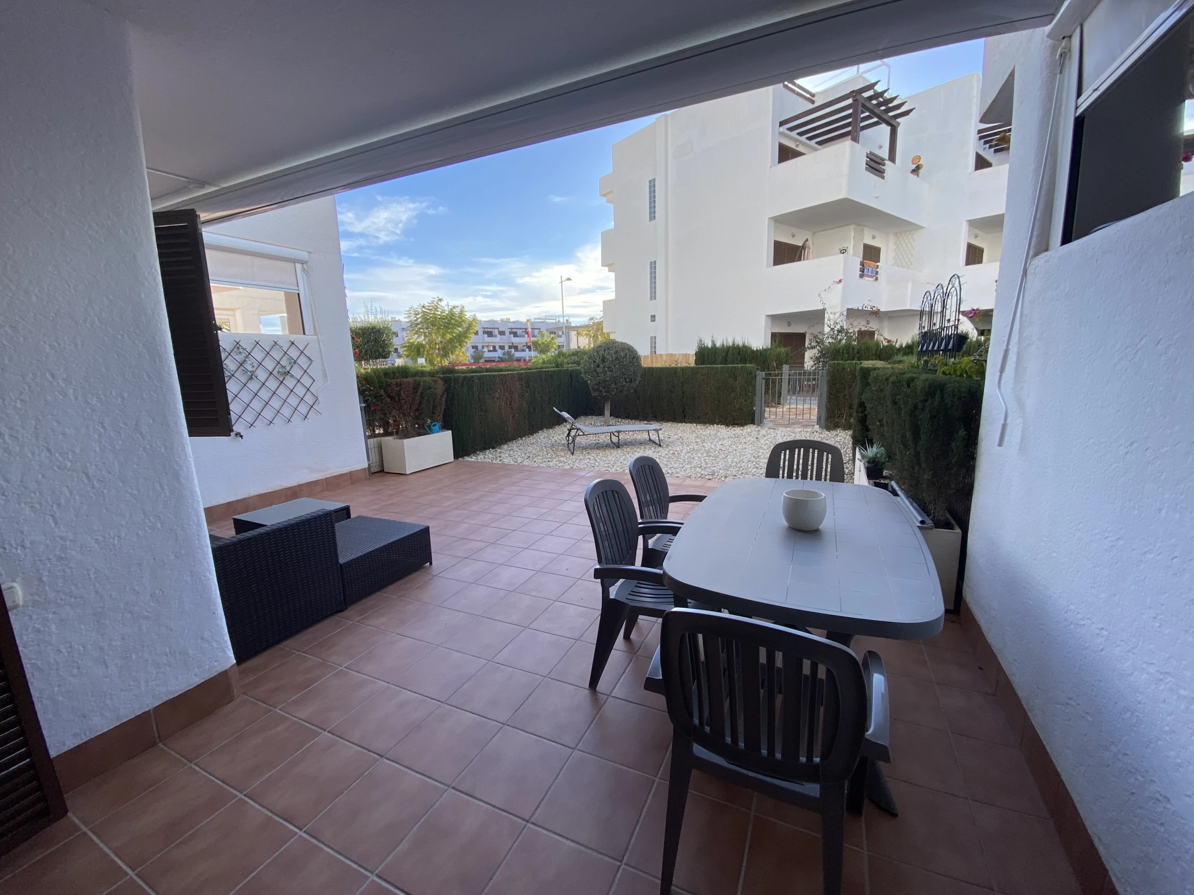 L'appartement à San Juan de los Terreros dispose de 1 chambre(s) et peut accueillir 4 personnes. Logement de 60 m² meublé avec goût et de construction récente. Il se trouve à 500 m du supermarché, 500 m du restaurant, 800 m de la plage de sable, 1 km de la ville "San Juan de los Terreros", 8 km du terrain de golf "Aguilon golf", 90 km de l'aéroport "Almeria", 90 km de l'aéroport "Murcia" et est situé dans une zone idéale pour les familles et près de la mer. Il dispose d'un ascenseur, d'un jardin, de mobilier de jardin, d'une parcelle clôturée, d'une terrasse de 20 m², d'un lave-linge, d'un fer à repasser, d'un accès internet (wifi), d'un sèche-cheveux, d'un chauffage central, d'un climatiseur dans tout le logement, d'une piscine communautaire, 1 téléviseur, télévision satellite (Langues : Espagnol). La cuisine américaine, à vitrocéramique, est équipée d'un réfrigérateur, d'un micro-ondes, d'un four, d'un congélateur, d'un lave-vaisselle, de vaisselle/couverts, d'ustensiles/cuisine, d'une cafetière, d'un grille-pain, d'un bouilloire et d'un presse-agrumes.