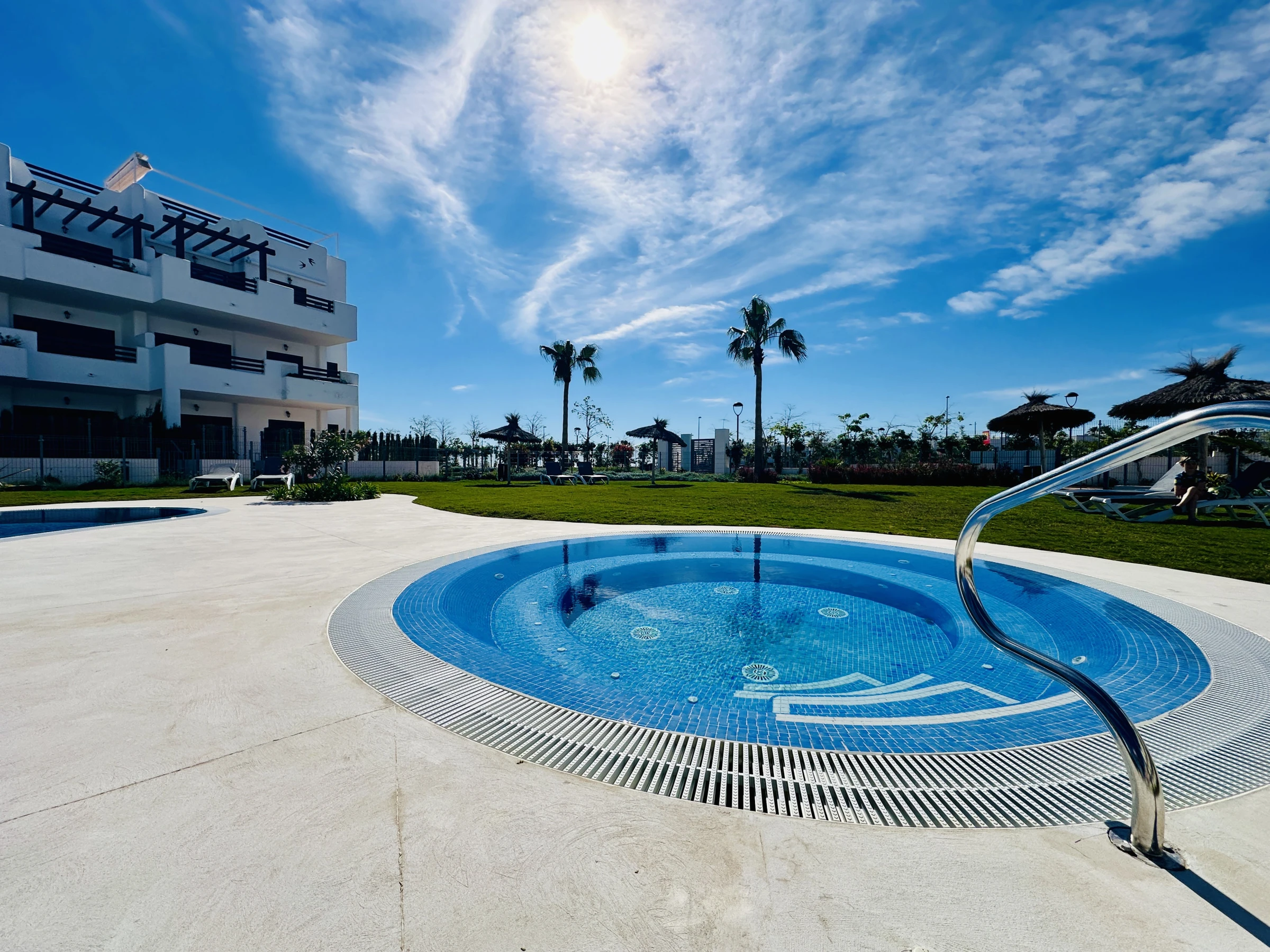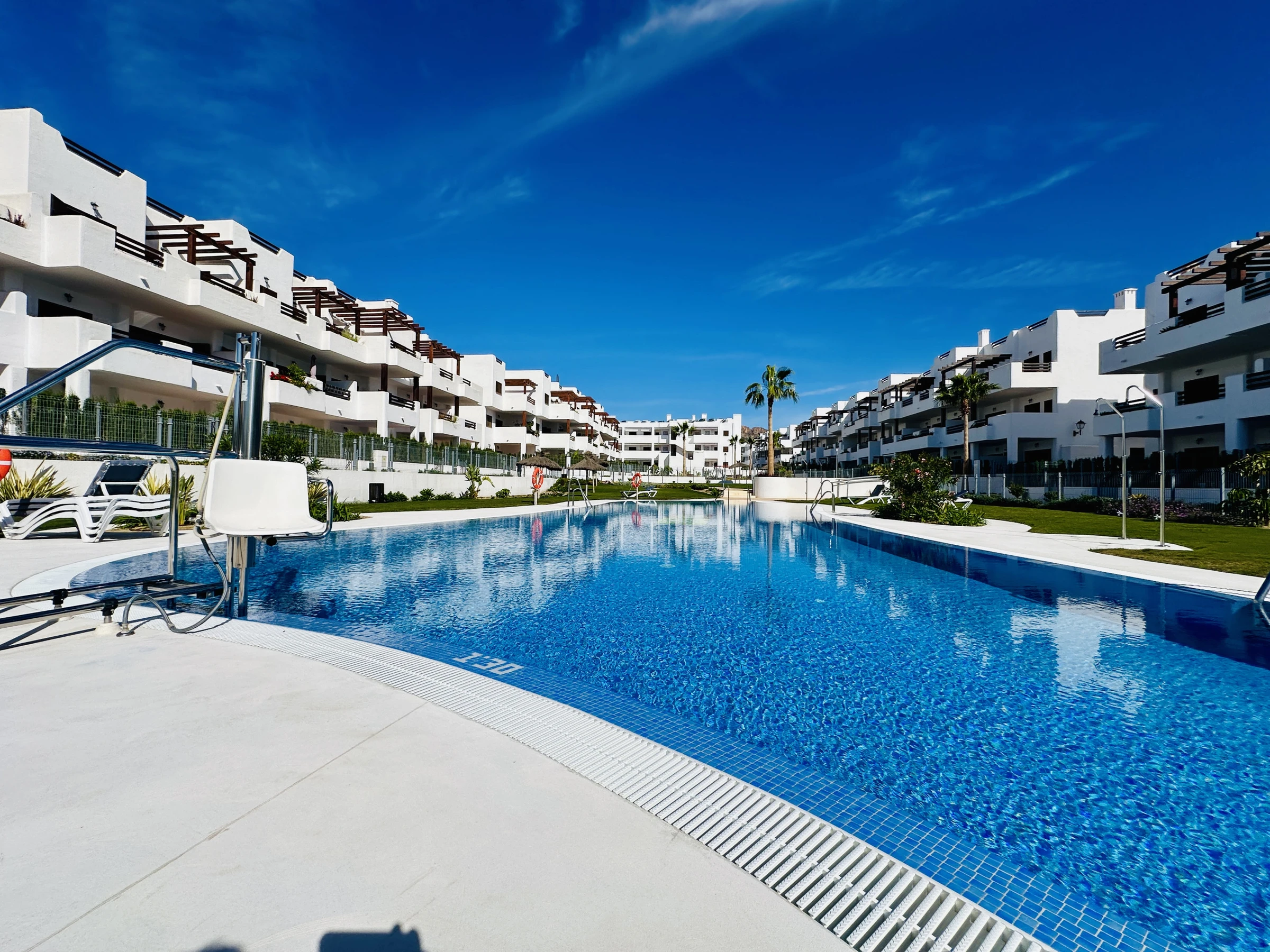 L'appartement à San Juan de los Terreros dispose de 2 chambre(s) et peut accueillir 4 personnes. Logement de 70 m² meublé avec goût et de construction récente, avec vue sur le jardin et la piscine. Il se trouve à 400 m du supermarché, 400 m du restaurant, 400 m du café, 500 m de la plage de sable, 1 km de la ville "San Juan de los Terreros", 8 km du terrain de golf "Aguilon Golf", 20 km de l'hôpital "Hurcal-Overa", 90 km de l'aéroport "Almeria", 90 km de l'aéroport "Murcia" et est situé dans une zone idéale pour les familles et près de la mer. Il dispose d'un ascenseur, de mobilier de jardin, d'une terrasse de 15 m², d'un lave-linge, d'un fer à repasser, d'un accès internet (wifi), d'un sèche-cheveux, d'un balcon, d'une zone pour enfants, d'un chauffage central, d'un climatiseur dans tout le logement, d'une piscine communautaire, d'un parking couvert dans le même bâtiment, 1 téléviseur, télévision satellite (Langues : Espagnol). La cuisine américaine, à vitrocéramique, est équipée d'un réfrigérateur, d'un micro-ondes, d'un four, d'un congélateur, d'un lave-vaisselle, de vaisselle/couverts, d'ustensiles/cuisine, d'une cafetière, d'un grille-pain, d'un bouilloire et d'un presse-agrumes.