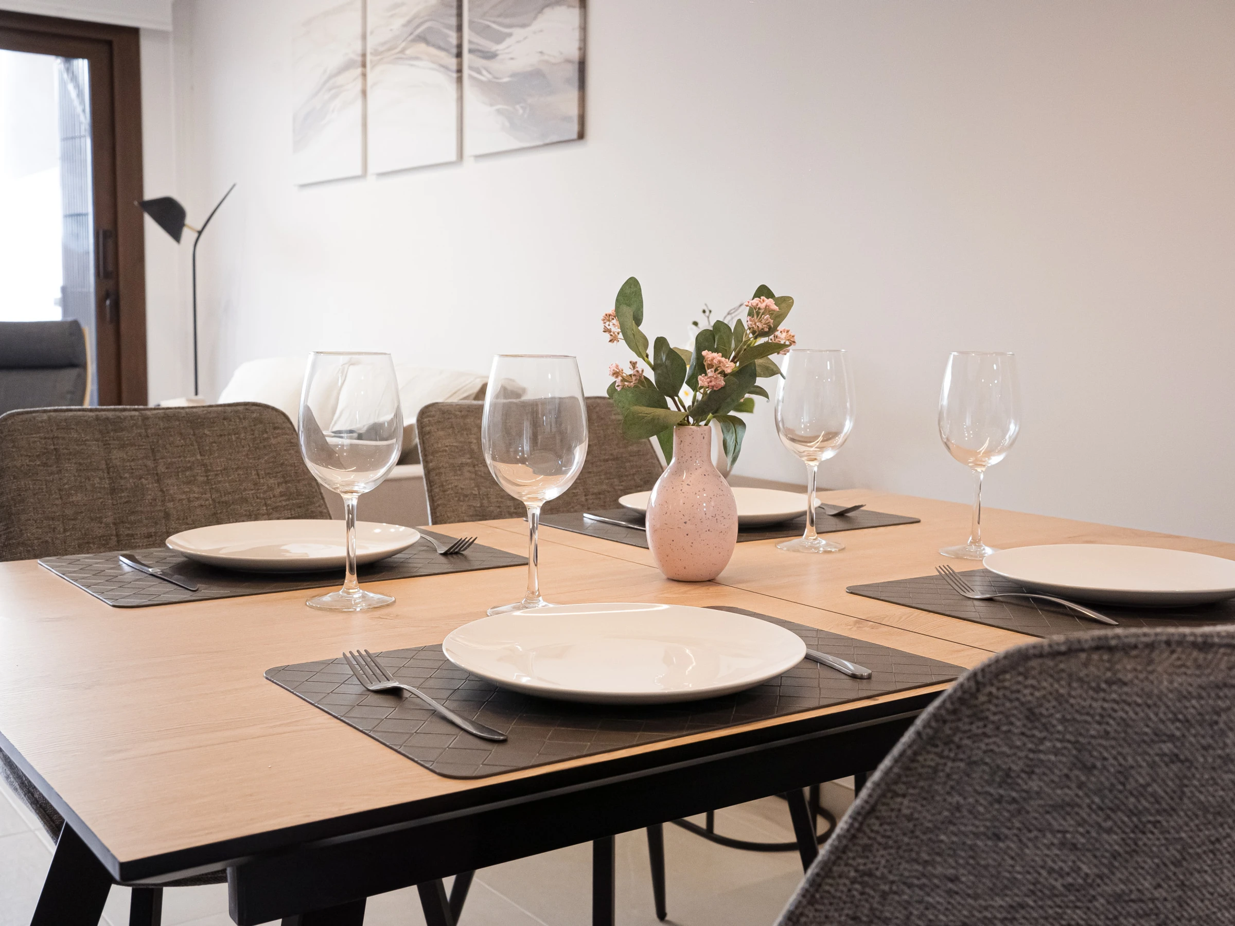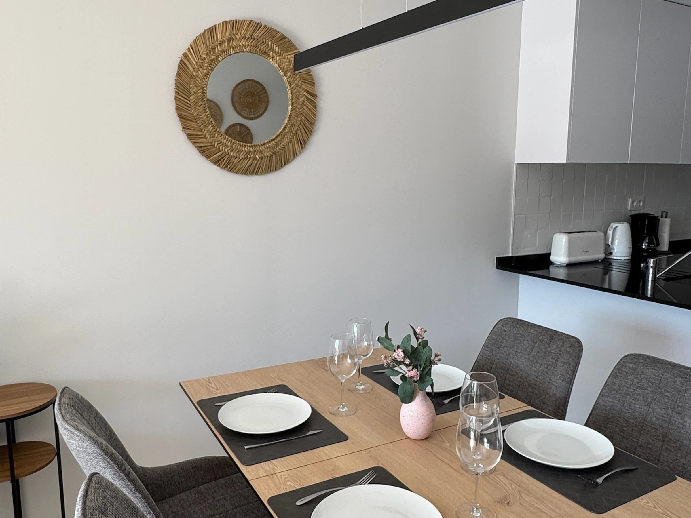 L'appartement dispose de deux chambres confortables pouvant accueillir jusqu'à 4 personnes, avec une disposition comprenant un lit double et deux lits individuels. Il dispose de deux salles de bains complètes avec douche, ce qui facilite la cohabitation et la confidentialité des invités.