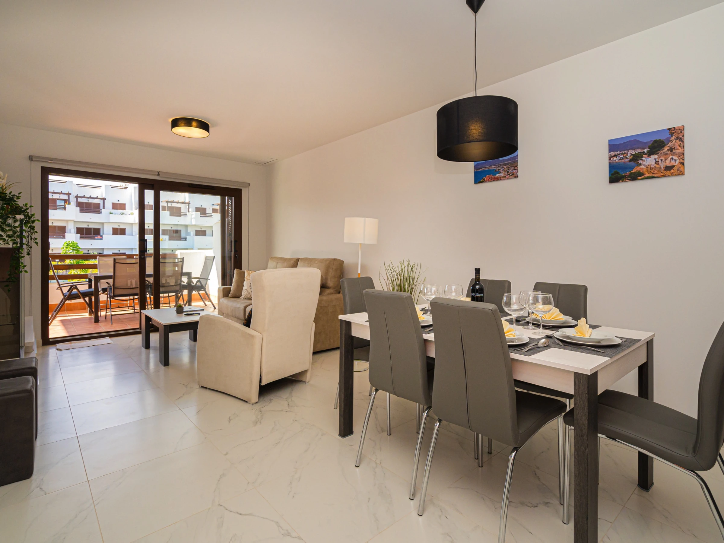 Logement de 85 m² meublé avec goût et de construction récente, avec vue sur la piscine.