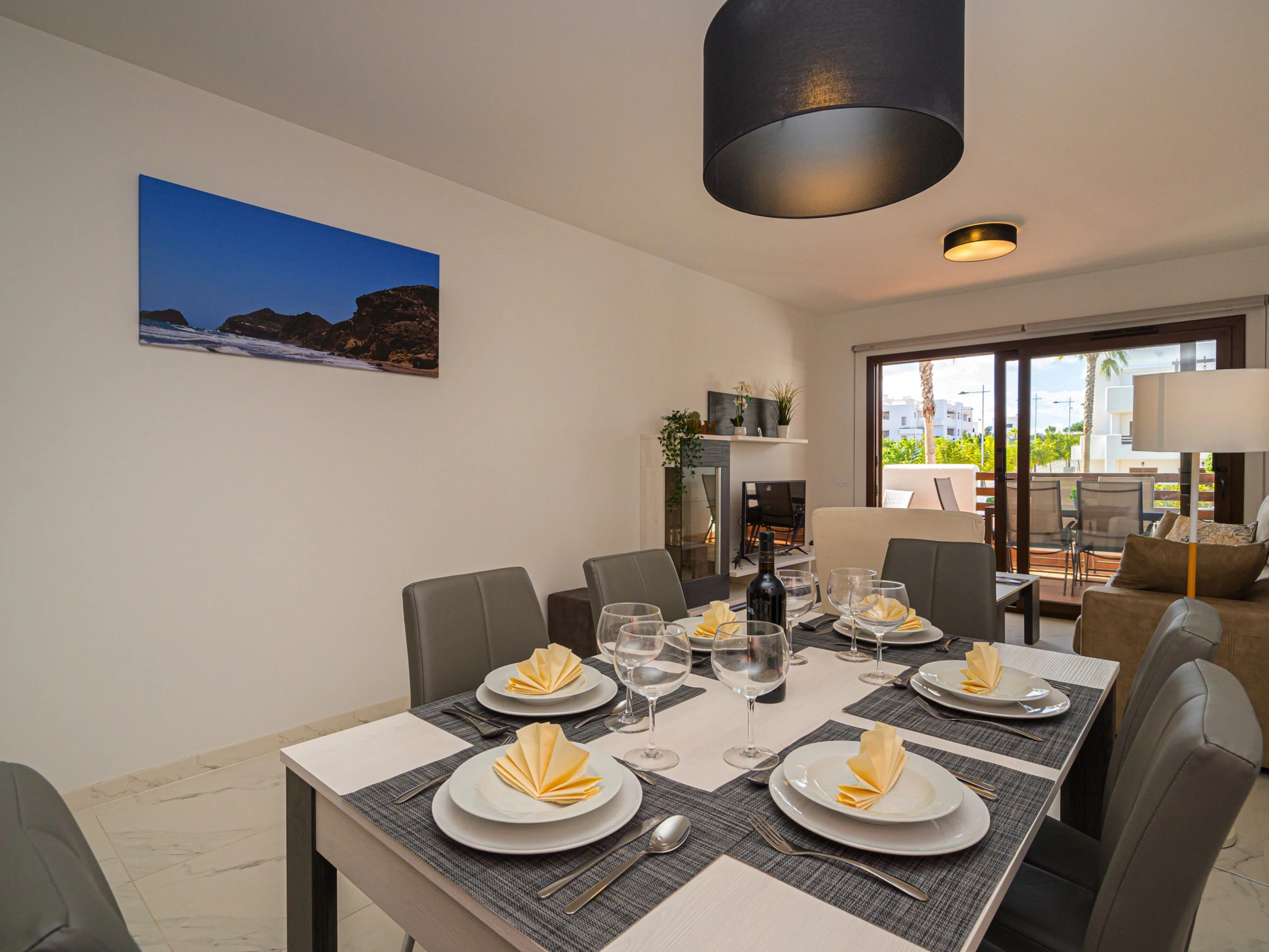 La location se trouve à 900 m de la plage de sable, 900 m du super-marché, 900 m du restaurant, 3 km de la ville, 5 km du domaine de Golf, 80 km de l'aéroport "Murcia", 80 km de l'aéroport "Almeria" et il est situé dans une zone idéale pour familles zone et près de la mer.