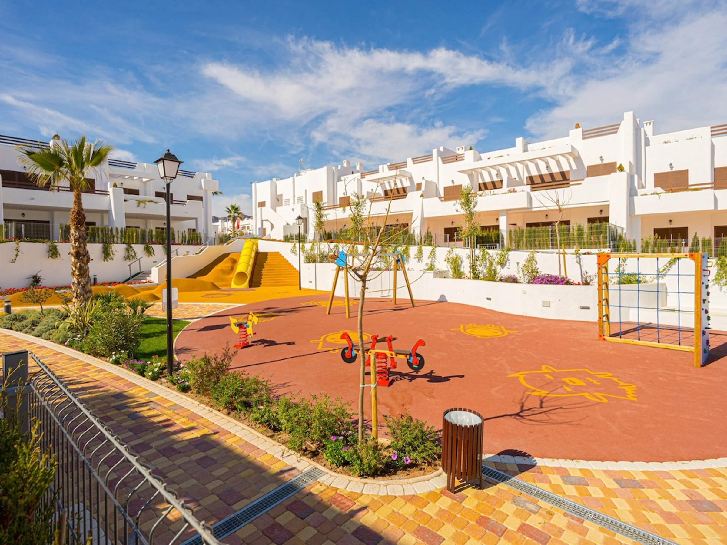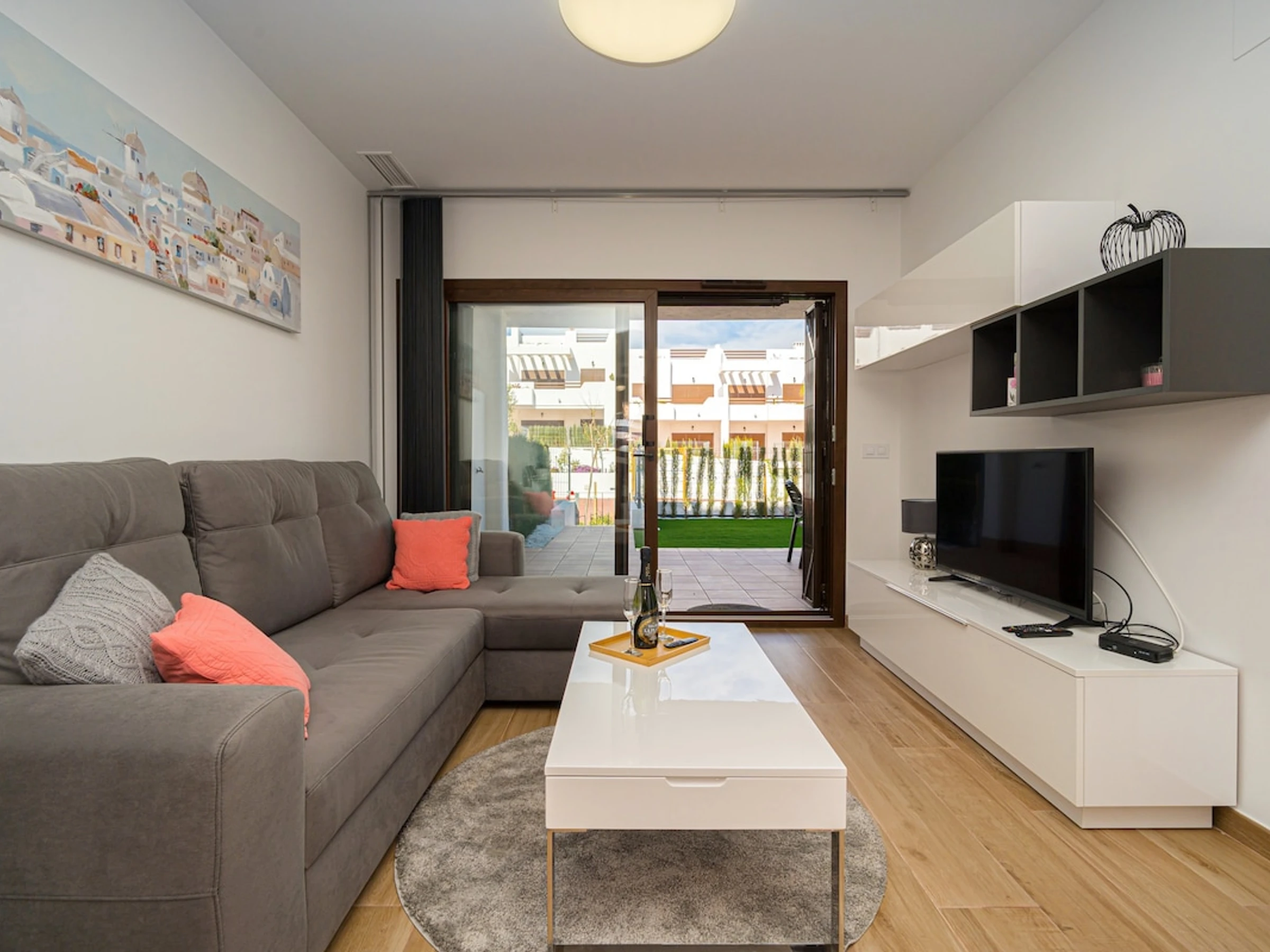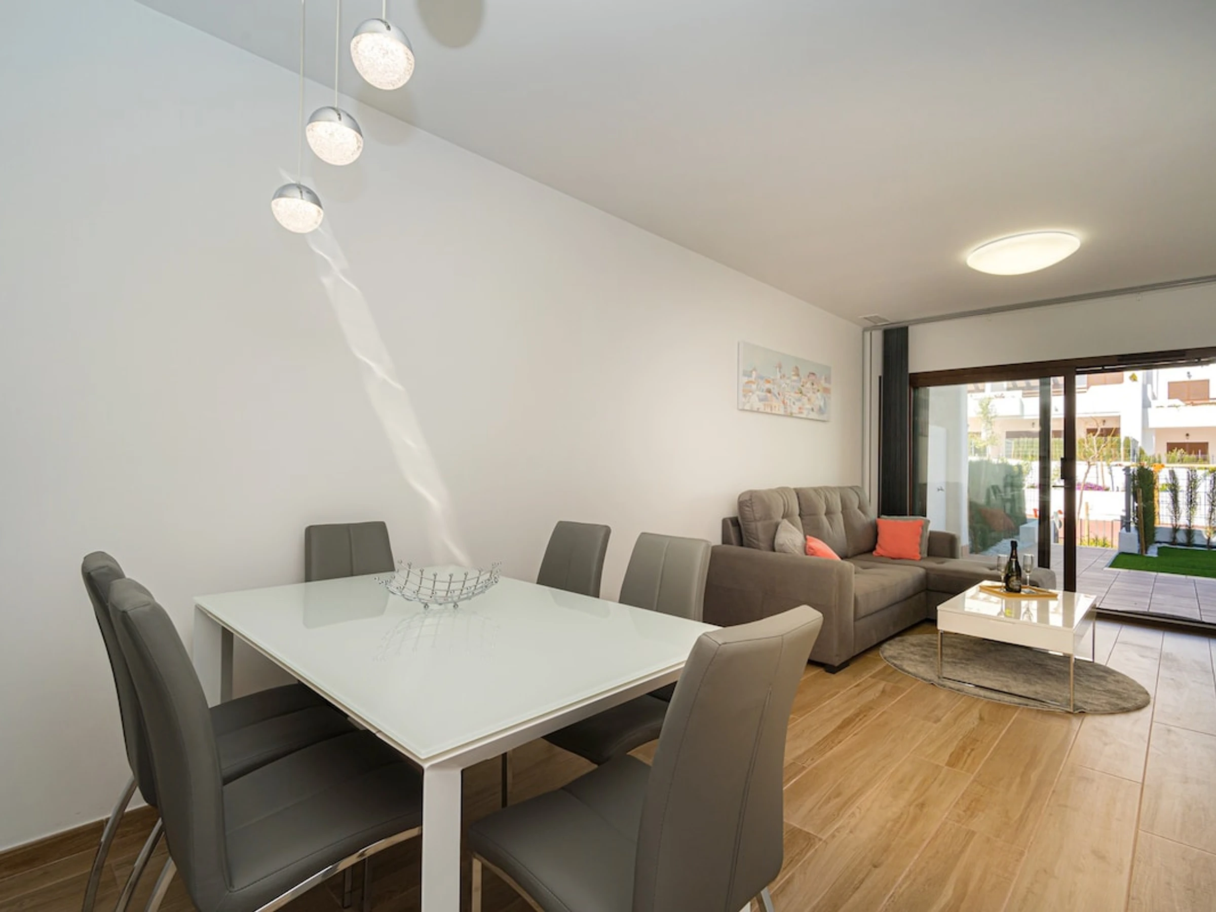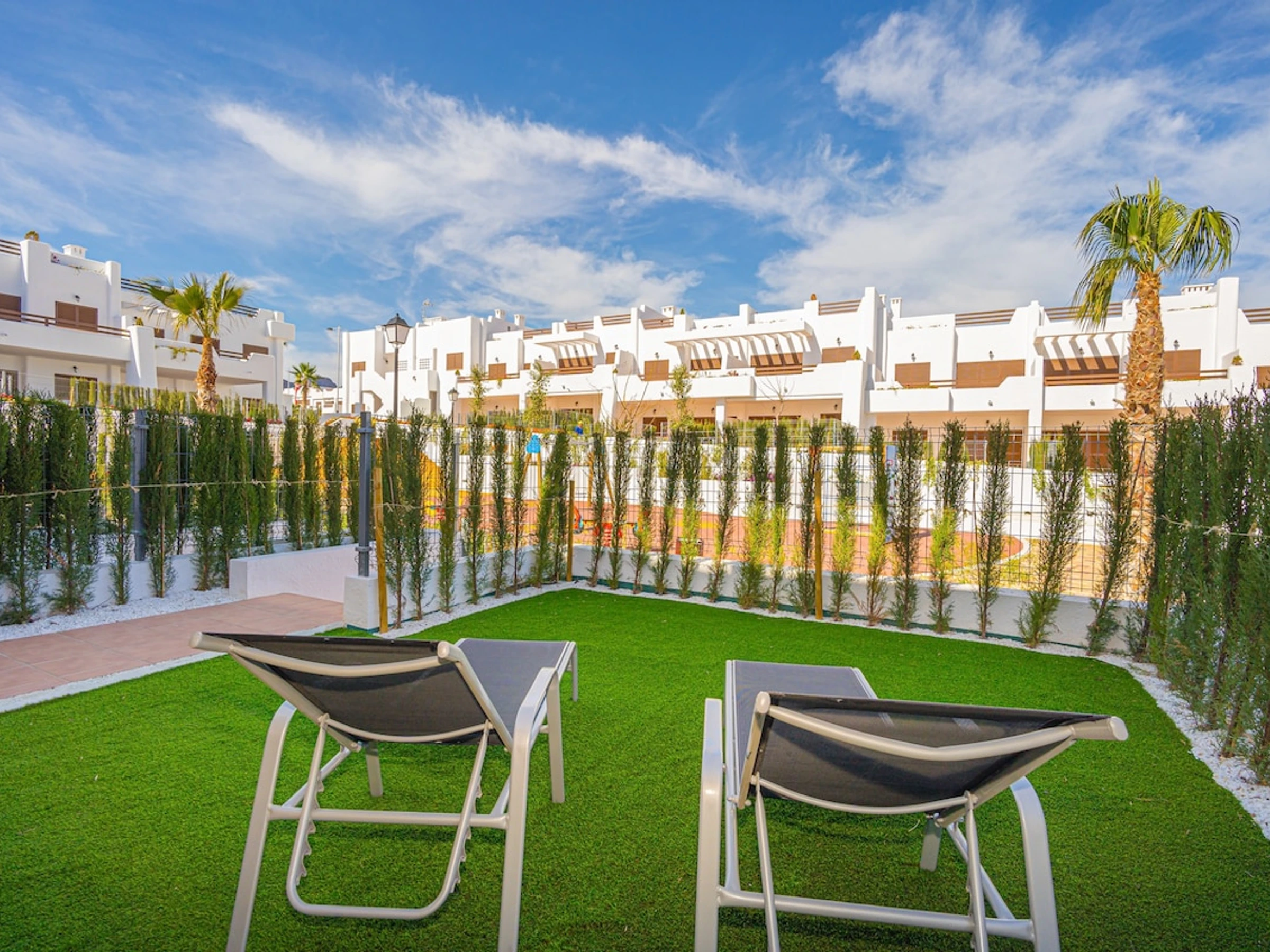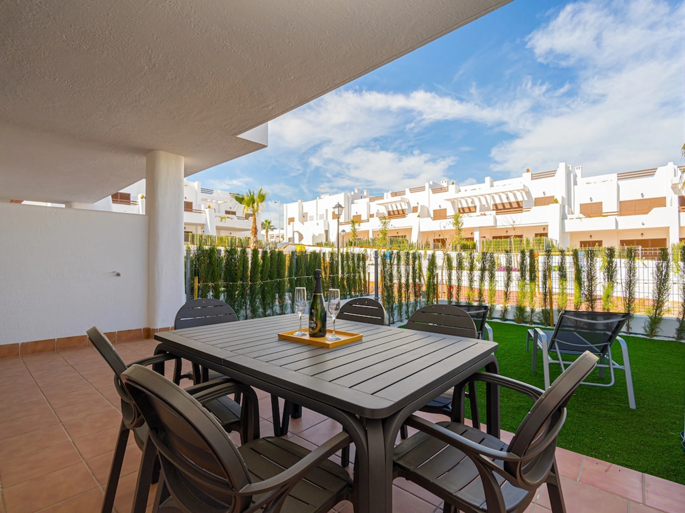 3 chambres à coucher et 2 salles de bain. Le logement offre de l'intimité et un jardin commun verdoyant. Le comfort et le voisinage de la plage, d'endroits pour faire du shopping et d'endroits pour sortir rendent cet appartement le logement idéal pour passer vos vacances en Espagne avec votre famille ou vos amis.