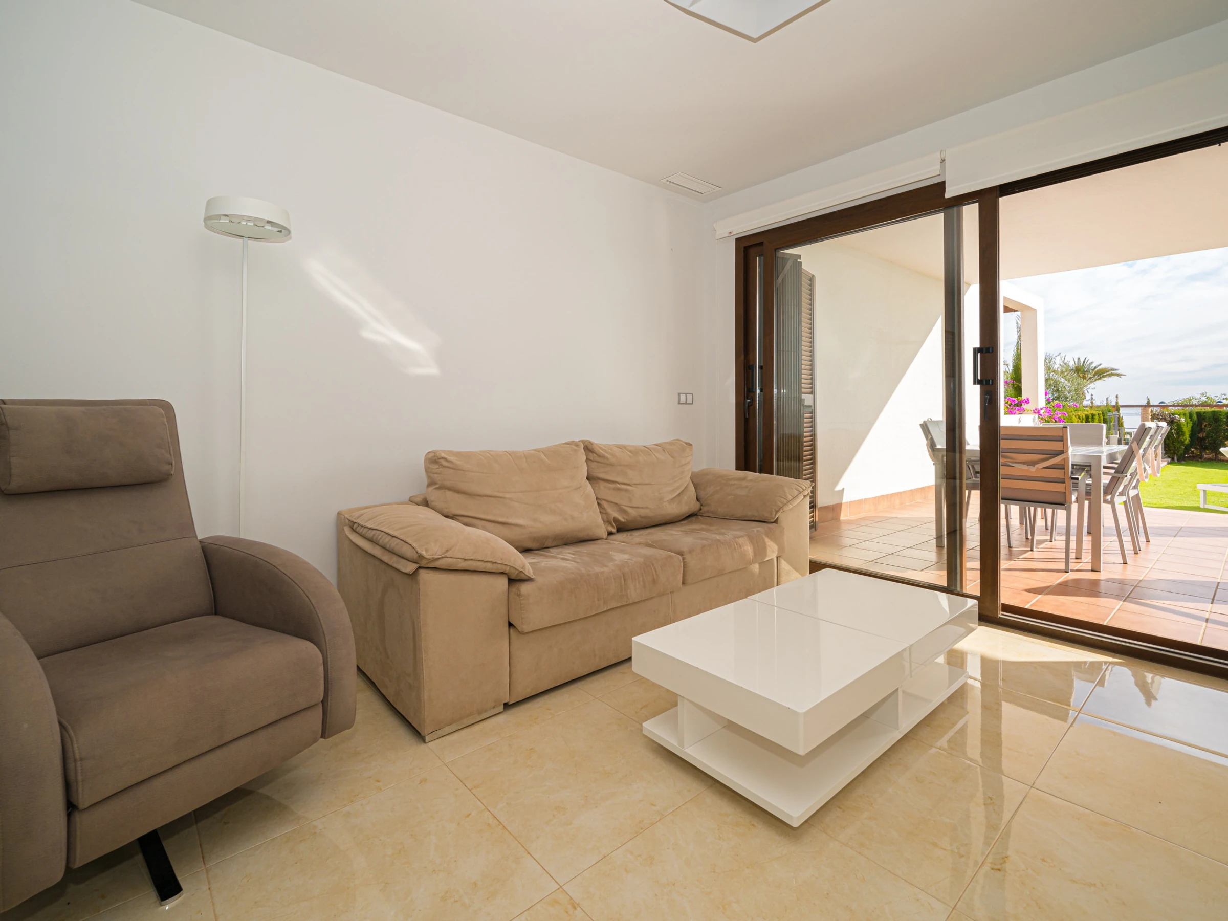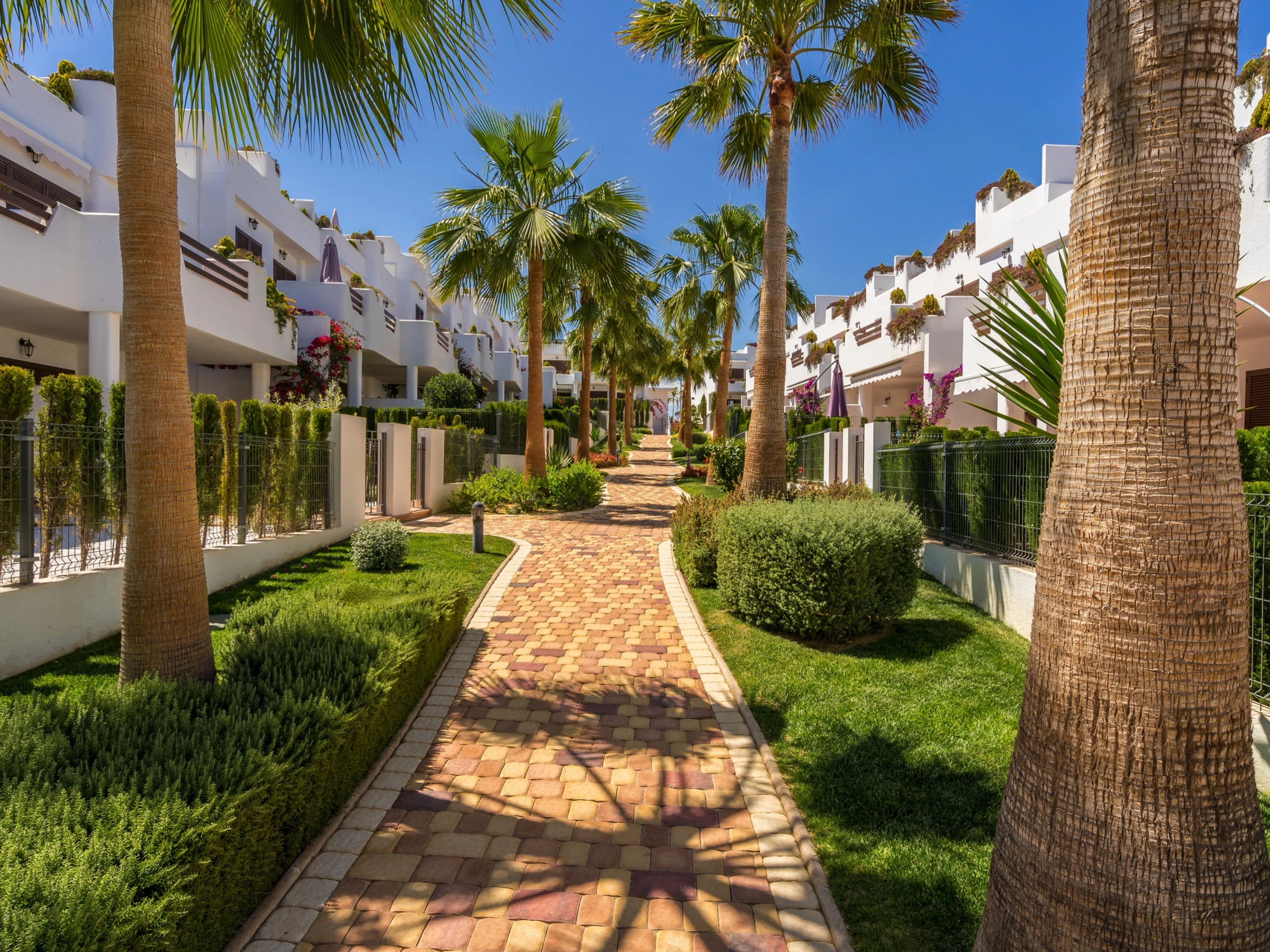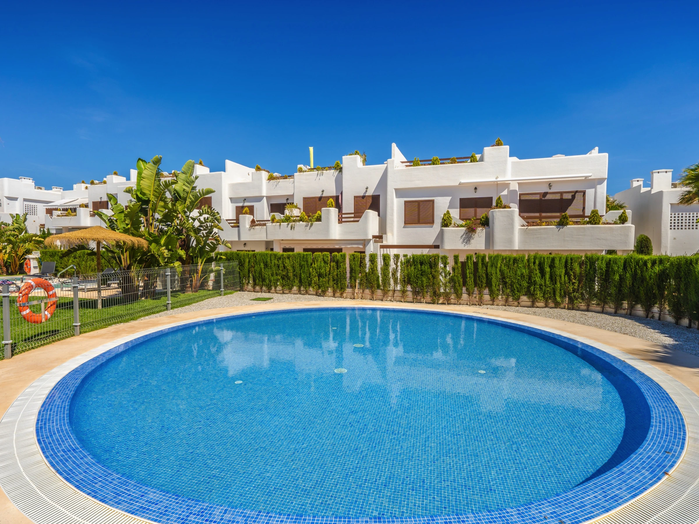M a 3 chambres à coucher et 2 salles de bain. Le logement offre de l'intimité, un beau jardin privé avec pelouse et d´arbres, un jardin communal avec pelouse et d´arbres, une vue merveilleuse sur la plage et sur mer et une belle vue sur la vallée et sur la montagne. Le comfort et le voisinage de la plage, d'endroits pour faire du shopping, d'activités sportives et d'endroits pour sortir rendent cet appartement un logement convenable pour passer les vacances en Espagne avec votre famille ou vos amis.