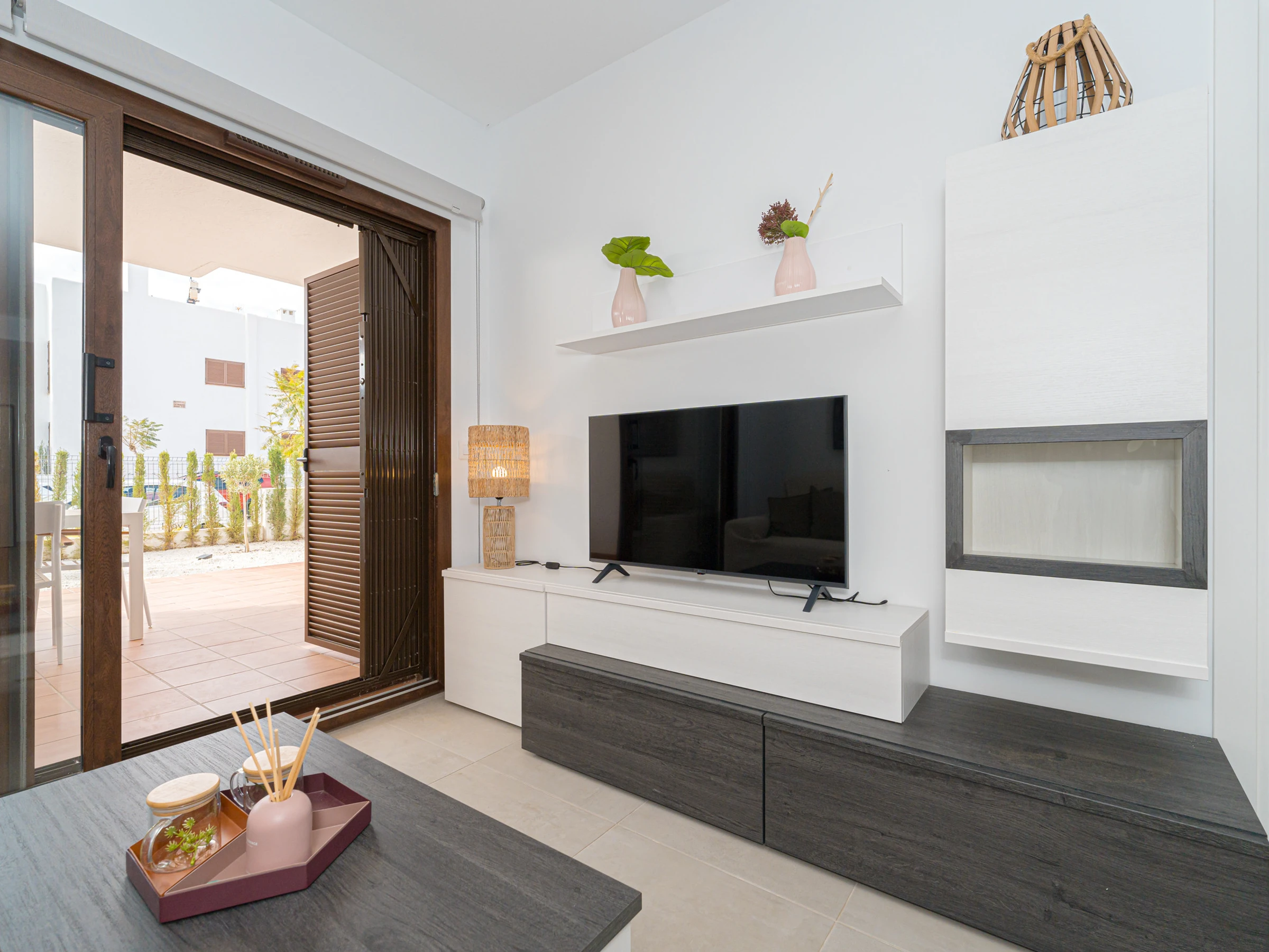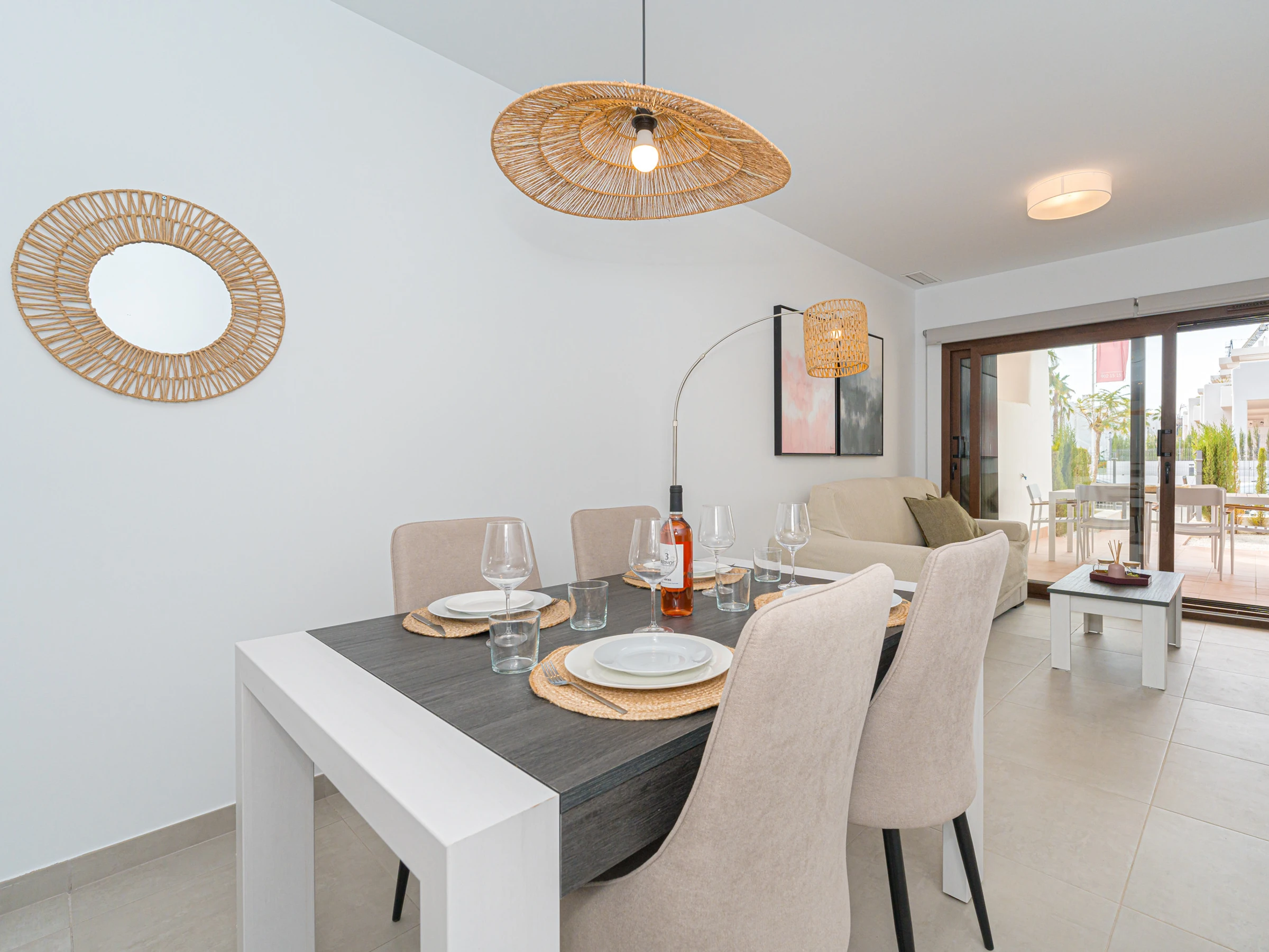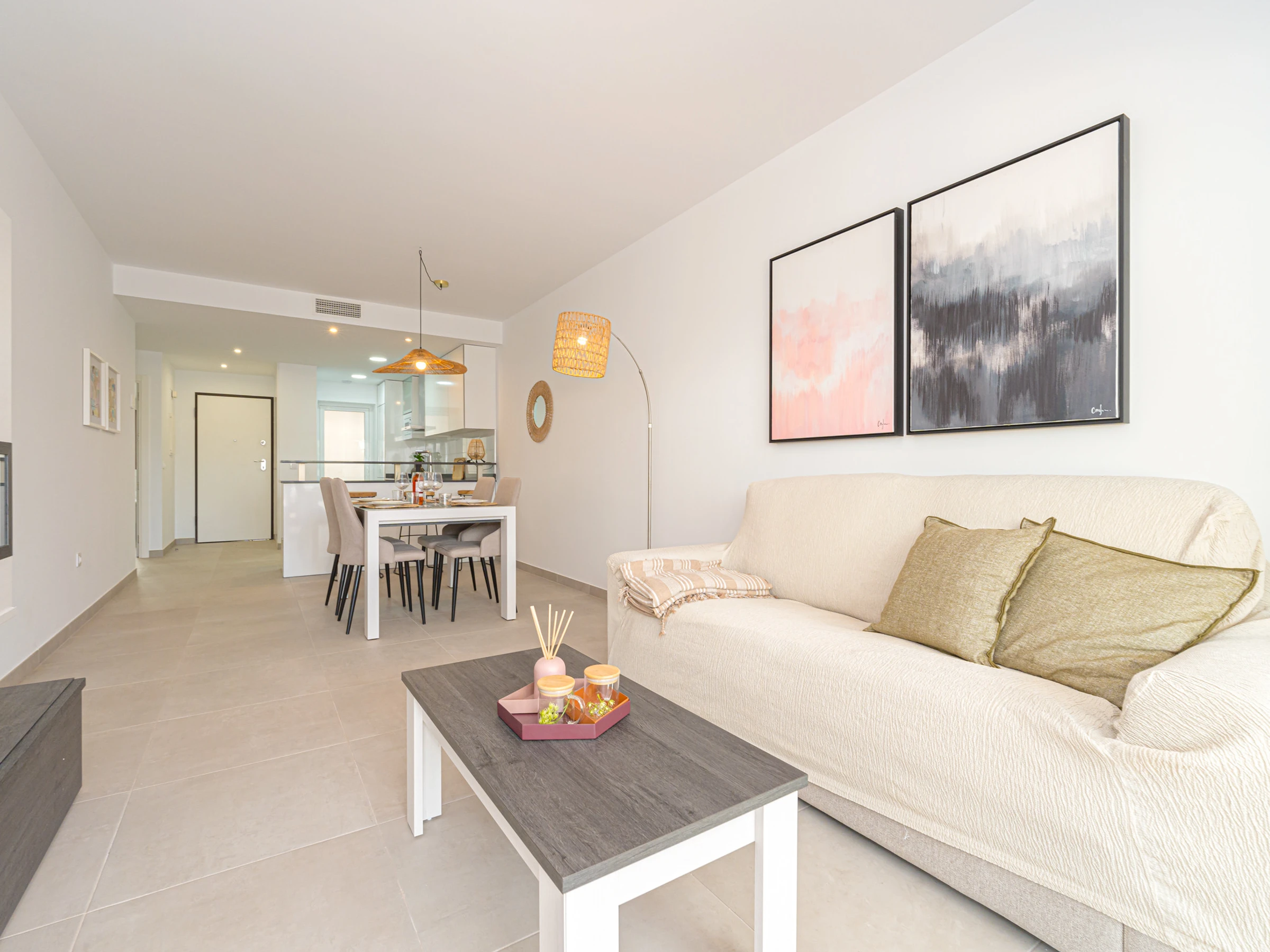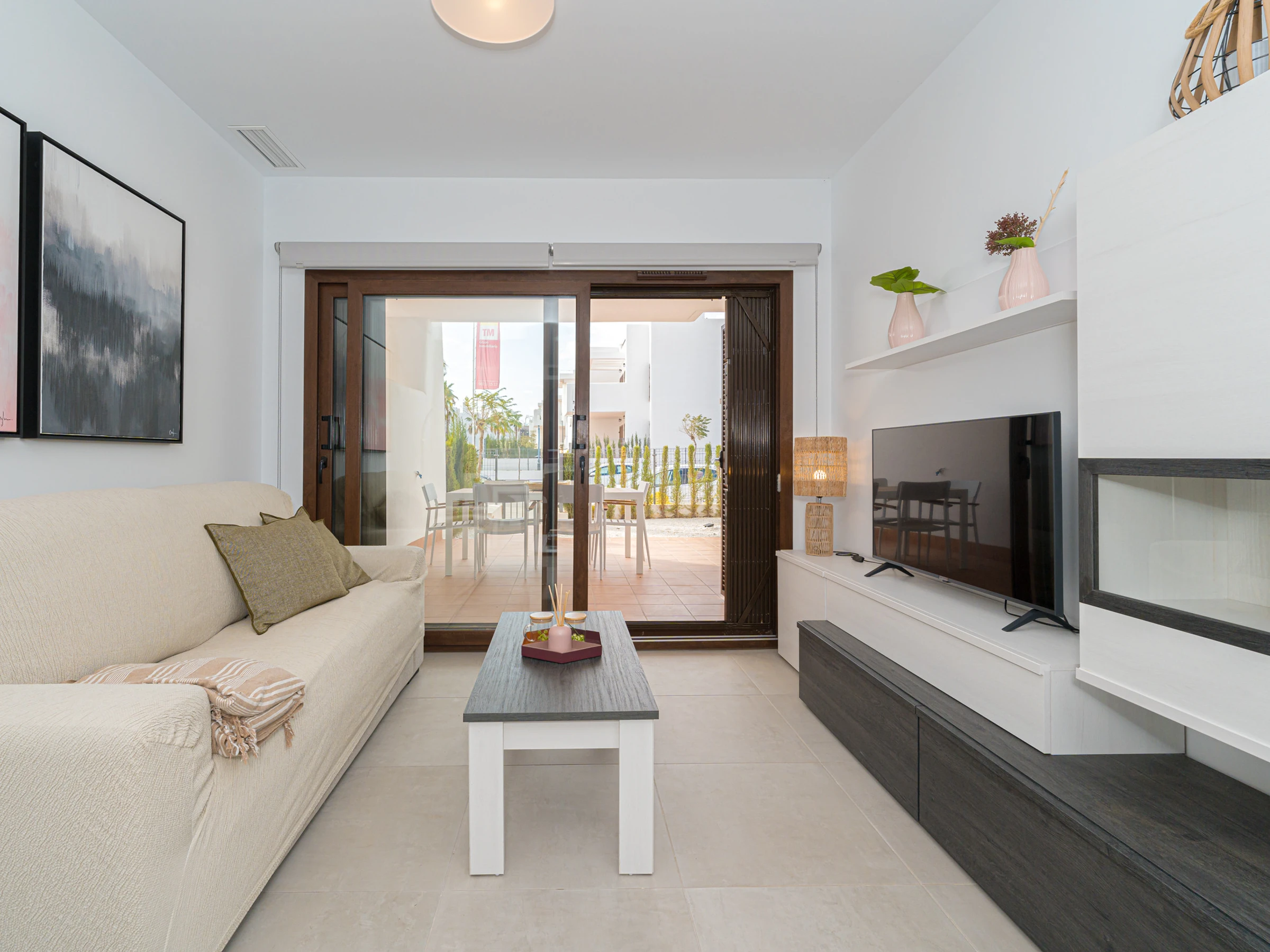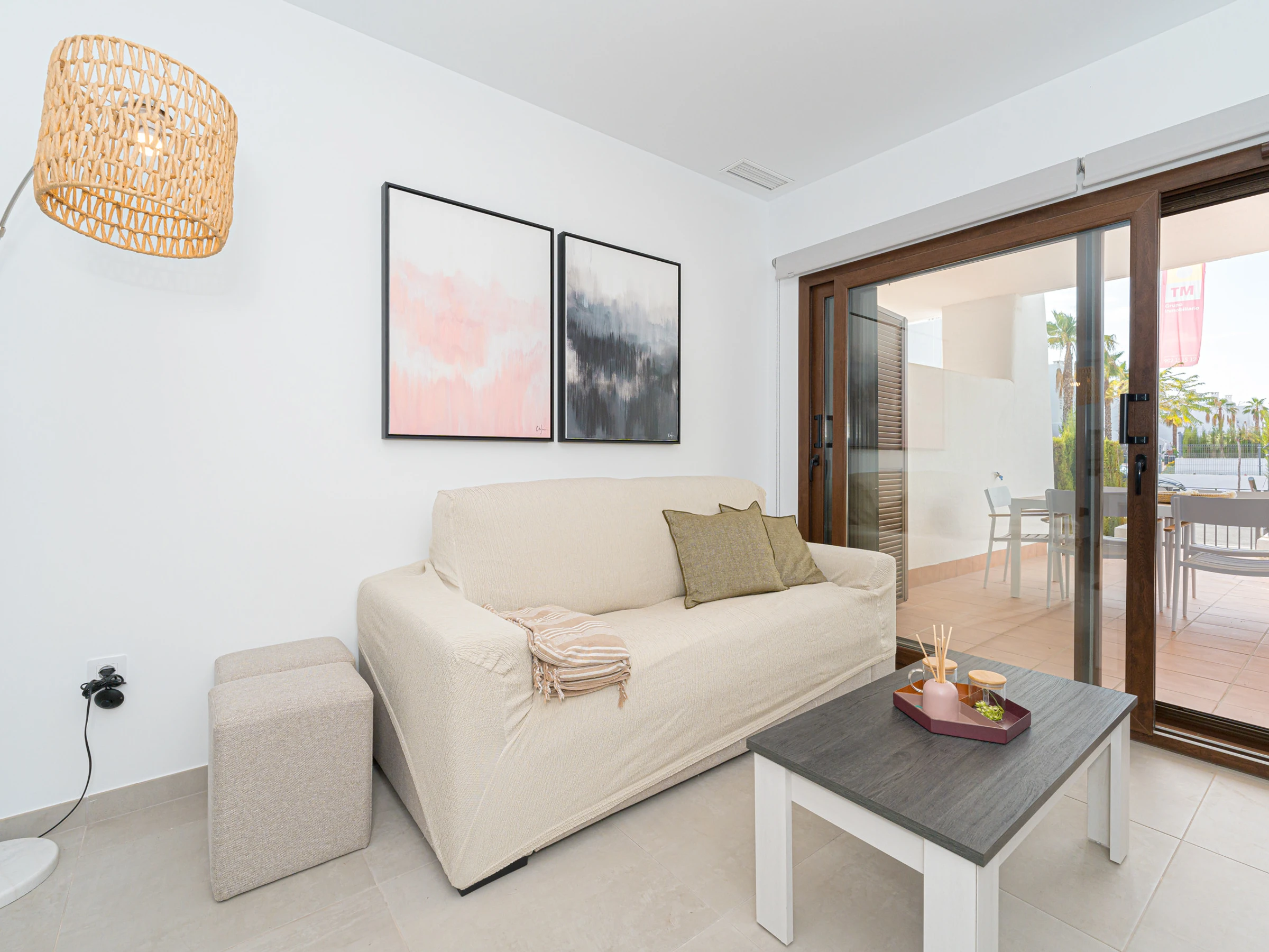 Le salon-salle à manger est lumineux et accueillant, avec une télévision avec chaînes par satellite en espagnol. Il dispose également d\'un accès à une terrasse privée de 50 m2 avec vue sur la mer, où vous pourrez profiter de repas en plein air et vous détendre.