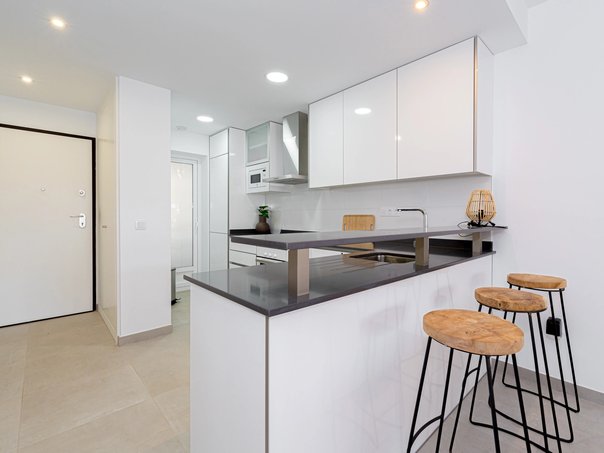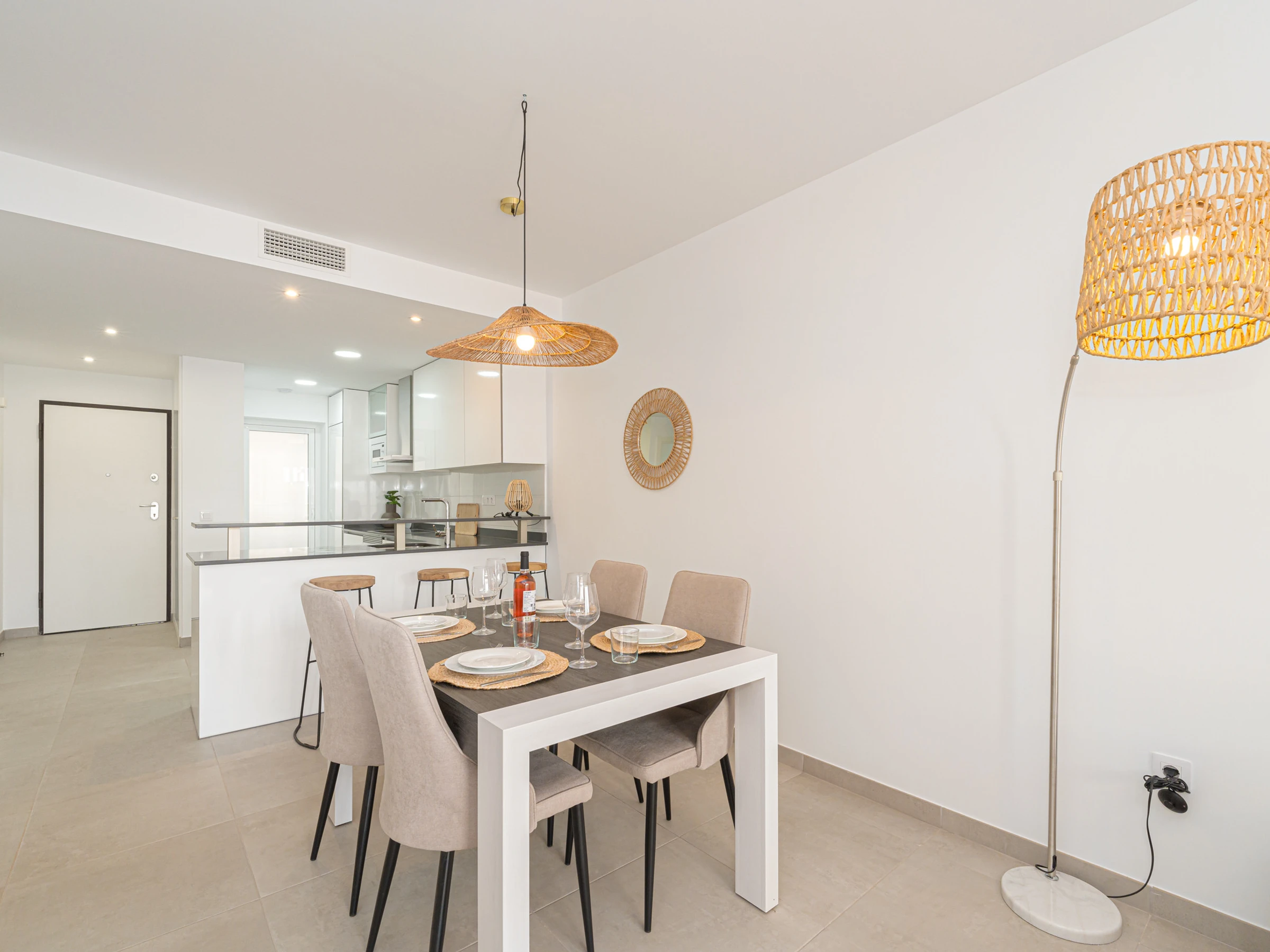 La cuisine américaine est entièrement équipée d\'appareils électroménagers de dernière génération, tels que réfrigérateur, congélateur, lave-linge, lave-vaisselle, four, micro-ondes, cafetière et grille-pain, entre autres. Vous pourrez préparer vos repas en toute tranquillité.