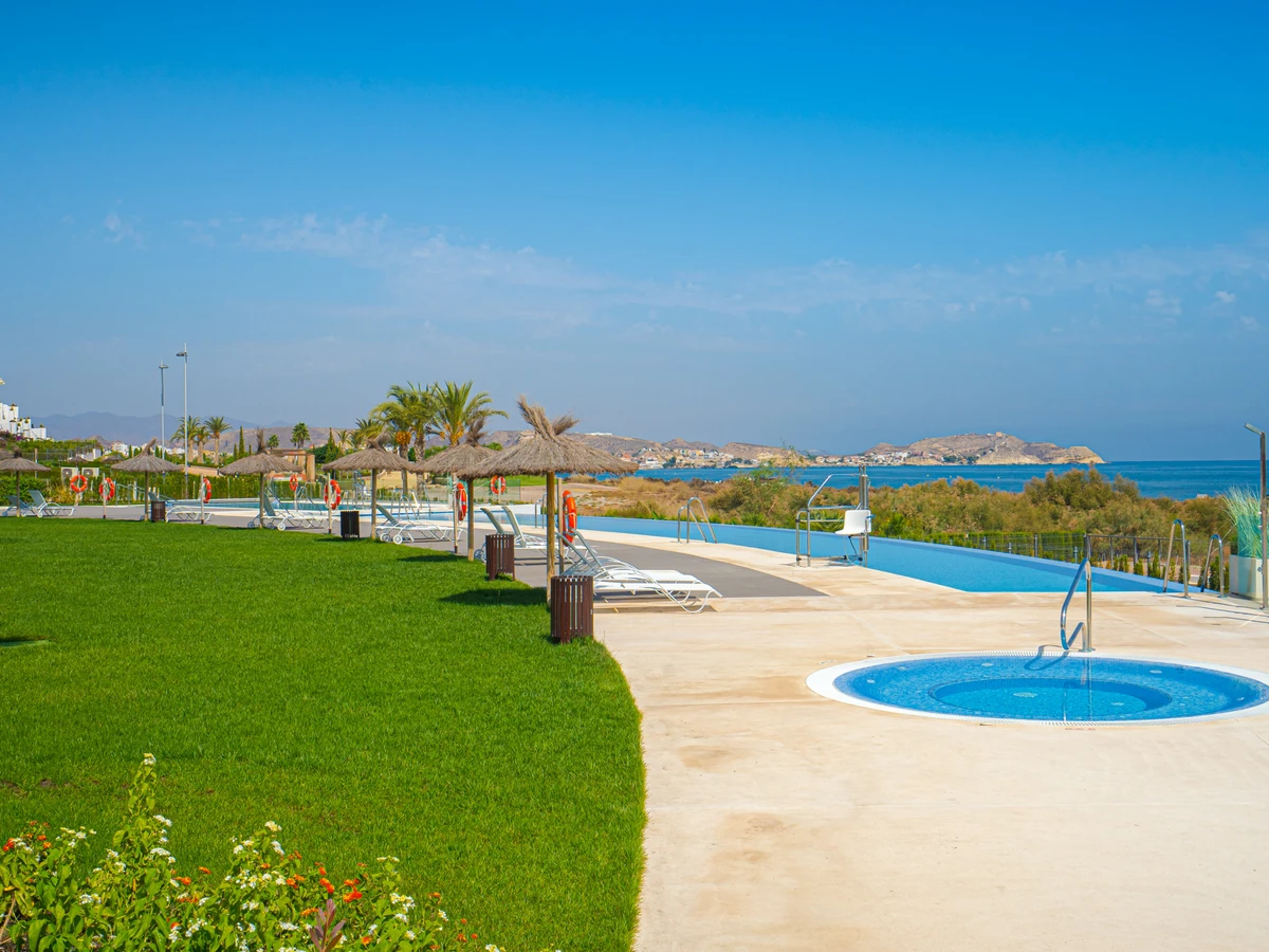 L\'emplacement est idéal, à seulement 50 mètres d\'une plage de sable et à 1 km du centre-ville de San Juan de los Terreros, où vous trouverez des restaurants, des cafés et des supermarchés. Il se trouve également à proximité du terrain de golf Aguilon Golf, à seulement 8 km.