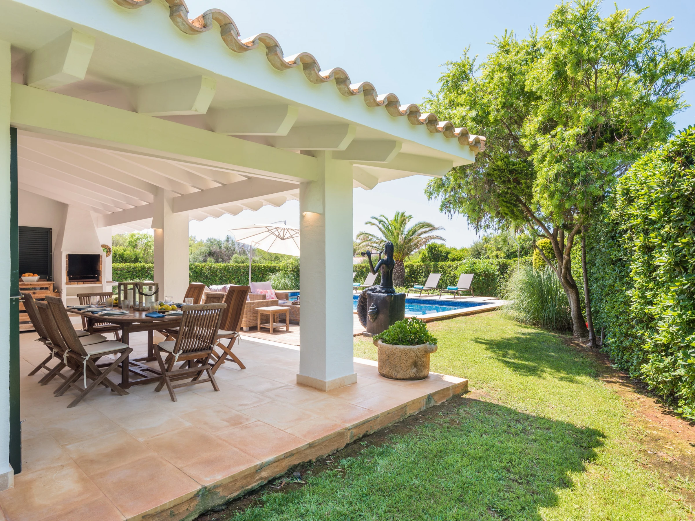 Elle dispose de jardin, mobilier de jardin, clôture, terrasse, lave-linge, barbecue, fer à repasser, accès internet (wifi), sèche-cheveux, chauffage central, climatisation dans tout le logement, piscine privée, parking extérieur même bâtiment, 1 Télévision.