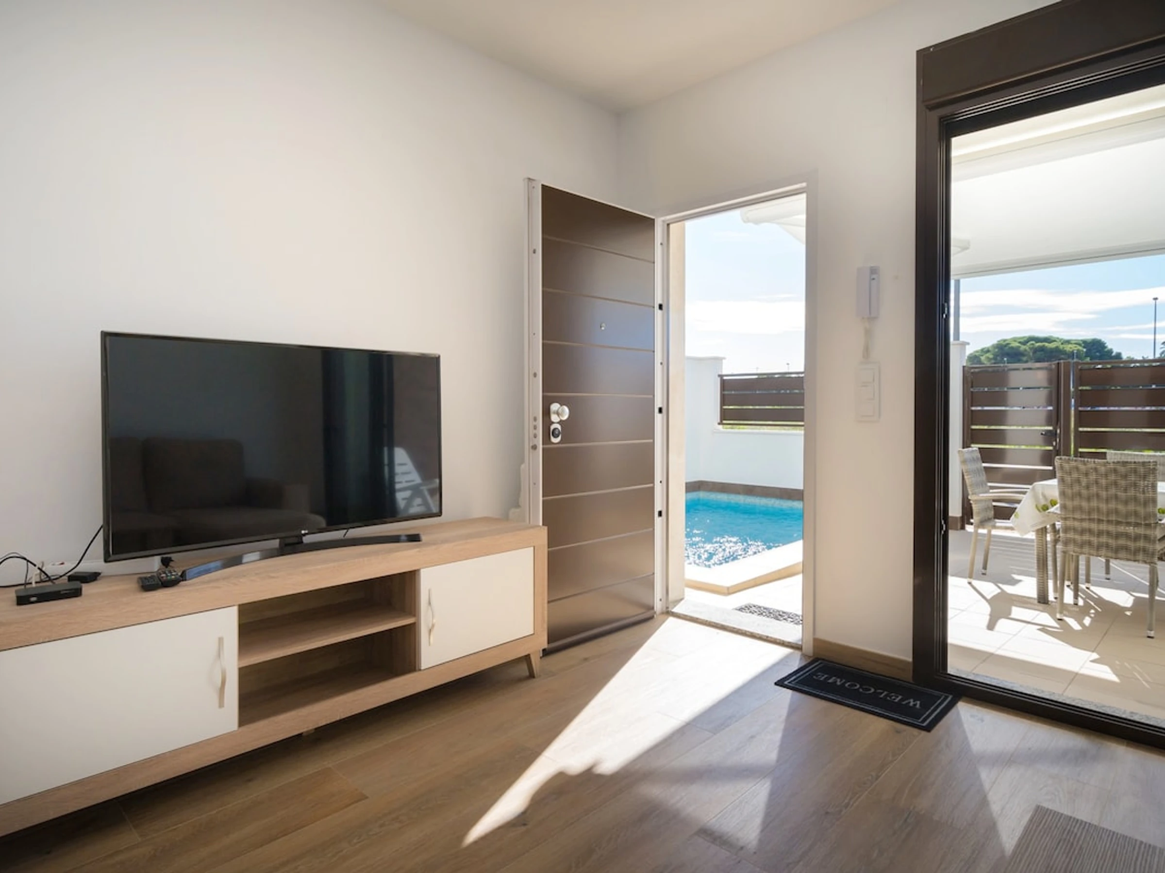 Villa mitoyenne moderne avec piscine privée à San Pedro del Pinatar (Murcie) en Espagne pour 6 personnes. La maison de vacances est située dans une région côtière à seulement 1 km de la plage.