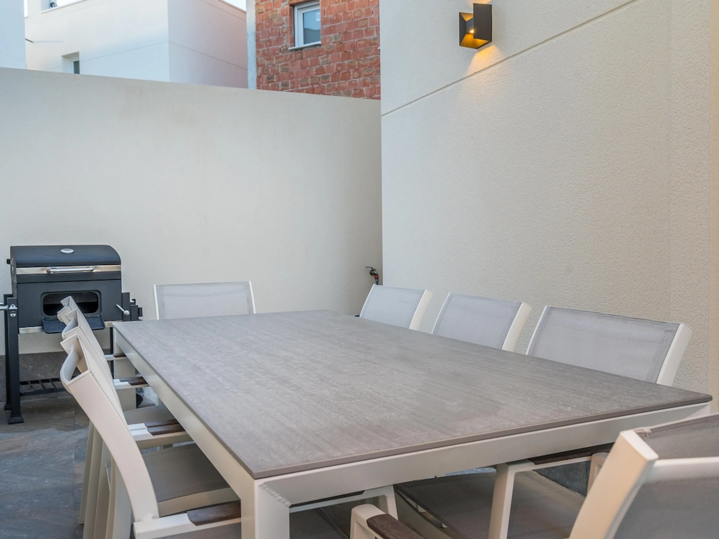 - espace extérieur comprennant table à manger et chaises longues