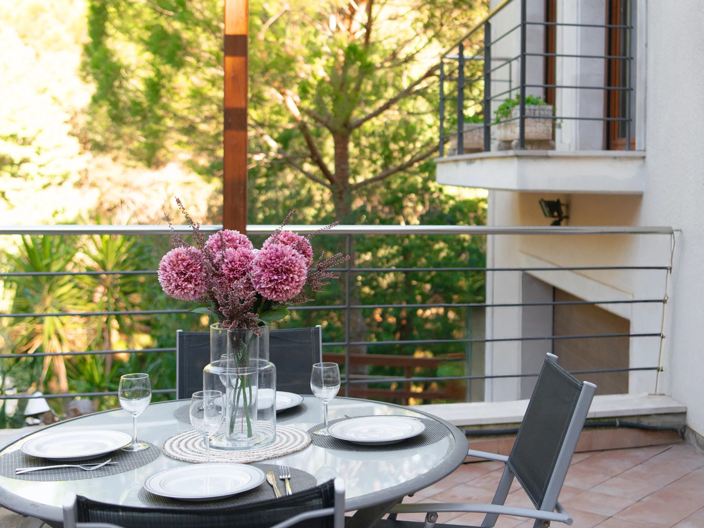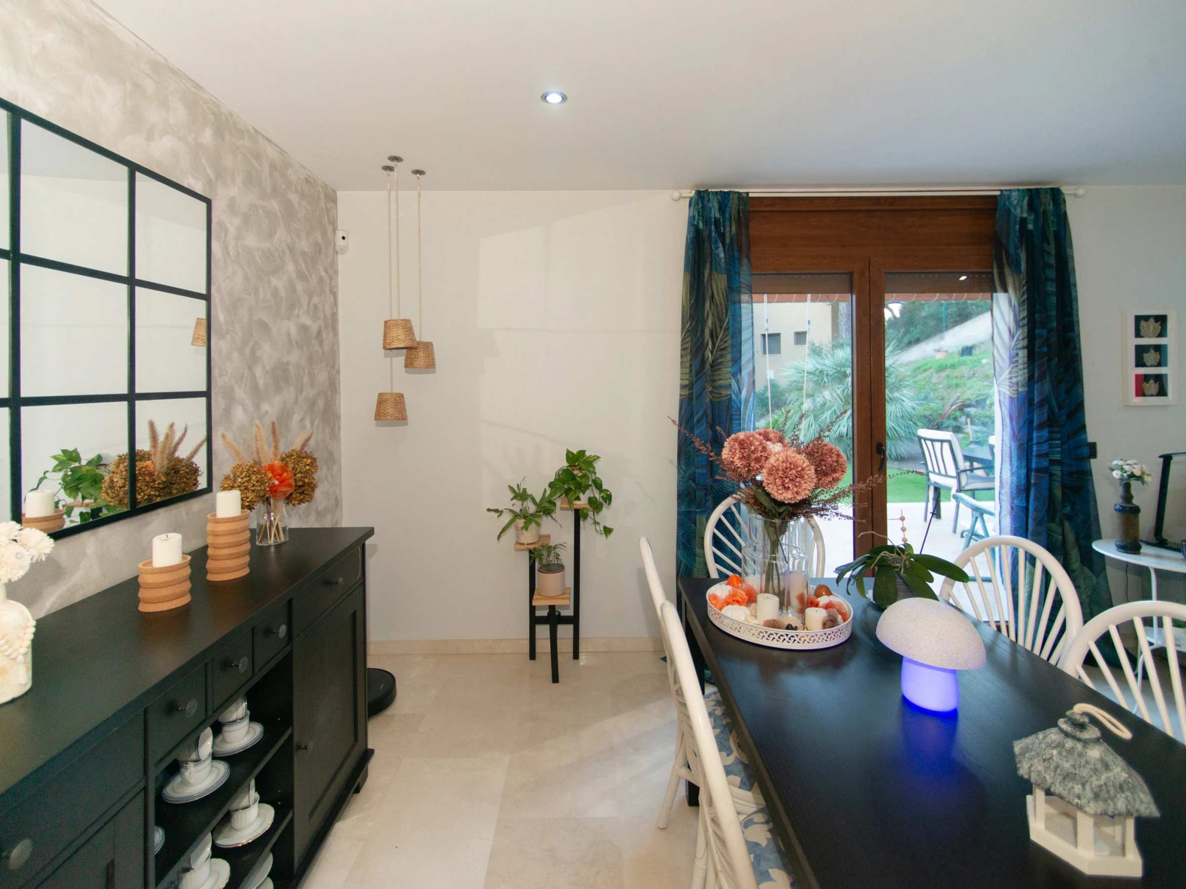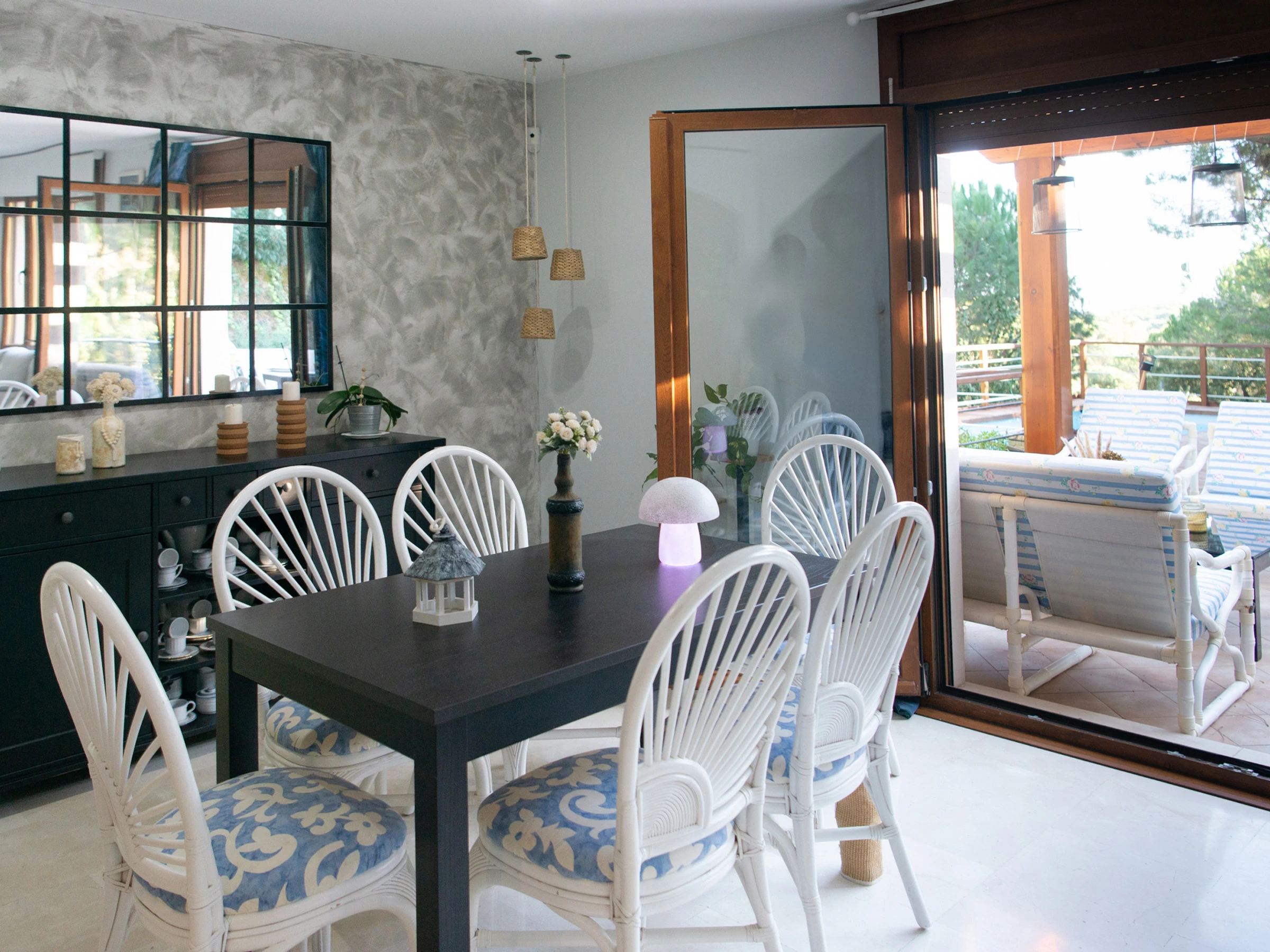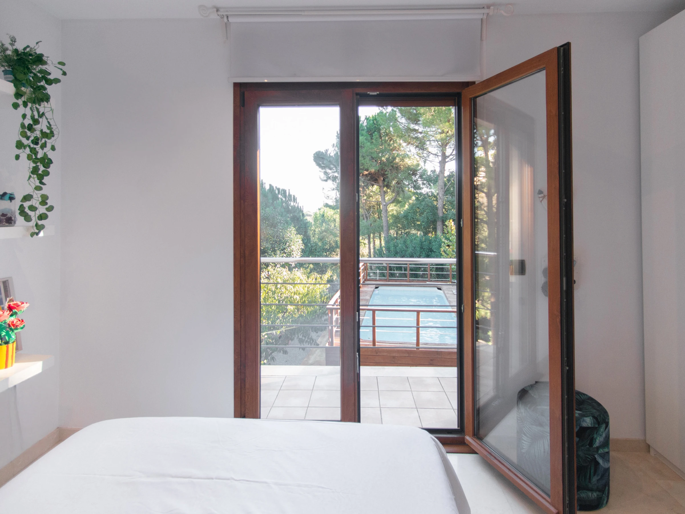 À l'extérieur, vous attend un environnement vert et relaxant. Vous pourrez profiter du jardin avec du mobilier et une large terrasse privée de 43 m² pour prendre votre petit-déjeuner en plein air, lire ou dîner dans une ambiance calme. Le grand point fort est la piscine privée, parfaite pour se rafraîchir et profiter du soleil en toute intimité.